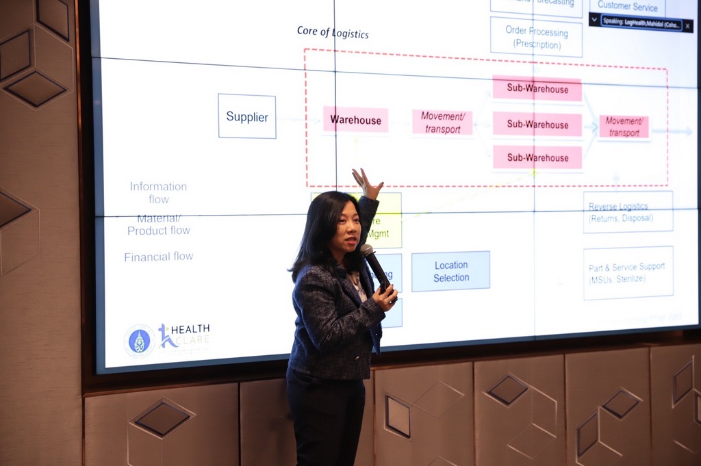 ภายในงานมีการบรรยาย 6 หัวข้อ ประกอบด้วย ช่วงเช้า 1)เรื่อง Healthcare Logistics and Supply Chain โดย รศ.ดร.ดวงพรรณ กริชชาญชัย หัวหน้าศูนย์การจัดการโลจิสติกส์และโซ่อุปทานสุขภาพ คณะวิศวกรรมศาสตร์ มหาวิทยาลัยมหิดล 2) เรื่อง การบริหารจัดการสินค้าคงคลังในโรงพยาบาล โดย อาจารย์ ดร. รวินกานต์ ศรีนนท์หัวหน้าศูนย์โลจิสติกส์และโซ่อุปทานสุขภาพนานาชาติ (Health CLARE) กลุ่มสาขาวิชาโลจิสติกส์และระบบขนส่งทางราง คณะวิศวกรรมศาสตร์ มหาวิทยาลัยมหิดล 3)เรื่อง บทบาทของ SPD ที่มีต่อโรงพยาบาล และ Show Case การนำ SPD ไปใช้ในโรงพยาบาลจริง โดย คุณพีระ อุดมกิจสกุล กรรมการผู้จัดการบริษัท ไปรษณีย์ไทยดิสทริบิวชั่น จำกัด ช่วงบ่าย 4)เรื่อง Warehouse Management โดย รศ.ดร.ธนัญญา วสุศรี ภาควิชาวิศวกรรมอุตสาหการ คณะวิศวกรรมศาสตร์ มหาวิทยาลัยมหิดล 5)เรื่อง ระบบการบริหารจัดการยาและเวชภัณฑ์สำหรับ รพ.สต. อย่างมีประสิทธิภาพโดย คุณชนะ สุพัฒสร กรรมการผู้จัดการบริษัท อินเทลลิจิสต์ จำกัด (มหาชน) 6)เรื่อง IT เพื่อการจัดการเติมเต็มสต็อกยาเวชภัณฑ์ ระหว่างโรงพยาบาลแม่ข่าย และ รพ.สต. ด้วยระบบ Primary Care on Cloud (PCoC) และสาธิตการใช้ระบบ Primary Care on Cloud (PCoC) โดย อาจารย์ฆนัท พูลสวัสดิ์ ภาควิชาวิศวกรรมคอมพิวเตอร์ คณะวิศวกรรมศาสตร์ มหาวิทยาลัยมหิดล