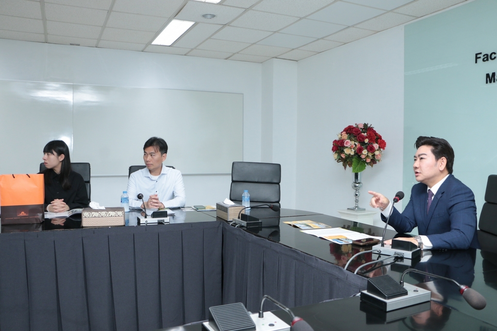 วันที่ 9 มกราคม 2567 รศ.ดร. ธนภัทร์ วานิชานนท์ คณบดีคณะวิศวกรรมศาสตร์ ให้การต้อนรับ Mr. Thomas K.F. Lei, FRSC, FinstP, Dean of the Office of International Affairs จาก Chang Gung University, Department of Biomedical Engineering ในการมาเจรจาความร่วมมือการแลกเปลี่ยนนักศึกษาและการทำหลักสูตร 3+1+1 ณ ห้องประชุม R210 อาคาร 1 คณะวิศวกรรมศาสตร์ มหาวิทยาลัยมหิดล