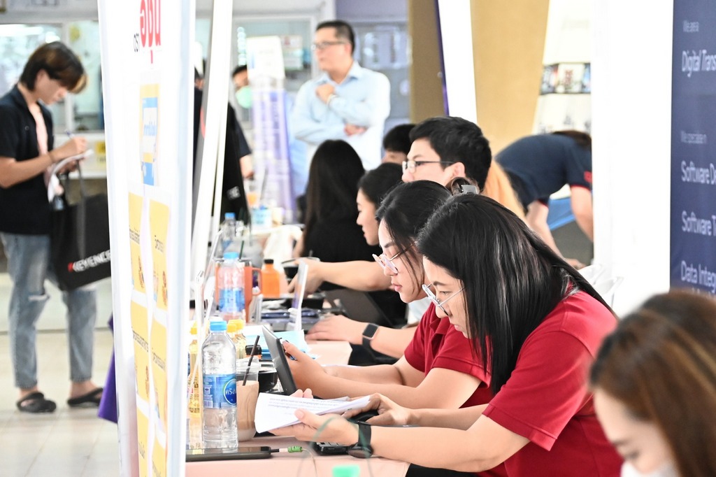 วันที่ 31 มกราคม – 1 กุมภาพันธ์ 2567 คณะวิศวกรรมศาสตร์ มหาวิทยาลัยมหิดล จัดโครงการ “Mahidol Engineering Job Fair 2024” โดยภายในงานมีบริษัทชั้นนำมากมายร่วมออกบูธ เช่น SCG, THAIOIL, ALSTOM, ISUZU, BYD, DAIKIN และ SUPALAI งานในครั้งนี้มีนักศึกษาและศิษย์เก่าให้ความสนใจเข้าร่วมงานเป็นจำนวนมาก ณ บริเวณลานเอนกประสงค์ ชั้น 1 อาคาร 1 คณะวิศวกรรมศาสตร์ มหาวิทยาลัยมหิดล