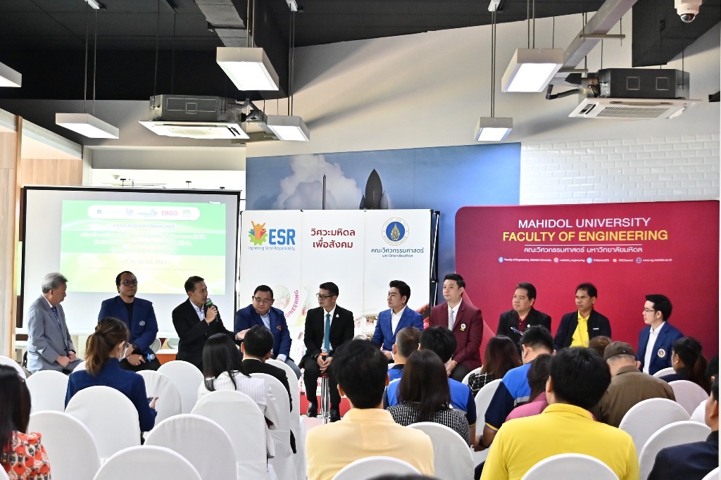 วันที่ 25 มีนาคม 2567 คณะวิศวกรรมศาสตร์ มหาวิทยาลัยมหิดล โดยหน่วยวิศวะมหิดลเพื่อสังคม (ESR) วิศวะมหิดลเพื่อสังคม ร่วมกับ กรมส่งเสริมอุตสาหกรรม บริษัท ลิงค์เทค (ประเทศไทย) จำกัด บริษัท เออร์โกประกันภัย (ประเทศไทย) จำกัด (มหาชน) บริษัท สตาร์มันนี่ จำกัด (มหาชน) และ สมาคมตัวแทนขนส่งทางอากาศไทย จัดการประชุมหารือเครือข่ายการพัฒนานวัตกรรมด้านพลังงานทดแทนสู่การวางแผนการขับเคลื่อนนโยบายชี้นำสัง คม ณ Innogineer Studio โดยมี รศ.ดร.ธนภัทร์ วานิชานนท์ คณบดีคณะวิศวกรรมศาสตร์ กล่าวเปิดการประชุม พร้อมด้วย ผศ. ดร.กฤษฎา อัศวสกุลเกียรติ รองคณบดีฝ่ายบริการวิชาการ และขับเคลื่อนนโยบายชี้นำสังคม นำเสนอการขับเคลื่อนนโยบายชี้นำสังคม และ อ.วรวิทย์ อิศรางกูร ณ อยุธยา อาจารย์ประจำภาควิชาวิศวกรรมไฟฟ้า นำเสนอผลการดำเนินงานด้านนวัตกรรมรถยนต์พลังงานไฟฟ้า (EV) ทางเลือกใหม่สำหรับคนรักษ์โลก