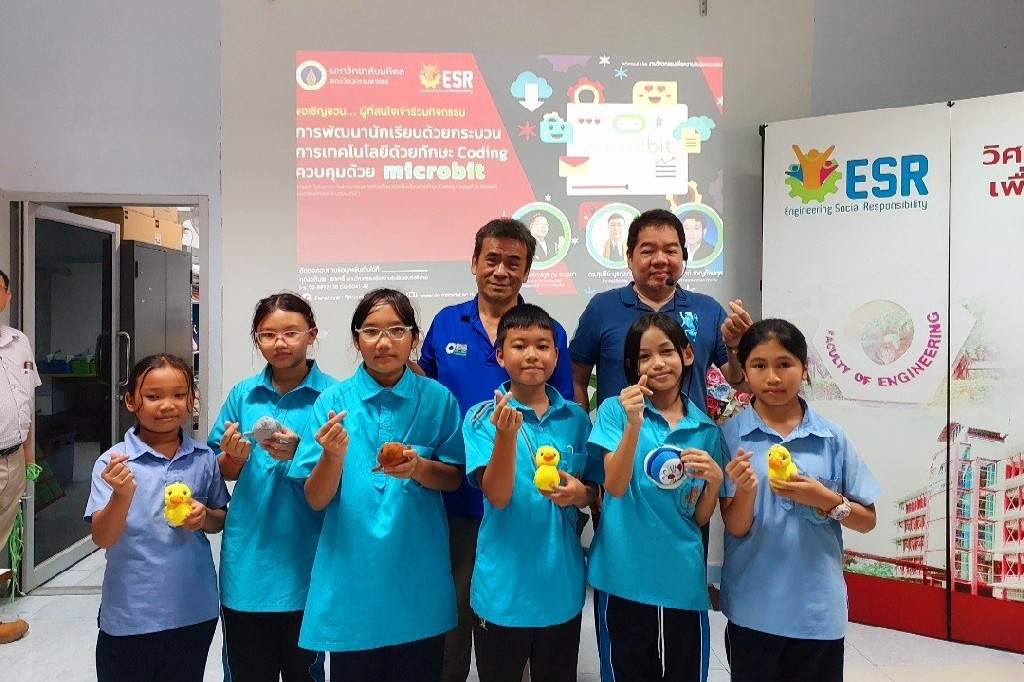 วันที่ 11-12 มิถุนายน 2567 คณะวิศวกรรมศาสตร์ มหาวิทยาลัยมหิดล โดยหน่วยวิศวกรรมเพื่อความรับผิดชอบต่อสังคม นำทีมโดย ผศ.ดร.กฤษฎา อัศวสกุลเกียรติ รองคณบดีฝ่ายบริการวิชาการ และขับเคลื่อนนโยบายชี้นำสังคม จัดกิจกรรมพัฒนาด้านกระบวนการเทคโนโลยีทักษะ coding ควบคุม microbit ให้กับโรงเรียนวัดหอมเกร็ด จังหวัดนครปฐม ภายใต้โครงการ "การพัฒนาคุณภาพการศึกษาของโรงเรียนด้านทักษะ coding ควบคุมด้วย microbit ในเขตพื้นที่ภาคกลางตอนล่าง" โดยมี อ.วรวิทย์ อิศรางกูร ณ อยุธยา ภาควิชาวิศวกรรมไฟฟ้า อ.ดร.สุปรีย์ บูรณะกนิษฐ ผู้เชี่ยวชาญด้านเทคโนโลยีการศึกษา และ อ.ชัยชนัตถ์ ชาญศิลปกุล จุฬาลงกรณ์มหาวิทยาลัย เป็นวิทยากร และทีมผู้เชี่ยวชาญจากภาควิชาวิศวกรรมไฟฟ้า ภาควิชาวิศวกรรมชีวการแพทย์ ภาควิชาวิศวกรรมเครื่องกล งานกายภาพและสิ่งแวดล้อม งานบ่มเพาะฯ และงานสื่อสารองค์กรฯ เป็นผู้ช่วยวิทยากร เพื่อการพัฒนานักเรียนให้มีความรู้ ความสามารถ และทักษะในการพัฒนาผู้เรียนให้มีศักยภาพด้านวิชาการ ทักษะวิชาชีพ ทักษะชีวิต