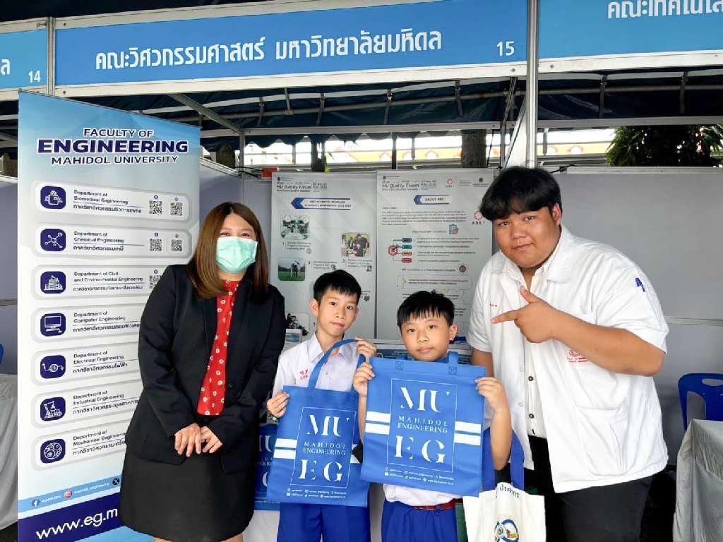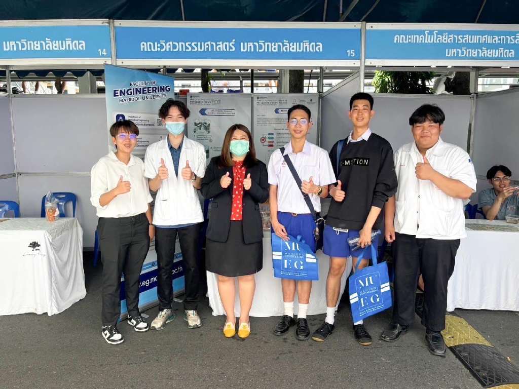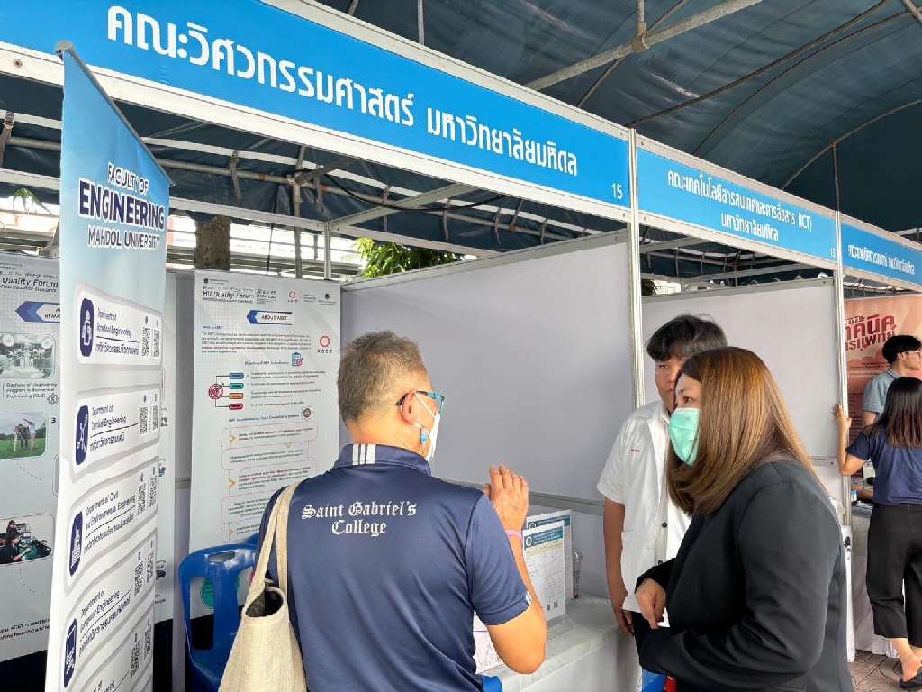 วันที่ 22 สิงหาคม 2567 คณะวิศวกรรมศาสตร์ ม.มหิดล นำโดย ผศ.ดร.พรทิพย์ แก่งอินทร์ รองคณบดีฝ่ายพัฒนาเครือข่ายและองค์กรสัมพันธ์ รวมทั้งนักศึกษาคณะวิศวกรรมศาสตร์ ร่วมออกบูธในงาน "SG Expo 2024 : Shining & Sharing" ณ โรงเรียนเซนต์คาเบรียล เพื่อประชาสัมพันธ์หลักสูตรและภาควิชาต่างๆ ของคณะวิศวกรรมศาสตร์ แก่นักเรียนระดับชั้นประถมศึกษาและมัธยมศึกษา คุณครู และผู้ปกครองภายในงาน เพื่อเตรียมความพร้อมสำหรับ TCAS 68 นอกจากนั้นยังมีผศ.ดร.กฤษฎา อัศวสกุลเกียรติ รองคณบดีฝ่ายบริการวิชาการและขับเคลื่อนนโยบายชี้นำสังคม ร่วมเยี่ยมเยียนบูธ