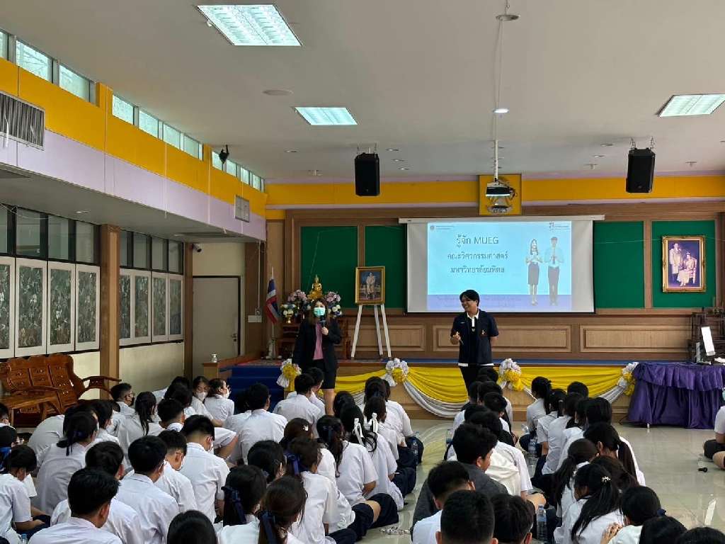 วันที่ 17 กันยายน 2567 คณะวิศวกรรมศาสตร์ ม.มหิดล นำโดย ผศ.ดร.พรทิพย์ แก่งอินทร์ รองคณบดีฝ่ายพัฒนาเครือข่ายและองค์กรสัมพันธ์ และนักศึกษาศิษย์เก่าโรงเรียนสุคนธีรวิทย์ นายธนภัทร เนียมนะรา นักศึกษาชั้นปีที่ 4 สาขาวิชาวิศวกรรมเครื่องกล ร่วมแนะแนวการศึกษาต่อ และประชาสัมพันธ์แนวทางการรับสมัครนักศึกษา TCAS 68 คณะวิศวกรรมศาสตร์ ม.มหิดล ให้กับนักเรียนระดับชั้นมัธยมศึกษาปีที่ 6 ณ โรงเรียนสุคนธีรวิทย์