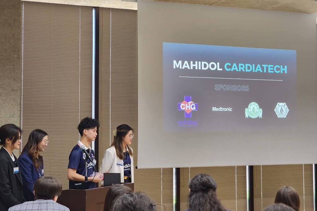 นักศึกษาจากภาควิชาวิศวกรรมชีวการแพทย์ คณะวิศวกรรมศาสตร์ มหาวิทยาลัยมหิดล ในชื่อทีม Mahidol CardiaTech เข้าร่วมการแข่งขันรอบ Final ในงาน Heart Hackathon 2024 : งานออกแบบหัวใจเทียม Total Artificial Heart (TAH) สำหรับผู้ป่วยโรคหัวใจระยะสุดท้าย ณ เมือง Utsunomiya ประเทศญี่ปุ่น ในวันที่ 12 พฤศจิกายน 2567 ที่ผ่านมา โดยมีทีมผ่านเข้ารอบจำนวน 9 ทีม จาก 8 ประเทศทั่วโลก และในครั้งนี้ถือว่าเป็นครั้งแรกที่ทีมจากประเทศไทยได้เข้าร่วมการแข่งขันในงาน Heart Hackathon 2024
