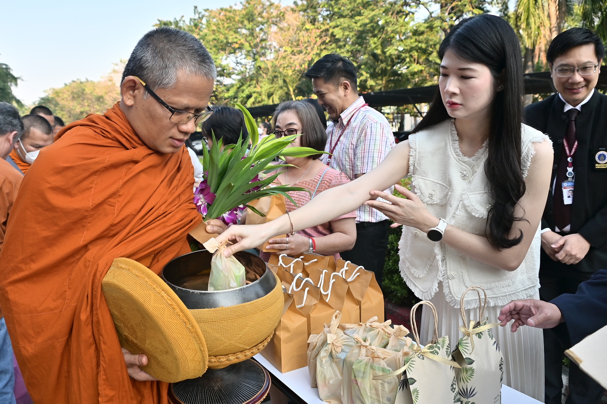 วันที่ 9 มกราคม 2568 เวลา 08.00 น. คณะวิศวกรรมศาสตร์ จัดพิธีทำบุญตักบาตรเนื่องในวันขึ้นปีใหม่ ประจำปีพุทธศักราช 2568 นำโดย รองศาสตราจารย์ ดร.ธนภัทร์ วานิชานนท์ คณบดีคณะวิศวกรรมศาสตร์ พร้อมด้วยทีมบริหาร หัวหน้าภาควิชา คณาจารย์ และบุคลากร เข้าร่วมในพิธี มีการตักบาตรอาหารแห้ง พระสงฆ์ จำนวน 9 รูป เพื่อเป็นการดำรงไว้ซึ่งวัฒนธรรมประเพณีอันดีงามของไทย และเพื่อความเป็นสิริมงคล ณ บริเวณหน้าอาคาร 1 คณะวิศวกรรมศาสตร์ มหาวิทยาลัยมหิดล
