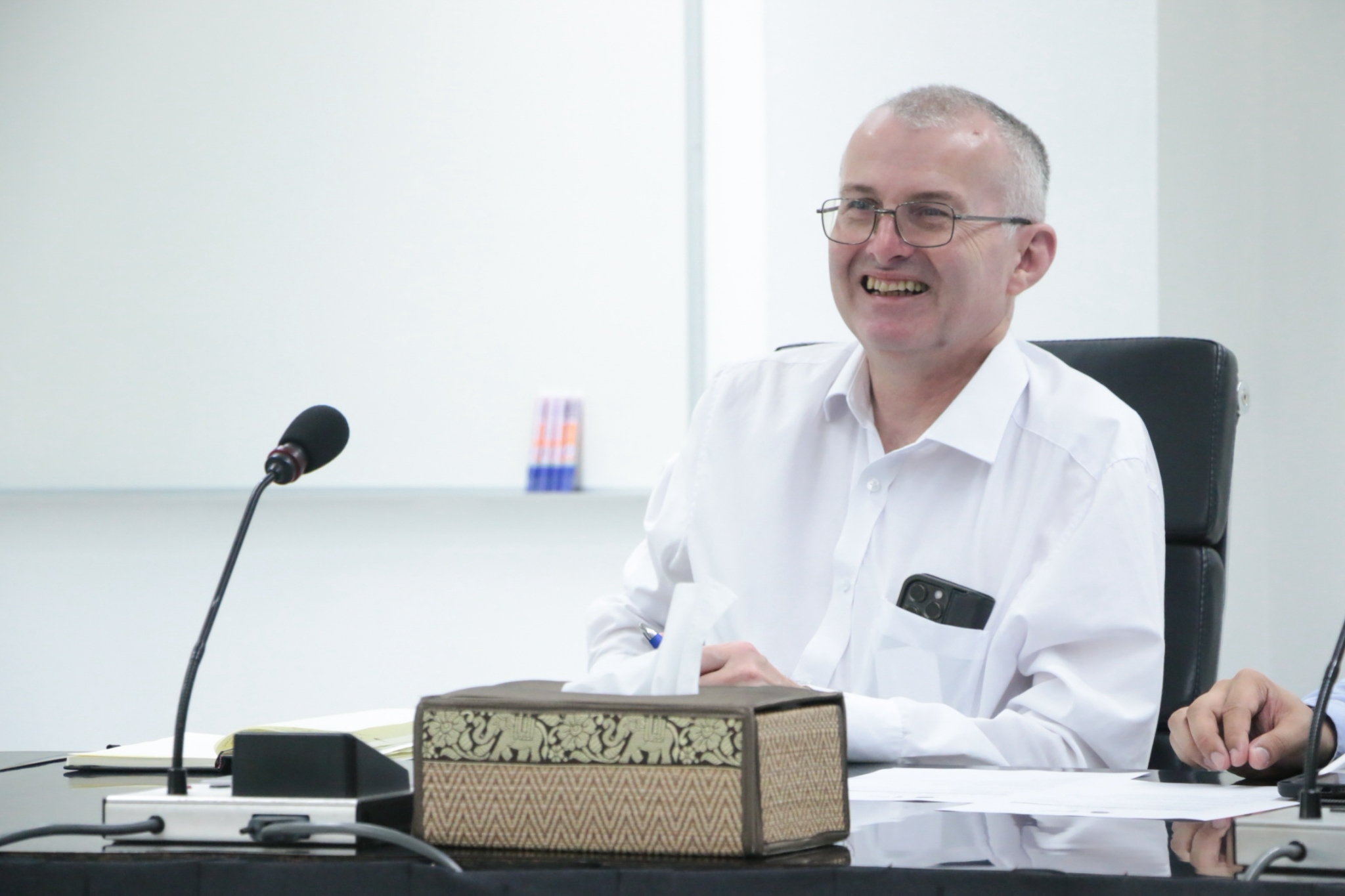 โดยมี Professor Gareth Howells ผู้เชี่ยวชาญด้าน Cyber Security จาก University of Essex พร้อมด้วย คุณ Amorndech Cholpilaiponk, Recruitment and Development Manager จาก SEA Regional Officeนำเสนอภาพรวมของมหาวิทยาลัยและโอกาสทางการศึกษา ก่อนเข้าสู่การหารือเกี่ยวกับความร่วมมือทางวิชาการ ซึ่งครอบคลุมหลักสูตร 3+1 สำหรับบัณฑิตศึกษา การแลกเปลี่ยนนักศึกษาและคณาจารย์ ตลอดจนโอกาสในการทำวิจัยร่วมกัน เพื่อส่งเสริมประสบการณ์ทางวิชาการระดับนานาชาติให้แก่นักศึกษาและบุคลากร