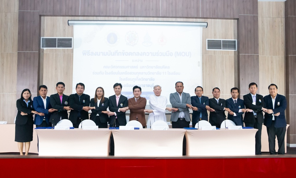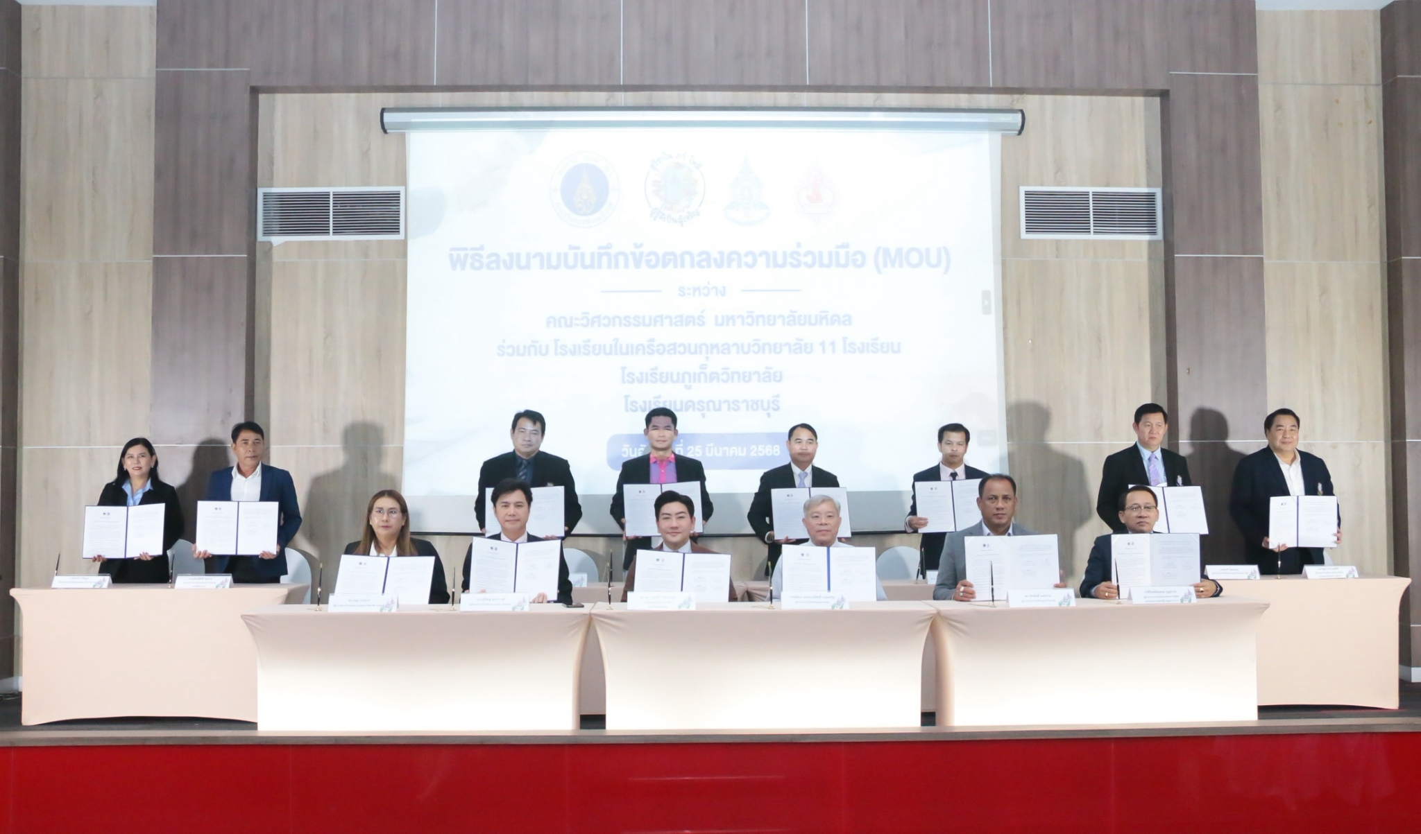 คณะวิศวกรรมศาสตร์ มหาวิทยาลัยมหิดล นำโดย รศ.ดร.ธนภัทร์ วานิชานนท์ คณบดี เป็นประธานเปิดงาน และร่วมลงนามบันทึกข้อตกลงความร่วมมือทางวิชาการ (MoU) ระหว่าง คณะวิศวกรรมศาสตร์ มหาวิทยาลัยมหิดล กับ โรงเรียนในเครือสวนกุหลาบวิทยาลัย 11 แห่ง นำโดย ดร.ภูมิสิษฐ์ สุคนธวงศ์ ผู้อำนวยการโรงเรียน พร้อมด้วยบาทหลวงเสนอ ดำเนินสดวก อธิการโรงเรียนดรุณาราชบุรี และ ดร.วัชรศักดิ์ สงค์ปาน ผู้อำนวยการโรงเรียนภูเก็ตวิทยาลัย เป็นผู้ร่วมลงนาม นับเป็นความร่วมมือของ 14 หน่วยงานการศึกษาชั้นนำของประเทศ ทั้งทางด้านวิชาการและการวิจัยพัฒนา โดยมี ดร.ญาสุมินทร์ ไทยสมบูรณ์ ผู้อำนวยการศูนย์วิทยาศาสตร์และวัฒนธรรมไทย-จีนแห่งมหาวิทยาลัยวิศวกรรมศาสตร์ฮาร์บิน สาธารณรัฐประชาชนจีน และ ผศ.ดร.ภัทรพร โปสกนิษฐกุล รองคณบดีฝ่ายวิเทศสัมพันธ์และกิจการพิเศษ คณะวิศวกรรมศาสตร์ มหาวิทยาลัยมหิดล เป็นผู้ประสานเชื่อมความร่วมมือ และร่วมเป็นสักขีพยานในการลงนามบันทึกข้อตกลงความร่วมมือ ซึ่งจะช่วยปูทางส่งเสริมศักยภาพของเยาวชนตั้งแต่ระดับมัธยมศึกษา ไปสู่ระดับอุดมศึกษาได้อย่างต่อเนื่อง และยกระดับการศึกษาไทยสู่ระดับสากล