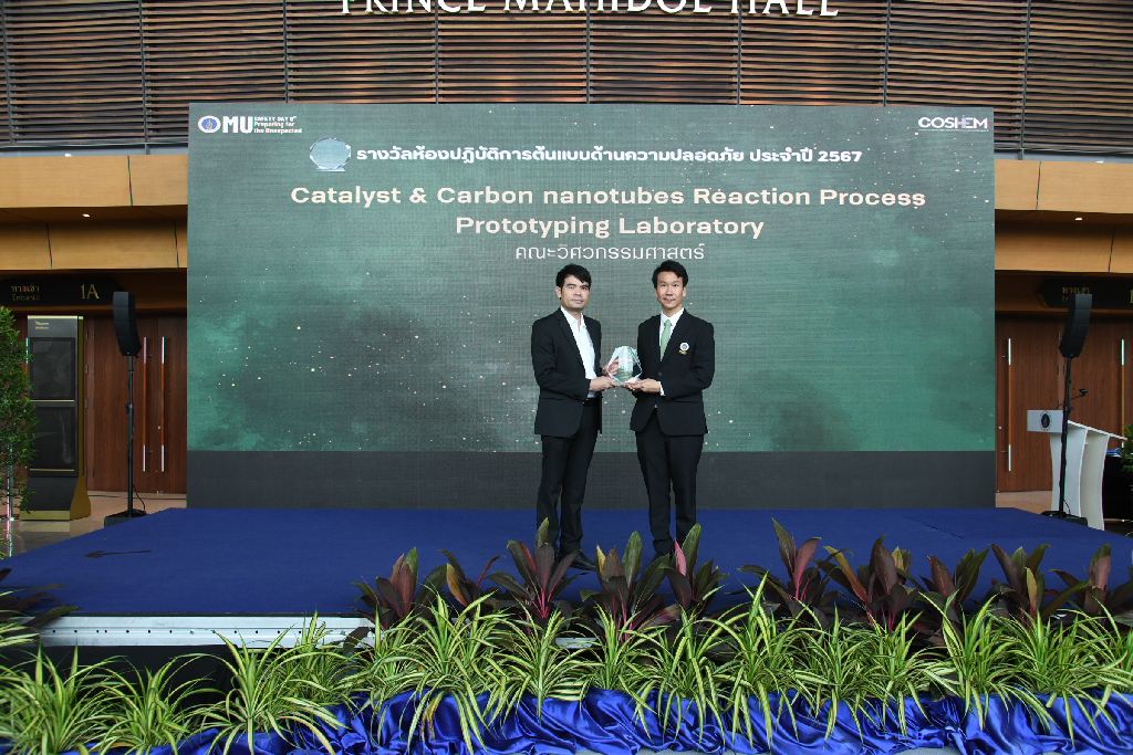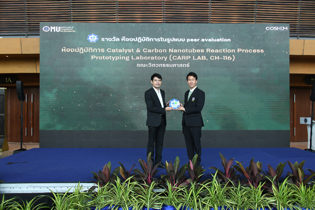 2. ห้องปฏิบัติการ CARPLAB_CH116 - Catalyst and Carbon Nanotubes Reaction Process Prototyping Laboratory ภายใต้การดูแลของ ผู้ช่วยศาสตราจารย์ ดร.สาคร ราชหาด อาจาย์จากภาควิชาวิศวกรรมเคมีเป็นผู้แทนขึ้นรับรางวัล