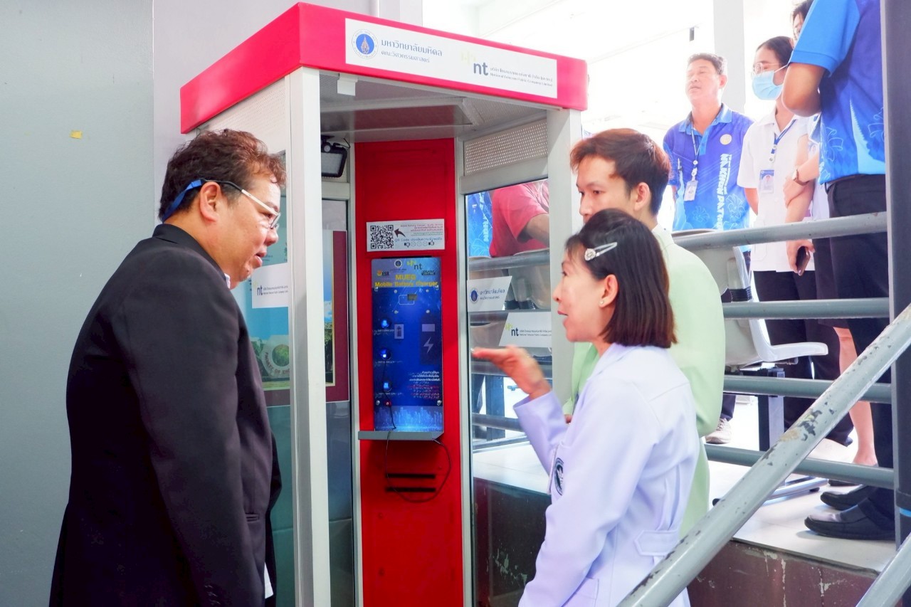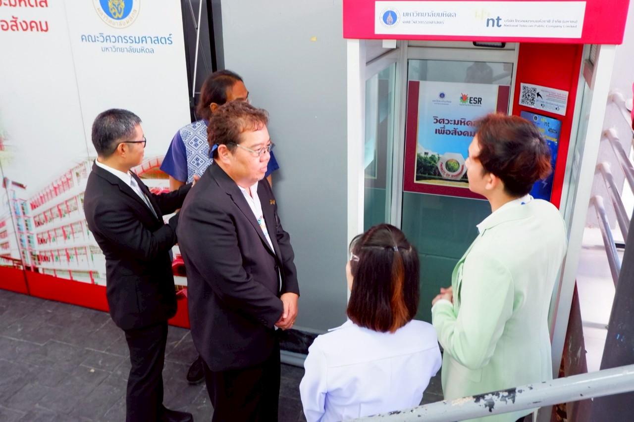 วันที่ 13 พฤษภาคม 2568 คณะวิศวกรรมศาสตร์ มหาวิทยาลัยมหิดล โดยหน่วยวิศวกรรมเพื่อความรับผิดชอบต่อสังคม จัดพิธีส่งมอบ "นวัตกรรม Mobile Battery Charger รุ่นอักษรเบรลล์" ให้แก่โรงพยาบาลหลวงพ่อเปิ่น จังหวัดนครปฐม ภายใต้โครงการ “MUEG Mobile Battery Charger 2024” โดยมีเป้าหมายเพื่อส่งเสริมการเข้าถึงเทคโนโลยีสำหรับผู้พิการทางสายตาและเพิ่มประสิทธิภาพการให้บริการด้านสาธารณสุขในระดับชุมชน
