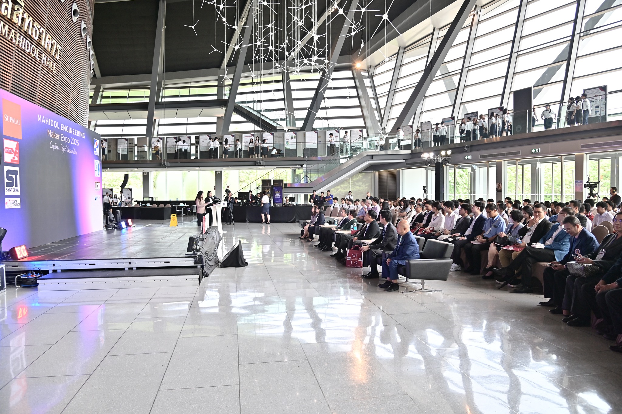 ปัจจุบันมนุษย์กำลังเผชิญกับกระแสความเปลี่ยนแปลงของโลก ประเทศไทยสามารถก้าวผ่านสู่อนาคตด้วยไอเดียสร้างสรรค์ของพลังคนรุ่นใหม่ คณะวิศวกรรมศาสตร์ มหาวิทยาลัยมหิดล จัดงาน Mahidol Engineering Maker Expo 2025, Capstone Project Presentation เปิดเวทีแสดงพลังสุดยอดผลงานนวัตกรรมด้านวิศวกรรมและเทคโนโลยีจากบรรดาเมคเกอร์นักศึกษาว่าที่วิศวกรในอนาคต เผยแพร่องค์ความรู้และผลงานวิจัยตอบโจทย์สังคม เศรษฐกิจ และสิ่งแวดล้อมโลก พร้อมเปิดเวทีพบปะผู้ประกอบการ สร้างความร่วมมือต่อยอดงานวิจัยสู่การใช้ประโยชน์เชิงพาณิชย์ ตลอดจนเตรียมความพร้อมนักศึกษาสู่โลกใหม่วัยทำงาน เสริมพลังความคิดการใช้ชีวิตโดย คุณโอม ค็อกเทล ศิลปินผู้สร้างแรงบันดาลใจ ณ หอประชุมมหิดลสิทธาคาร มหาวิทยาลัยมหิดล ศาลายา