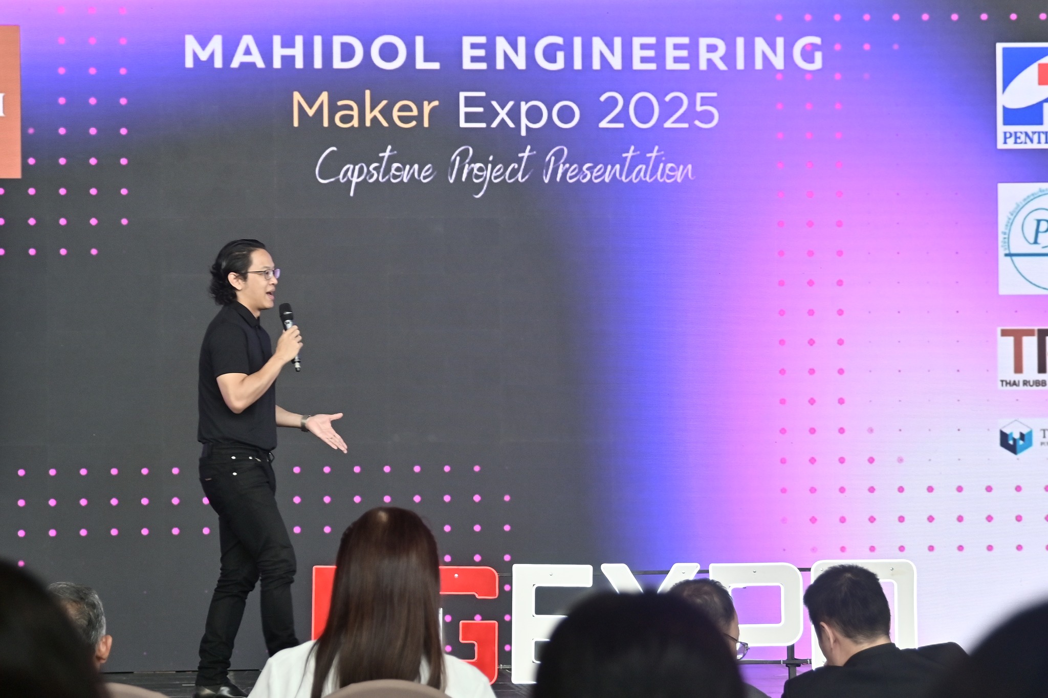 รองศาสตราจารย์ ดร.ธนภัทร์ วานิชานนท์ คณบดีคณะวิศวกรรมศาสตร์ มหาวิทยาลัยมหิดล ซึ่งเป็นผู้นำวิศวกรรมศาสตร์ในประเทศไทยที่ได้การรับรองมาตรฐานระดับโลกจาก ABET สหรัฐอเมริกา กล่าวว่า งาน Mahidol Engineering Maker Expo 2025 จัดขึ้นทุกปีอย่างต่อเนื่อง เข้าสู่ปีที่ 5 โดยหลักสูตรวิศวกรรมศาสตรบัณฑิตทุกสาขาวิชาของคณะวิศวกรรมศาสตร์ มหาวิทยาลัยมหิดล ได้กำหนดให้นักศึกษาชั้นปีที่ 4 จัดทำโครงงานวิศวกรรม (Capstone Project) เพื่อเป็นส่วนหนึ่งของการสำเร็จการศึกษา การนำเสนอโครงงานดังกล่าวจึงเป็นกระบวนการสำคัญที่ช่วยพัฒนาทักษะด้านการสื่อสาร การทำงานเป็นทีม รวมถึงทักษะด้านอื่น ๆ ที่เรียกว่า Soft Skills อันจำเป็นต่อการประกอบวิชาชีพวิศวกรรมในอนาคต การนำเสนอผลงานยังเป็นการเผยแพร่ผลงานของนักศึกษาชั้นปีที่ 4 ต่อคณาจารย์ เพื่อนนักศึกษา ผู้เชี่ยวชาญจากภาคอุตสาหกรรม (Industrial Advisory Board) ศิษย์เก่า นักเรียนระดับมัธยมศึกษา ตลอดจนผู้ที่สนใจทั่วไป ทั้งนี้สอดคล้องกับเกณฑ์มาตรฐานของสถาบันรับรองหลักสูตรวิศวกรรมศาสตร์ระดับนานาชาติ หรือ ABET (Accreditation Board for Engineering and Technology) มีวัตถุประสงค์เพื่อส่งเสริมความก้าวหน้าของงานวิจัย-พัฒนา พร้อมไปกับกำลังคนสมรรถนะสูง ไอเดียสร้างสรรค์ สร้างเสริมทักษะศตวรรษที่ 21 เรียนรู้การทำงานร่วมกันเป็นทีม การนำเสนอผลงานและประสบการณ์วิจัย ที่ตอบโจทย์สร้างประโยชน์ต่อสังคม เศรษฐกิจ และสิ่งแวดล้อม โดยมีจัดแข่งขันนำเสนอผลงานนวัตกรรมในรูปแบบ Pitching และรูปแบบ Poster พร้อมประกาศผลและมอบรางวัล รวมถึงการออกบูธของผู้ประกอบการธุรกิจ SME ในงานด้วย โดยในปีนี้ จัดแสดงผลงานจำนวนกว่า 100 ผลงาน