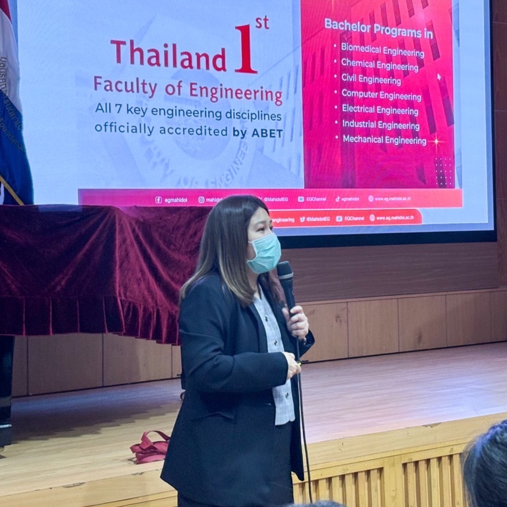 วันที่ 28 พฤษภาคม 2568 คณะวิศวกรรมศาสตร์ มหาวิทยาลัยมหิดล นำโดย ผศ.ดร.พรทิพย์ แก่งอินทร์ รองคณบดีฝ่ายบ่มเพาะนวัตกรรมและศิษย์เก่าสัมพันธ์ และนักศึกษาคณะวิศวกรรมศาสตร์ ร่วมจัดกิจกรรมสำหรับการให้ข้อมูลการศึกษาต่อเข้ามหาวิทยาลัย และเป็นวิทยากรภายใต้กิจกรรม Inspire เพื่อส่งเสริมและพัฒนา ศักยภาพผู้เรียนสำหรับการศึกษาต่อเข้ามหาวิทยาลัยของนักเรียนระดับชั้นมัธยมศึกษาปีที่ 6 ณ ห้องประชุมมงฟอร์ต โรงเรียนอัสสัมชัญธนบุรี โดยมีบูธแสดงนวัตกรรมจากคณะวิศวกรรมศาสตร์ ให้กับนักเรียนได้เยี่ยมชม ดังนี้ Flexible Manufacturing System Laboratory (FLEX Lab) ภาควิชาวิศวกรรมอุตสาหการ โดย อาจารย์ ดร. เอกชัย วารินศิริรักษ์ Biomechanics Analysis & Orthopaedic Device Design Laboratory (B-AODD Lab) ภาควิชาวิศวกรรมเครื่องกล โดย รศ.ดร.ปัญญา อรุณจรัสธรรม และ Research and Innovation in Mechanical Laboratory (RIM Lab) ภาควิชาวิศวกรรมเครื่องกล โดย ผศ.ดร.พรทิพย์ แก่งอินทร์