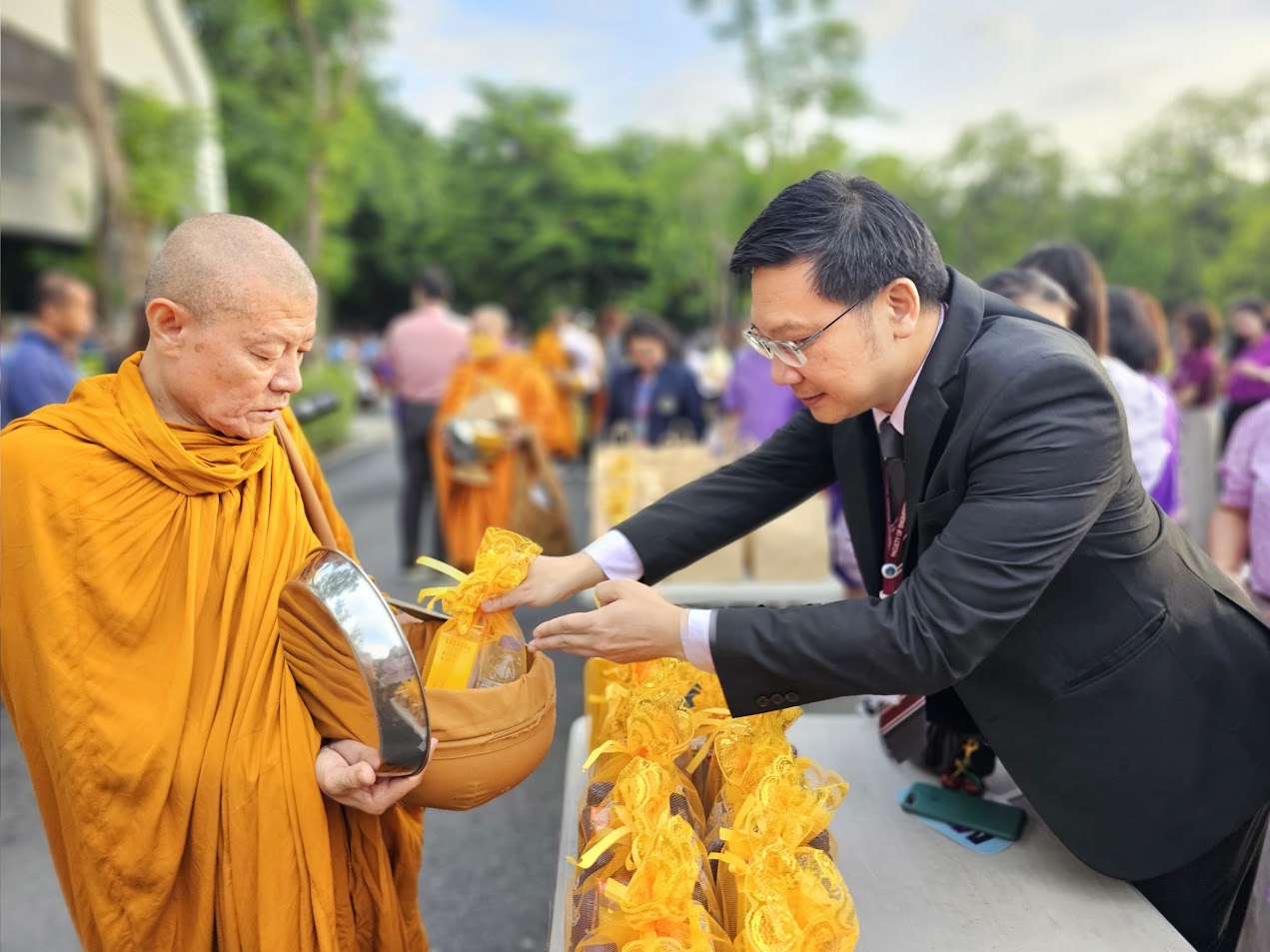 วันที่ 30 พฤษภาคม 2568 รศ.ดร.ธนภัทร์ วานิชานนท์ คณบดีคณะวิศวกรรมศาสตร์ พร้อมด้วยคณะผู้บริหาร หัวหน้าภาควิชา คณาจารย์ และบุคลากร เข้าร่วมพิธีทำบุญตักบาตรถวายเป็นพระราชกุศล เนื่องในวันเฉลิมพระชนมพรรษา สมเด็จพระนางเจ้าสุทิดา พัชรสุธาพิมลลักษณ พระบรมราชินี 47 พรรษา 3 มิถุนายน 2568 ณ บริเวณด้านหน้าสำนักงานอธิการบดี มหาวิทยาลัยมหิดล ศาลายา