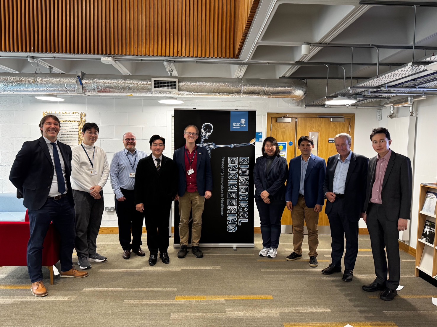 ในโอกาสนี้ รองศาสตราจารย์ ดร.ธนภัทร์ วานิชานนท์ และคณะผู้แทนจากคณะวิศวกรรมศาสตร์ ได้เข้าเยี่ยมชมห้องปฏิบัติการและศูนย์วิจัยของ University of Strathclyde เพื่อศึกษานวัตกรรมและเทคโนโลยีด้านวิศวกรรมชีวการแพทย์ที่ล้ำสมัย นับเป็นก้าวสำคัญในการขยายเครือข่ายความร่วมมือระดับนานาชาติของคณะวิศวกรรมศาสตร์ มหาวิทยาลัยมหิดล โดยมุ่งเน้นการพัฒนางานวิจัย นวัตกรรม และการแลกเปลี่ยนองค์ความรู้เพื่อประโยชน์ต่อวงการวิศวกรรมและสุขภาพของประเทศไทยในอนาคต
