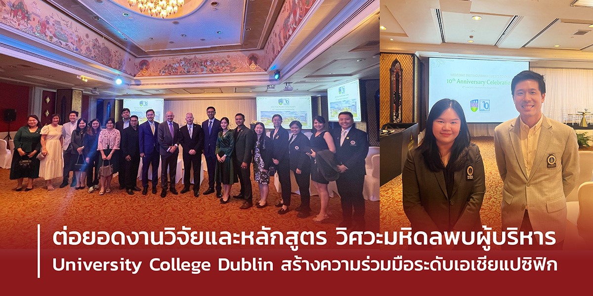 เมื่อวันที่ 17 มิถุนายน 2568 คณะวิศวกรรมศาสตร์ มหาวิทยาลัยมหิดล นำโดย ผู้ช่วยศาสตราจารย์ ดร.ภัทรพร โปสกนิษฐกุล รองคณบดีฝ่ายวิเทศสัมพันธ์และสื่อสารองค์กร และ ผู้ช่วยศาสตราจารย์ ดร. วีรวุฒิ ชัยวัฒน์ อาจารย์ประจำภาควิชาวิศวกรรมเคมี เข้าร่วมงาน the 10th Anniversary of the UCD Asia Pacific Global Centre ณ ห้องบอลรูม โรงแรมอนันตรา สยาม กรุงเทพฯ โดยงานนี้จัดขึ้นเพื่อแสดงถึงความสำเร็จในการเชื่อมโยงความร่วมมือทางวิชาการระหว่าง University College Dublin (UCD) กับประเทศในภูมิภาคเอเชียแปซิฟิก รวมถึงประเทศไทย