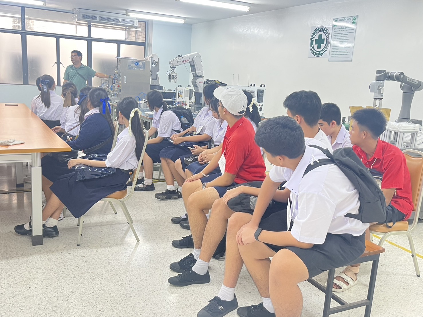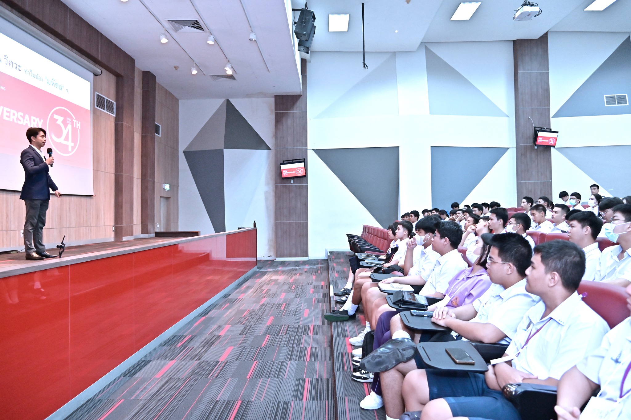 ในช่วงเช้า นักเรียนได้ร่วมรับฟังข้อมูลสำคัญเกี่ยวกับระบบการรับนักศึกษา TCAS เทคนิคการเตรียมพอร์ต และการตอบสัมภาษณ์ โดย อาจารย์ ดร.สุนทร ตันติถาวรวัฒน์ พร้อมรับแรงบันดาลใจจากรุ่นพี่นักศึกษาคณะวิศวกรรมศาสตร์ ที่มาร่วมแชร์ประสบการณ์การใช้ชีวิตในรั้วมหาวิทยาลัย ไฮไลต์อีกช่วงหนึ่งของงาน คือ การบรรยายพิเศษหัวข้อ “AI ช่วยได้ ถ้าใช้เป็น” โดย อ.ดร.เจษฎา อานิล ผู้ช่วยอธิการบดีฝ่ายการศึกษา อาจารย์ประจำสาขาวิชาวิศวกรรมชีวการแพทย์ ซึ่งได้รับความสนใจจากนักเรียนเป็นอย่างมาก