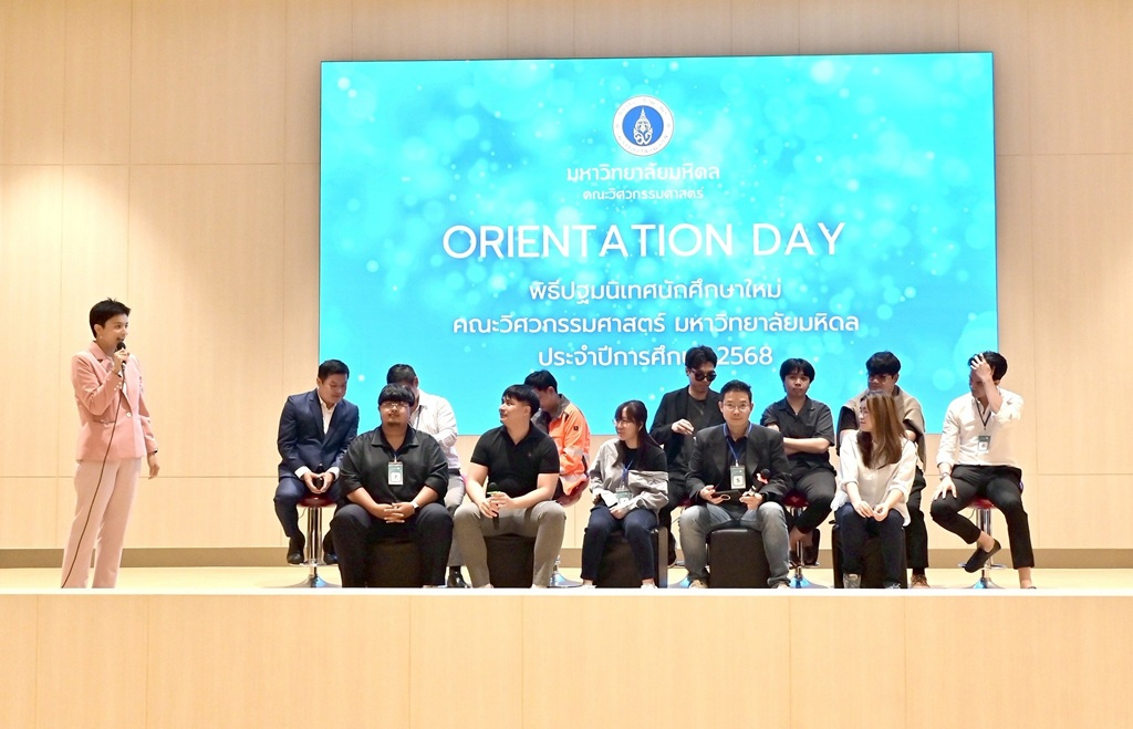 กิจกรรมเริ่มต้นด้วยการแนะนำด้านสุขภาพกาย สุขภาพใจ สิทธิประโยชน์ของนักศึกษา และแนวทางการดำเนินชีวิต ตามด้วยการบรรยายเกี่ยวกับความปลอดภัย โดย อาจารย์ ดร.ภัทรพล จินดาศิริพันธ์ ผู้ช่วยคณบดีฝ่ายการพัฒนาโครงสร้างพื้นฐานและสิ่งแวดล้อม และให้ความรู้เรื่อง พ.ร.บ.คุ้มครองข้อมูลส่วนบุคคล (PDPA) โดย ผู้ช่วยศาสตราจารย์ ดร.โษฑศ์รัตต ธรรมบุษดี ผู้ช่วยคณบดีฝ่ายการเปลี่ยนแปลงทางดิจิทัลขององค์กร และมีนักศึกษารุ่นพี่และศิษย์เก่าที่มาร่วมส่งต่อประสบการณ์และแรงบันดาลใจผ่านกิจกรรม “Connect the Dots” และอีกหนึ่งไฮไลต์สำคัญคือ การมอบทุนการศึกษา “ทุนพี่สู่น้อง วิศวกรรมศาสตร์ มหิดล” จากศิษย์เก่าคณะฯ โดย ผู้ช่วยศาสตราจารย์ ดร.พรทิพย์ แก่งอินทร์ รองคณบดีฝ่ายบ่มเพาะนวัตกรรมและศิษย์เก่าสัมพันธ์ พร้อมด้วยกิจกรรมสร้างแรงบันดาลใจ “เริ่มที่เรา ไม่ต้องเดาเส้นทาง” โดย ผู้ช่วยศาสตราจารย์ ดร.วศพร เตชะพีรพานิช รองคณบดีฝ่ายวิชาการและกิจการนักศึกษา กิจกรรมปฐมนิเทศในครั้งนี้นับเป็นก้าวแรกที่สำคัญของการเรียนรู้และการสร้างเครือข่ายทางวิชาการในสายงานวิศวกรรม พร้อมจุดประกายความฝันของนักศึกษารุ่นใหม่ให้เติบโตอย่างมีเป้าหมายโดยแท้จริง