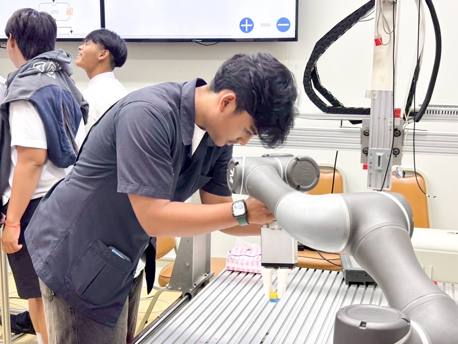 วันที่ 7 สิงหาคม 2568 คณะวิศวกรรมศาสตร์ มหาวิทยาลัยมหิดล โดยงานบ่มเพาะและสนับสนุนการพัฒนานวัตกรรม นำโดย ผู้ช่วยศาสตราจารย์ ดร.พรทิพย์ แก่งอินทร์ รองคณบดีฝ่ายบ่มเพาะนวัตกรรมและศิษย์เก่าสัมพันธ์ พร้อมด้วยคณาจารย์และนักศึกษา จัดโครงการ “Engineering Experience Day @ Mahidol Engineering” ร่วมกับ โรงเรียนรัตนโกสินทร์สมโภชบวรนิเวศศาลายา ในพระสังฆราชูปถัมภ์ ณ Innogineer Studio ชั้น 1 อาคาร 3 คณะวิศวกรรมศาสตร์ ม.มหิดล โดยมีนักเรียนชั้นมัธยมศึกษาปีที่ 6 จำนวน 52 คน เข้าร่วม เพื่อเปิดโอกาสให้เยาวชนได้เรียนรู้พื้นฐานด้านเทคโนโลยีหุ่นยนต์และระบบควบคุมหุ่นยนต์ พร้อมทั้งฝึกปฏิบัติจริงผ่านกิจกรรม Workshop อาทิ การฝึกใช้งานหุ่นยนต์ขนาดเล็ก Dobot การเรียนรู้กระบวนการผลิตอัตโนมัติใน Flexible Manufacturing System Laboratory (FLEX LAB) ภาควิชาวิศวกรรมอุตสาหการ
