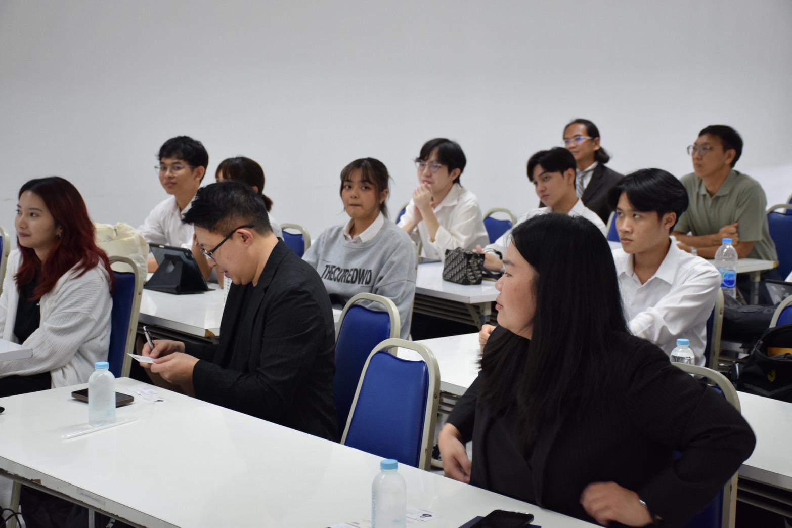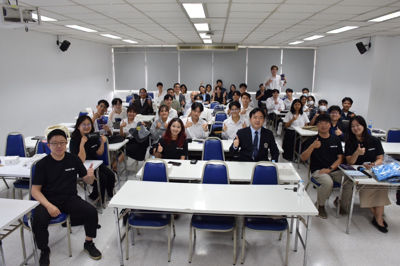 นอกจากนี้ Mr. Chayman Chiangchaisakunthai นักศึกษา MS/PhD Integrated จาก KAIST EE ได้มาแบ่งปันประสบการณ์ชีวิตในรั้วมหาวิทยาลัย KAIST รวมถึงชีวิตในแคมปัส การเรียน และการทำวิจัย เพื่อให้นักศึกษาที่สนใจได้ข้อมูลที่เป็นประโยชน์อย่างรอบด้าน นักศึกษาได้สอบถามข้อสงสัยเพิ่มเติมเกี่ยวกับโปรแกรมและทุนการศึกษาโดยตรงกับวิทยากร ถือเป็นโอกาสที่ดีสำหรับนักศึกษาไทยที่ต้องการศึกษาต่อในระดับสูงและร่วมงานกับบริษัทเทคโนโลยีชั้นนำระดับโลกอย่าง Samsung
