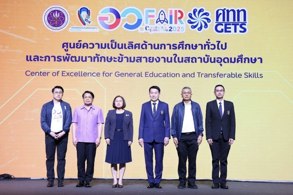วันศุกร์ที่ 15 สิงหาคม 2568 คณะวิศวกรรมศาสตร์ มหาวิทยาลัยมหิดล นำโดย รองศาสตราจารย์ ดร.ธนภัทร์ วานิชานนท์ คณบดี เข้าร่วมงานแถลงข่าวเปิดตัว “เปิดตัวศูนย์ความเป็นเลิศด้านการศึกษาทั่วไปและการพัฒนาทักษะข้ามสายงานในสถาบันอุดมศึกษา” (Center of Excellence for General Education and Transferable Skills: GETS) ในงาน อว. แฟร์ (SCI POWER FOR FUTURE THAILAND) โดยมี ศาสตราจารย์ นายแพทย์ปิยะมิตร ศรีธรา อธิการบดีมหาวิทยาลัยมหิดล พร้อมด้วย ศาสตราจารย์ ดร. เภสัชกรเนติ สุขสมบูรณ์ รองอธิการบดีฝ่ายการศึกษา มหาวิทยาลัยมหิดล ร่วมในพิธีเปิดฯ ณ เวทีกลาง (Main stage) ศูนย์การประชุมแห่งชาติสิริกิติ์ กรุงเทพมหานคร