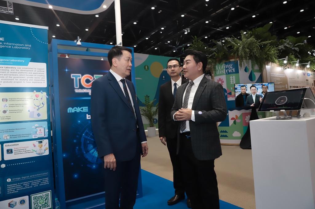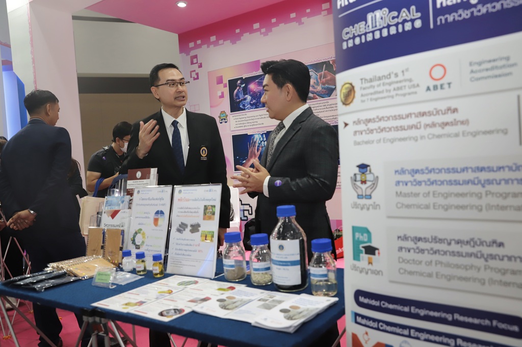 ในโอกาสนี้ ศาสตราจารย์ นายแพทย์ปิยะมิตร ศรีธรา อธิการบดีมหาวิทยาลัยมหิดล พร้อมด้วย ศาสตราจารย์ ดร. เภสัชกรเนติ สุขสมบูรณ์ รองอธิการบดีฝ่ายการศึกษา มหาวิทยาลัยมหิดล รองศาสตราจารย์ ดร.ธนภัทร์ วานิชานนท์ คณบดีคณะวิศวกรรมศาสตร์ มหาวิทยาลัยมหิดล ได้เยี่ยมชมนิทรรศการภายในงาน และบูธของมหาวิทยาลัยมหิดล
