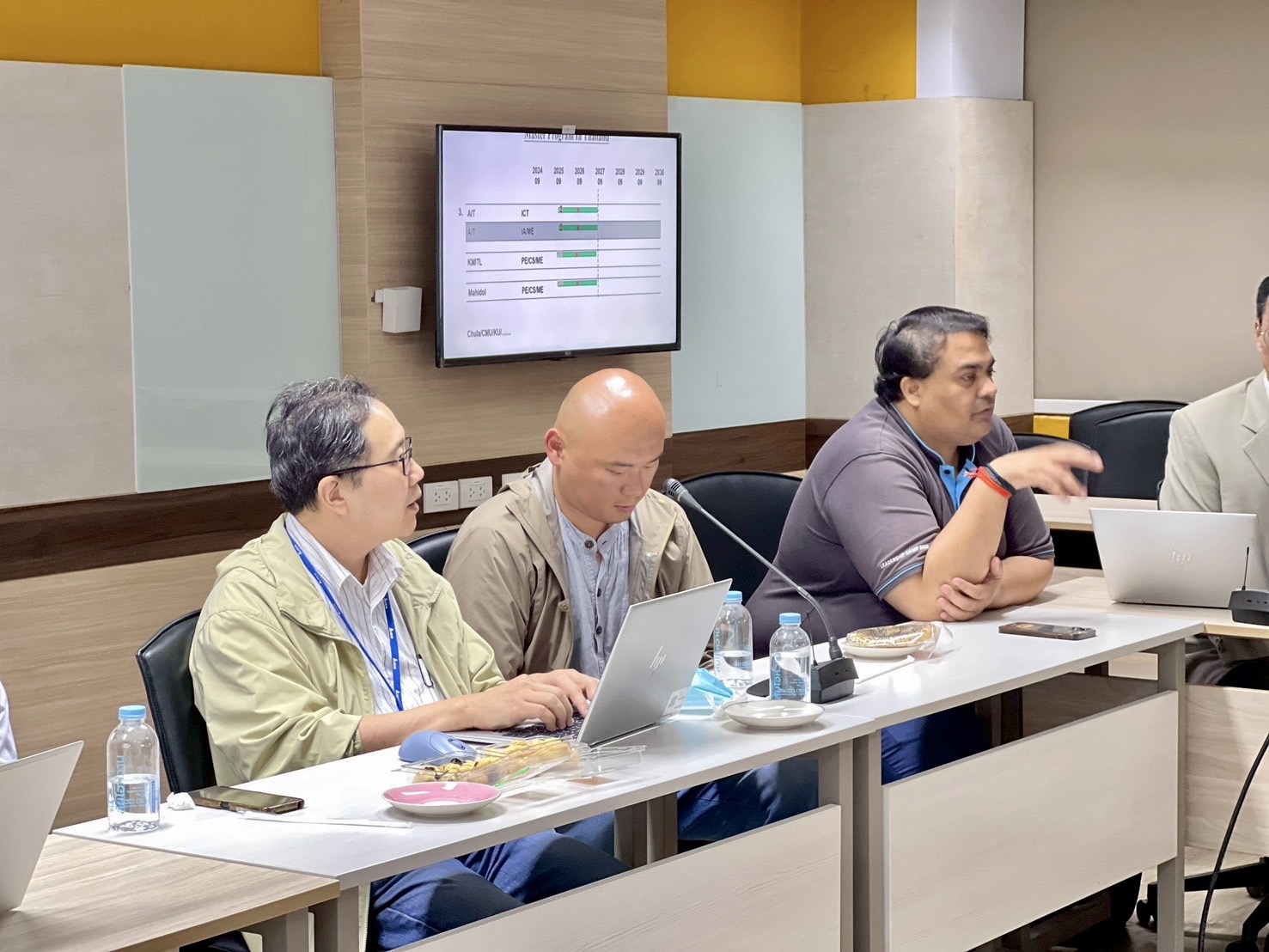 วันที่ 19 สิงหาคม 2568 รองศาสตราจารย์ ดร.ธนภัทร์ วานิชานนท์ คณบดีคณะวิศวกรรมศาสตร์ มหาวิทยาลัยมหิดล พร้อมด้วย อาจารย์ ดร.สุพรรณ ทิพย์ทิพากร หัวหน้าภาควิชาวิศวกรรมไฟฟ้า ผู้ช่วยศาสตราจารย์ ดร.กลกรณ์ วงศ์ภาติกะเสรี หัวหน้าภาควิชาวิศวกรรมคอมพิวเตอร์ ผู้ช่วยศาสตราจารย์ ดร.อารมณ์ เบิกฟ้า หัวหน้าภาควิชาวิศวกรรมเครื่องกล และคณาจารย์ ให้การต้อนรับ Mr. Chang Shih-Chien ประธานเจ้าหน้าที่ฝ่ายเทคโนโลยี (CTO) ของบริษัท Delta Electronics (Thailand) พร้อมคณะผู้บริหาร ในโอกาสเดินทางมาเยี่ยมเยือนคณะวิศวกรรมศาสตร์ มหาวิทยาลัยมหิดล โดยได้หารือถึงแนวทางความร่วมมือด้านวิศวกรรม เทคโนโลยี และนวัตกรรม เพื่อเสริมสร้างการพัฒนาบุคลากรและงานวิจัยร่วมกัน รวมถึงการสนับสนุนทุนการศึกษาแก่นักศึกษาคณะวิศวกรรมศาสตร์ เพื่อส่งเสริมการเรียนรู้และเพิ่มโอกาสในการพัฒนาศักยภาพของเยาวชนไทยในอนาคต