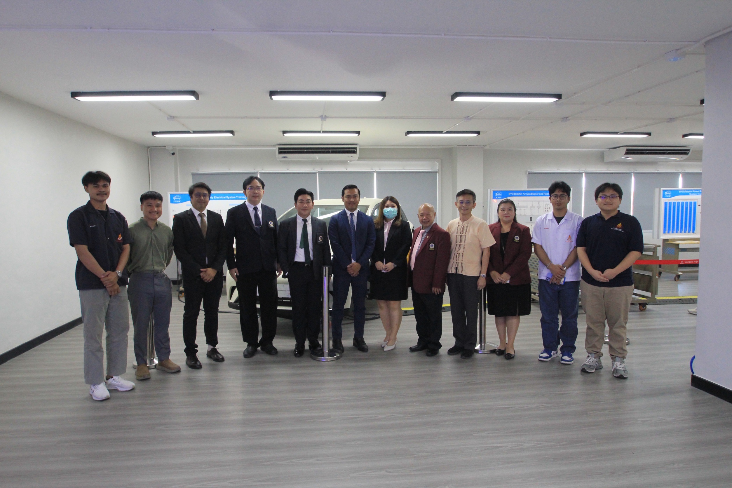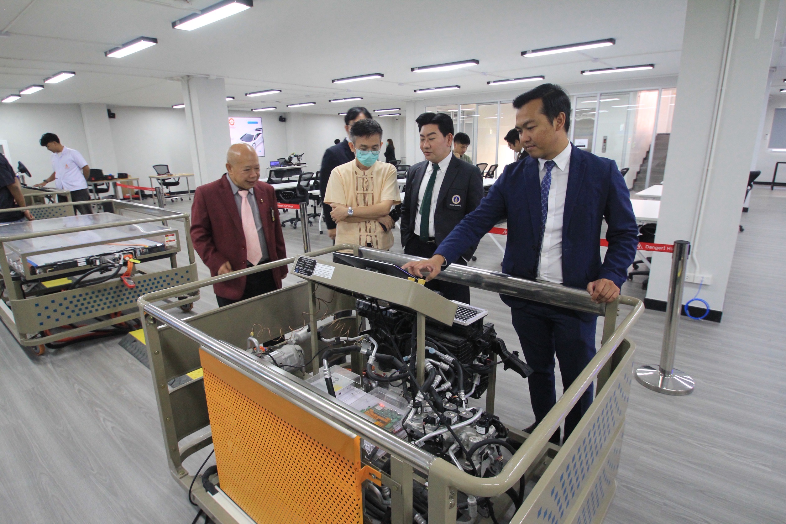 วันที่ 20 สิงหาคม 2568 รองศาสตราจารย์ ดร.ธนภัทร์ วานิชานนท์ คณบดีคณะวิศวกรรมศาสตร์ มหาวิทยาลัยมหิดล และทีมผู้บริหาร เข้าเยี่ยมชมการดำเนินงานของคณะวิศวกรรมศาสตร์ มหาวิทยาลัยกรุงเทพธนบุรี รวมถึงศูนย์ฝึกอบรมและศูนย์บริการด้านยานยนต์ไฟฟ้า โดยมี อาจารย์ สมมาตร ทองคำ คณบดีคณะวิศวกรรมศาสตร์ มหาวิทยาลัยกรุงเทพธนบุรี ให้การต้อนรับ ทั้งนี้ได้หารือแนวทางความร่วมมือทางวิชาการ เพื่อสร้างความร่วมมือทางวิชาการในหลากหลายมิติ อาทิ การจัดการเรียนการสอน การวิจัย การบริการวิชาการ และการพัฒนาบุคลากรร่วมกัน โดยเฉพาะในสาขาวิชาที่เกี่ยวข้องกับเทคโนโลยียานยนต์ไฟฟ้าและเทคโนโลยีการออกแบบและจำลองระบบ (Design & Simulation) นอกจากนี้ยังจะมีการหารือเกี่ยวกับการใช้ทรัพยากรร่วมกัน เช่น อุปกรณ์และซอฟต์แวร์ การแลกเปลี่ยนนักศึกษา อาจารย์ และผู้เชี่ยวชาญ การจัดอบรม การฝึกประสบการณ์ และกิจกรรมร่วมเชิงวิชาการอีกด้วย