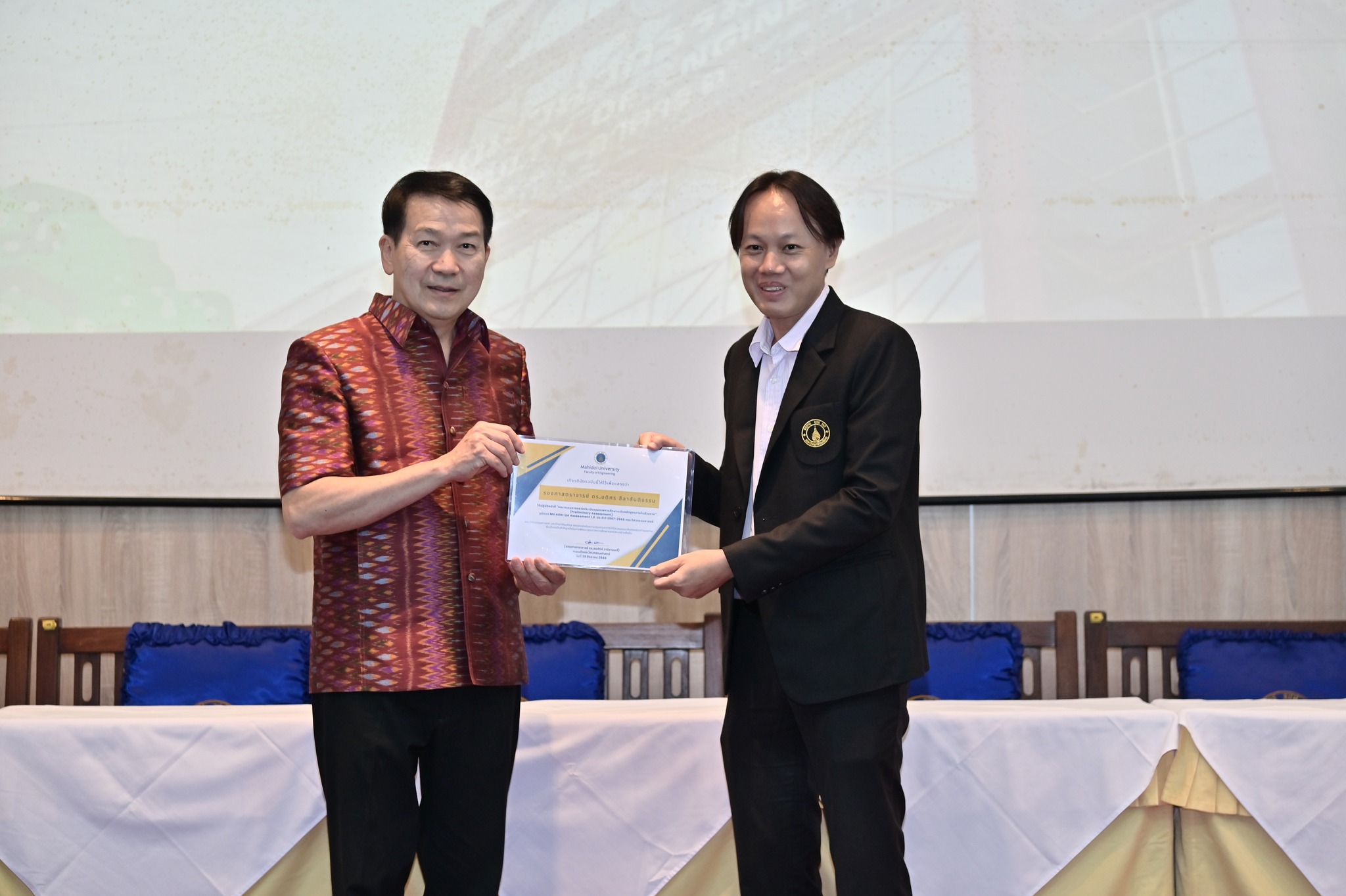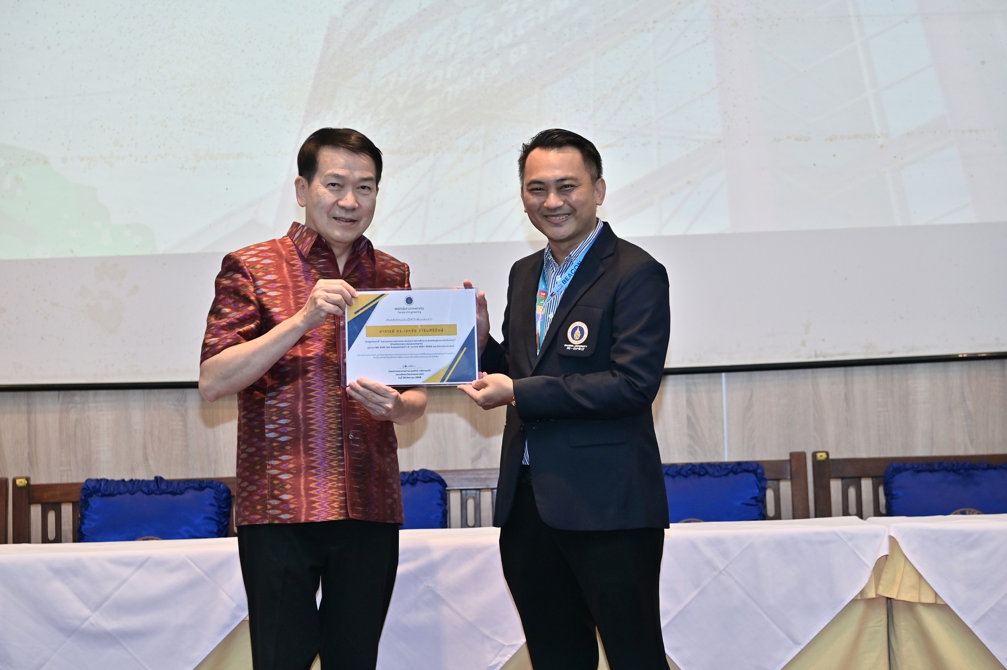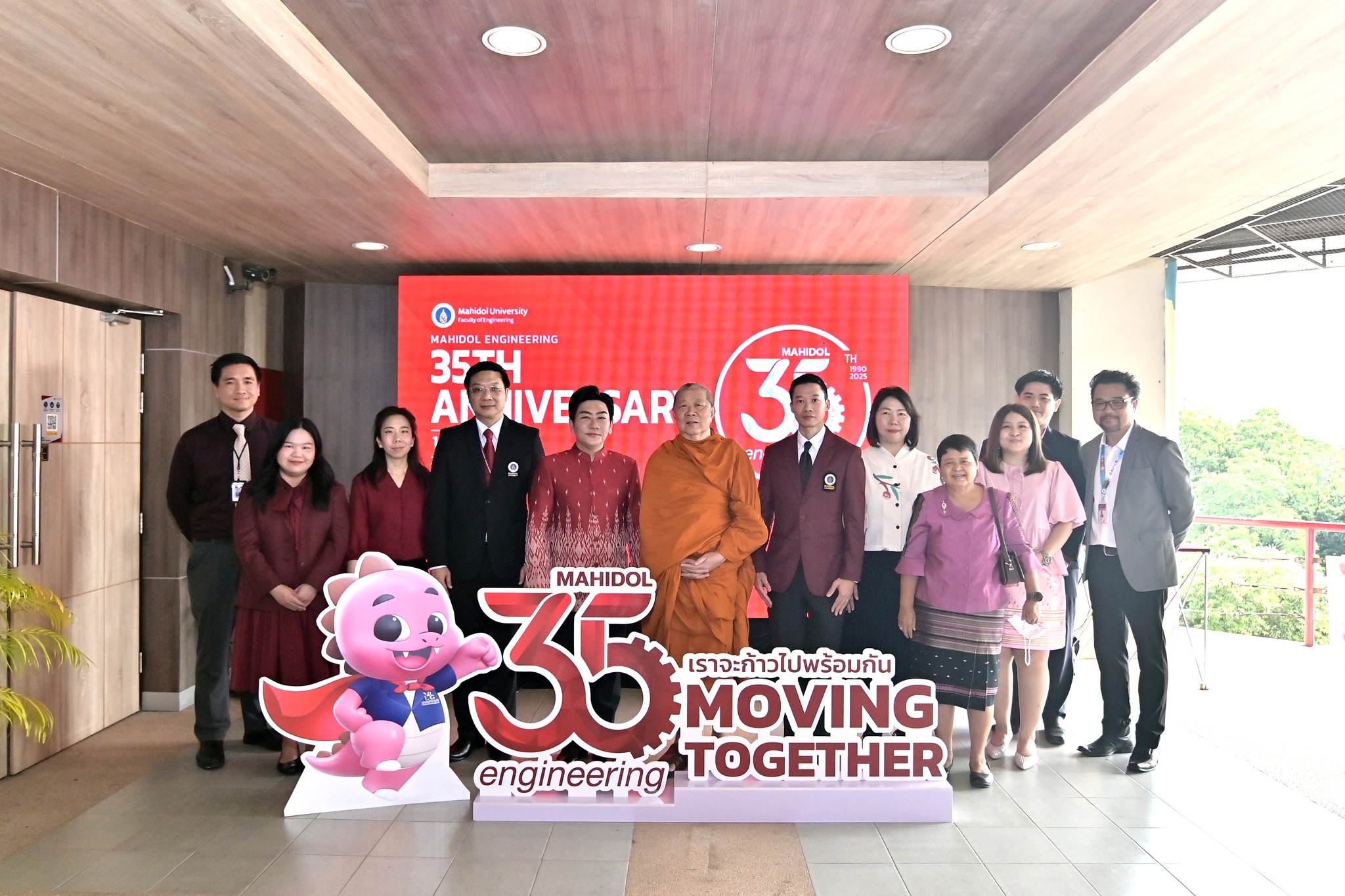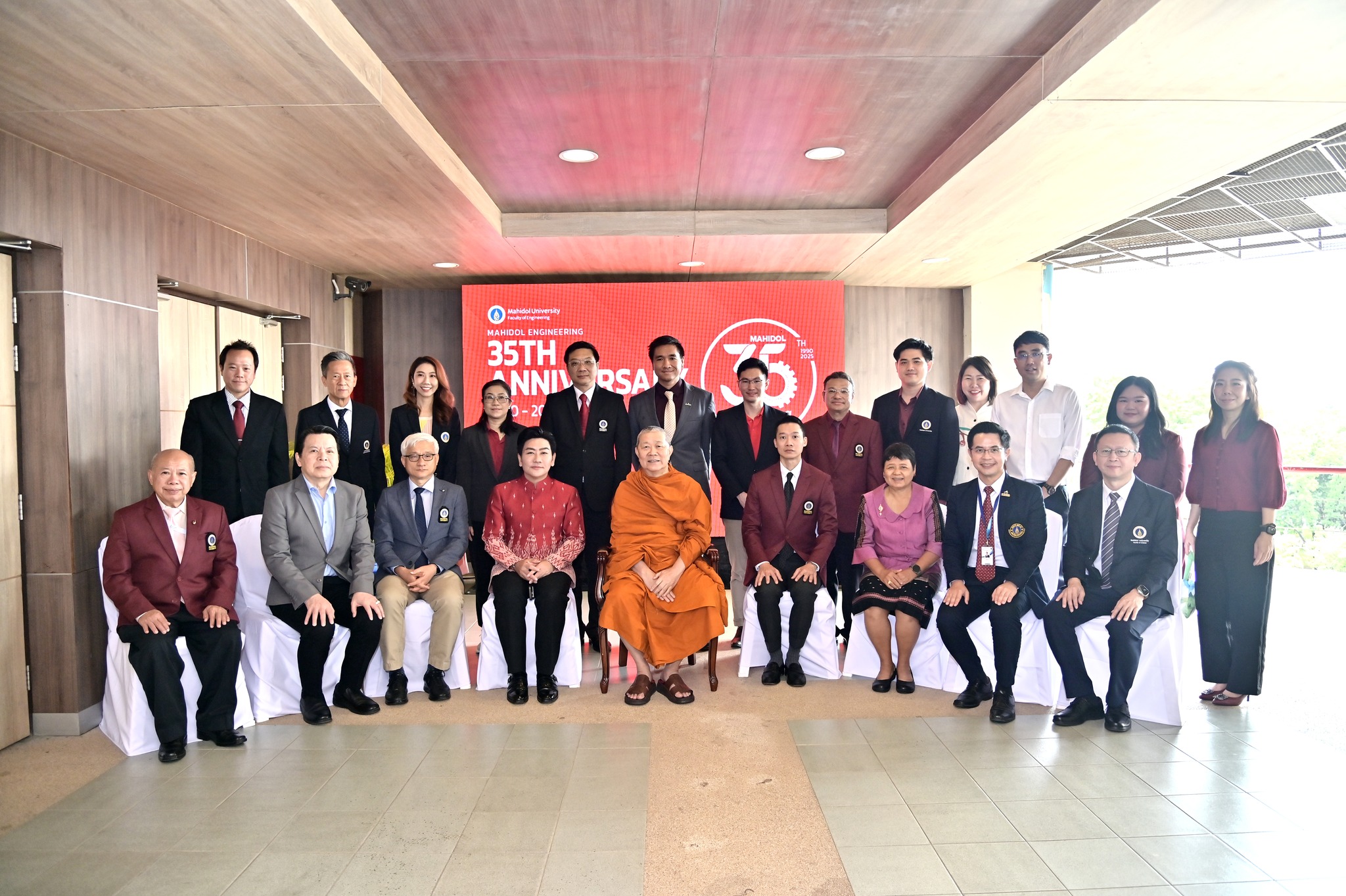 วันที่ 29 สิงหาคม 2568 คณะวิศวกรรมศาสตร์ มหาวิทยาลัยมหิดล จัดงานเฉลิมฉลองครบรอบ 35 ปี แห่งการสถาปนาคณะวิศวกรรมศาสตร์ โดยมี รองศาสตราจารย์ ดร.ธนภัทร์ วานิชานนท์ คณบดีคณะวิศวกรรมศาสตร์ พร้อมด้วยคณะผู้บริหารและบุคลากร ร่วมให้การต้อนรับอธิการบดี คณบดี ผู้บริหาร และผู้แทนจากส่วนงานต่าง ๆ ของมหาวิทยาลัยมหิดล ที่มาร่วมแสดงความยินดี ในโอกาสครบรอบ 35 ปี แห่งการสถาปนาคณะวิศวกรรมศาสตร์ มหาวิทยาลัยมหิดล ณ ห้อง R-6450 (ตึกแดง) อาคาร 3 คณะวิศวกรรมศาสตร์ มหาวิทยาลัยมหิดล