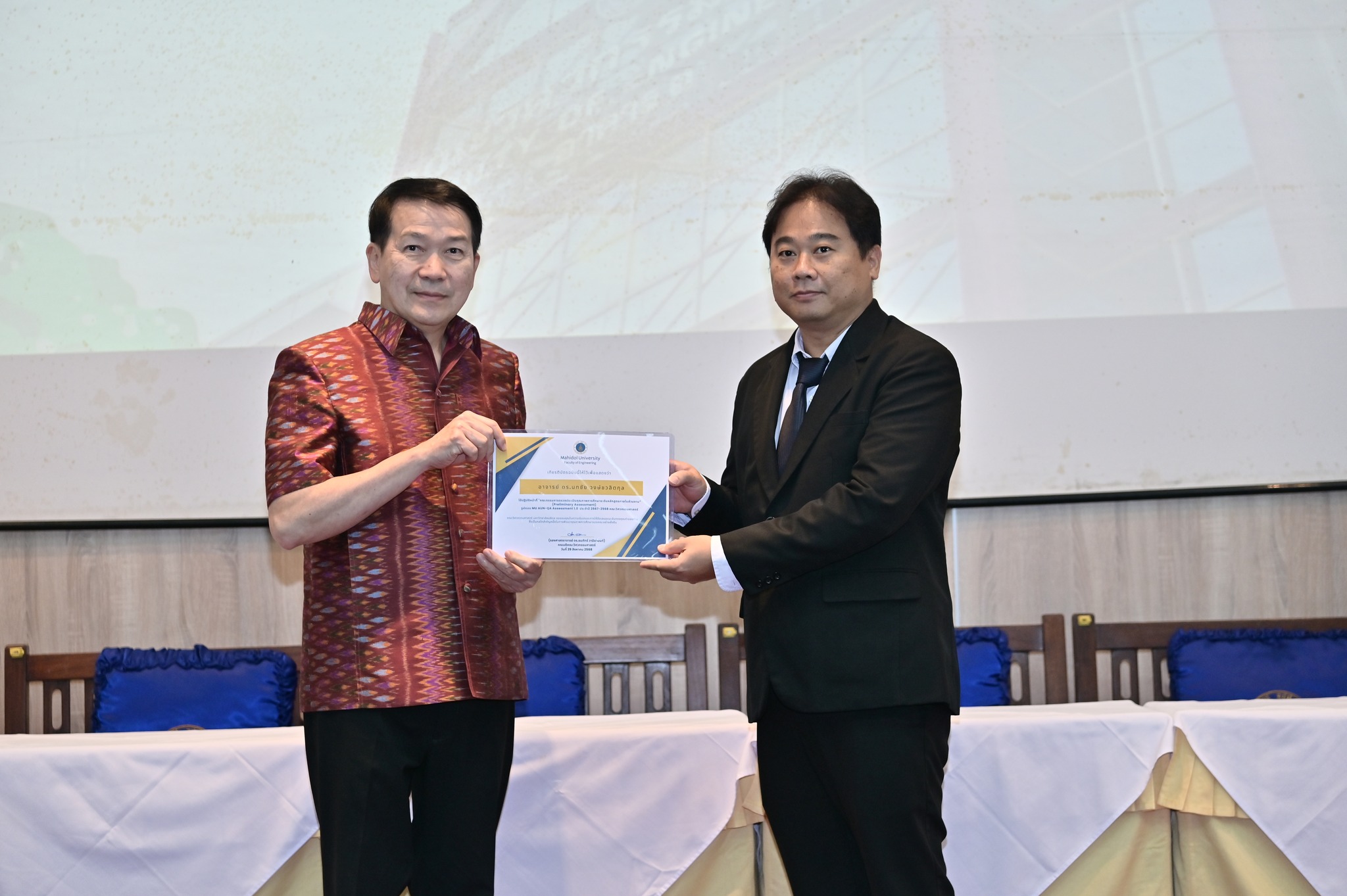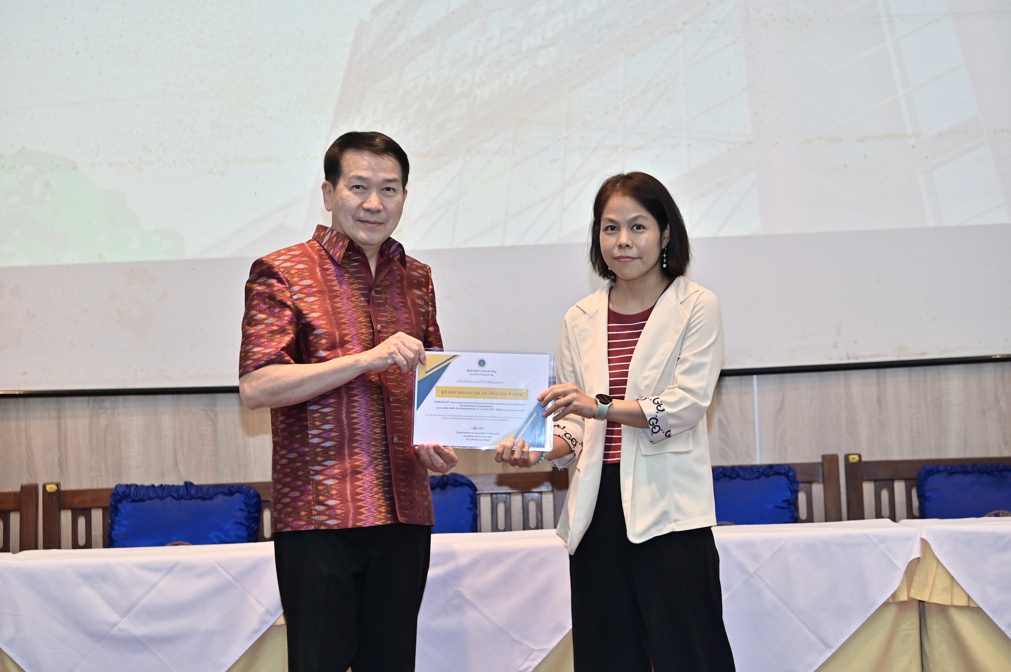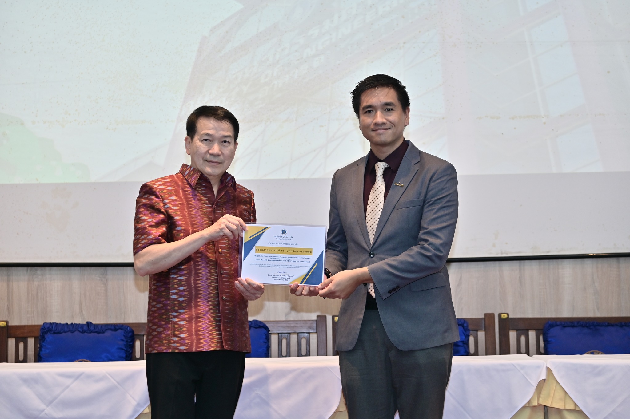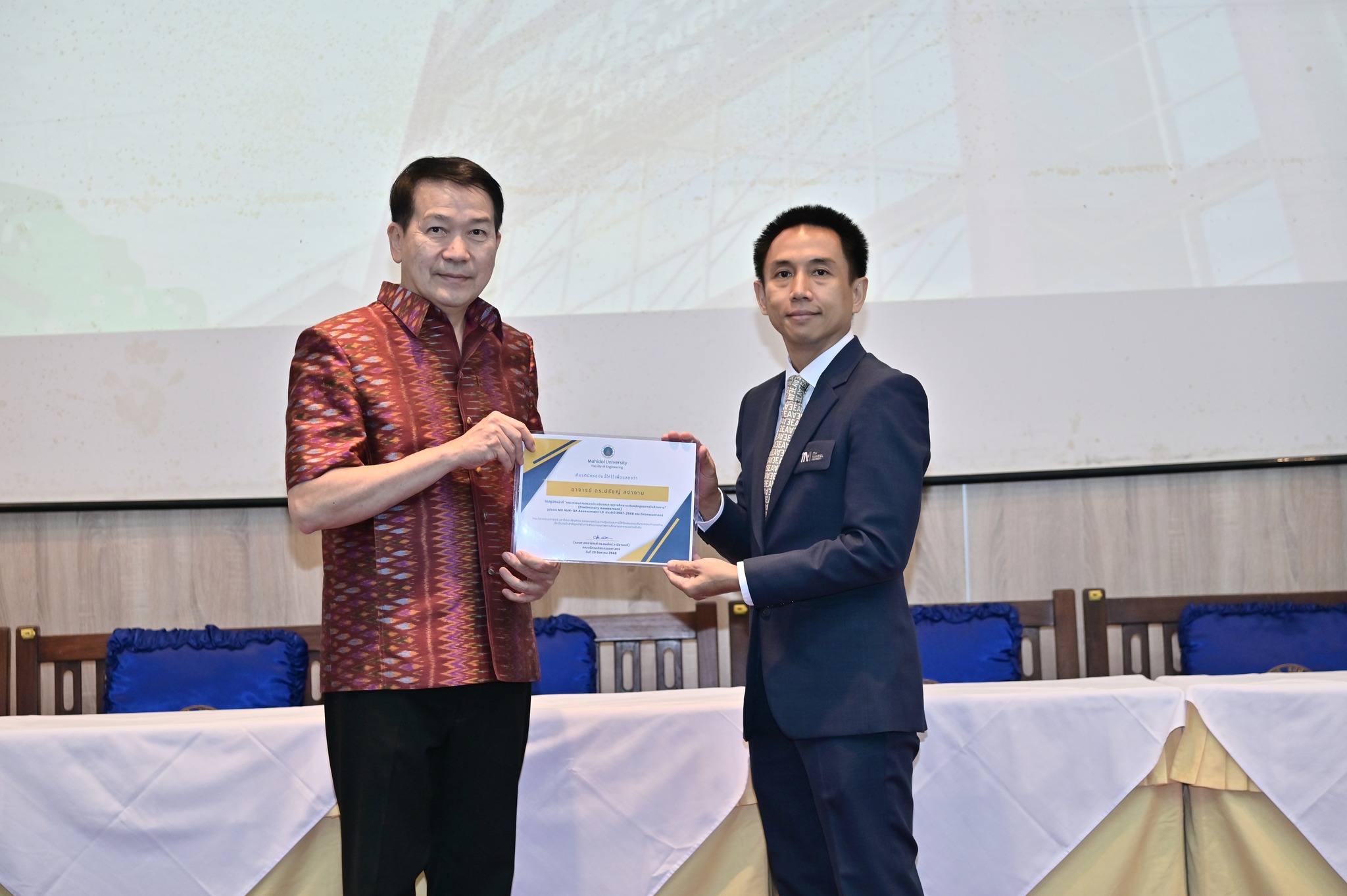 วันที่ 29 สิงหาคม 2568 คณะวิศวกรรมศาสตร์ มหาวิทยาลัยมหิดล จัดงานเฉลิมฉลองครบรอบ 35 ปี แห่งการสถาปนาคณะวิศวกรรมศาสตร์ โดยมี รองศาสตราจารย์ ดร.ธนภัทร์ วานิชานนท์ คณบดีคณะวิศวกรรมศาสตร์ พร้อมด้วยคณะผู้บริหารและบุคลากร ร่วมให้การต้อนรับอธิการบดี คณบดี ผู้บริหาร และผู้แทนจากส่วนงานต่าง ๆ ของมหาวิทยาลัยมหิดล ที่มาร่วมแสดงความยินดี ในโอกาสครบรอบ 35 ปี แห่งการสถาปนาคณะวิศวกรรมศาสตร์ มหาวิทยาลัยมหิดล ณ ห้อง R-6450 (ตึกแดง) อาคาร 3 คณะวิศวกรรมศาสตร์ มหาวิทยาลัยมหิดล
