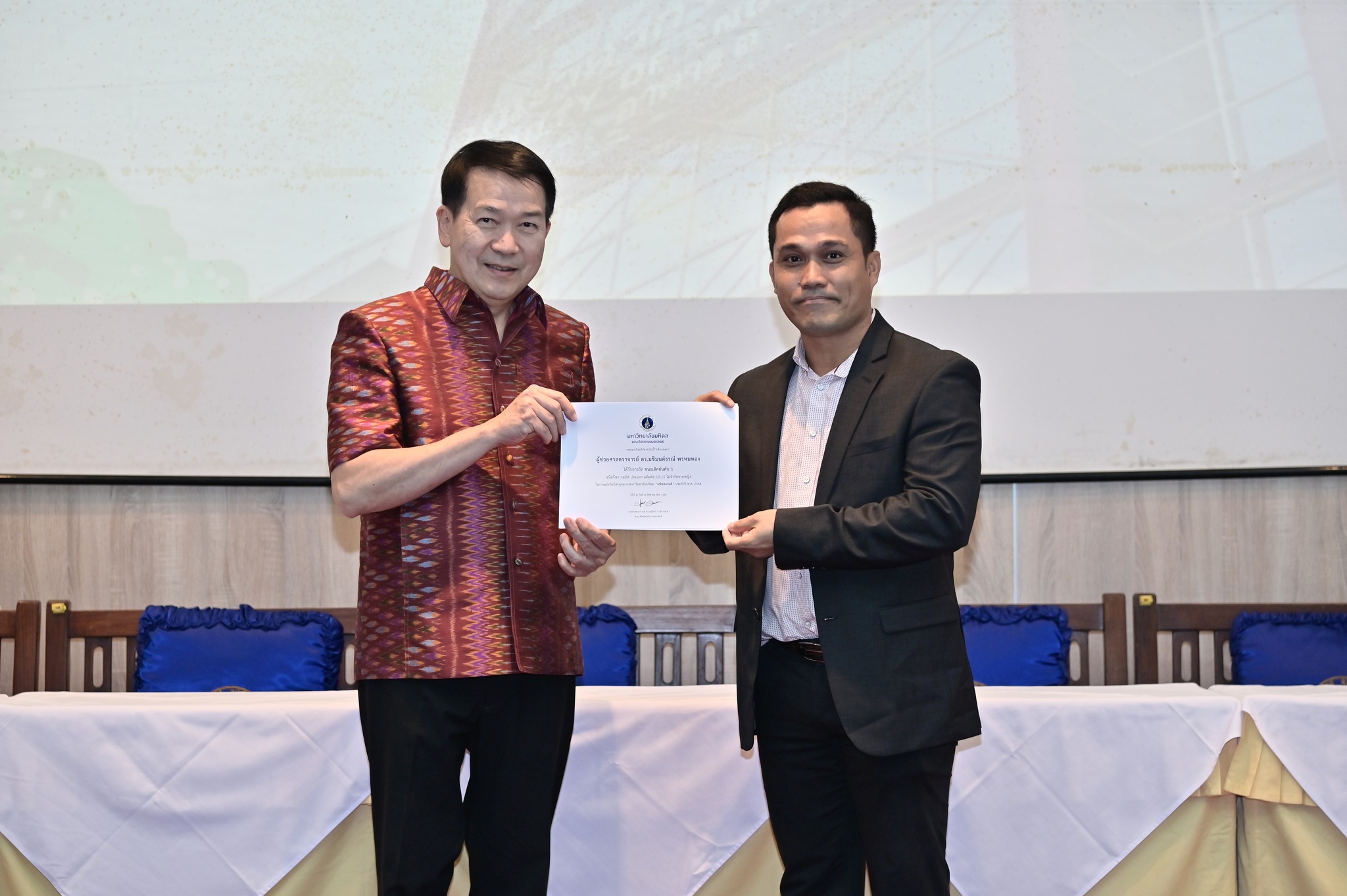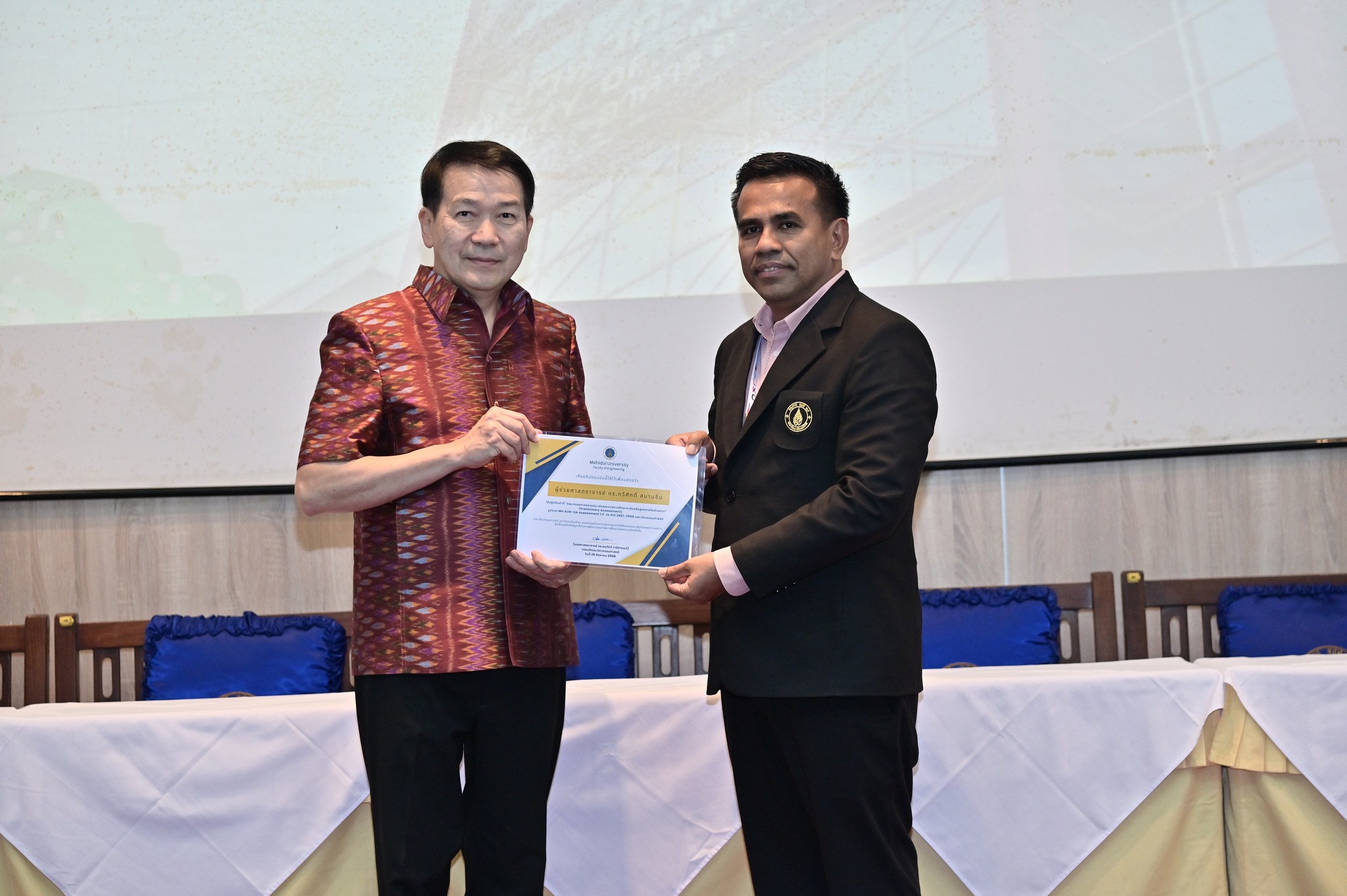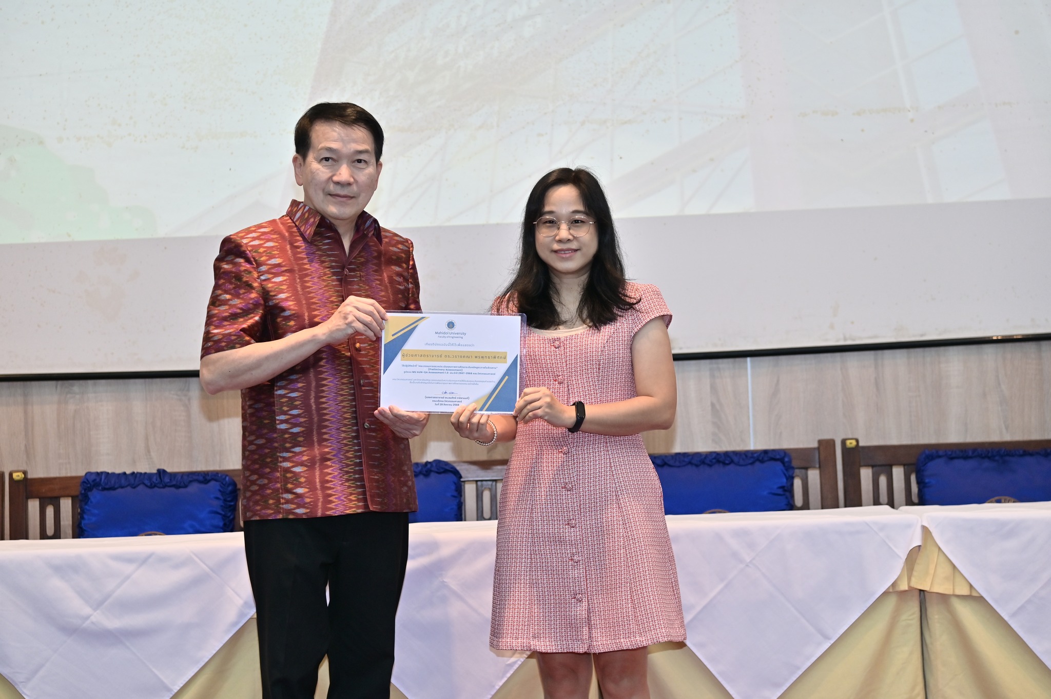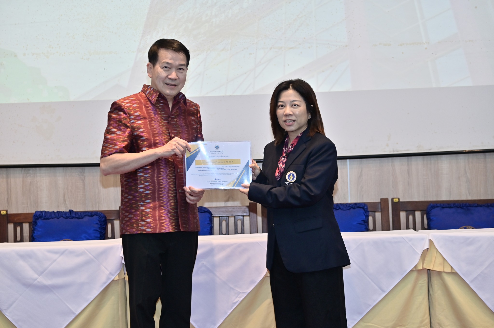วันที่ 29 สิงหาคม 2568 คณะวิศวกรรมศาสตร์ มหาวิทยาลัยมหิดล จัดงานเฉลิมฉลองครบรอบ 35 ปี แห่งการสถาปนาคณะวิศวกรรมศาสตร์ โดยมี รองศาสตราจารย์ ดร.ธนภัทร์ วานิชานนท์ คณบดีคณะวิศวกรรมศาสตร์ พร้อมด้วยคณะผู้บริหารและบุคลากร ร่วมให้การต้อนรับอธิการบดี คณบดี ผู้บริหาร และผู้แทนจากส่วนงานต่าง ๆ ของมหาวิทยาลัยมหิดล ที่มาร่วมแสดงความยินดี ในโอกาสครบรอบ 35 ปี แห่งการสถาปนาคณะวิศวกรรมศาสตร์ มหาวิทยาลัยมหิดล ณ ห้อง R-6450 (ตึกแดง) อาคาร 3 คณะวิศวกรรมศาสตร์ มหาวิทยาลัยมหิดล