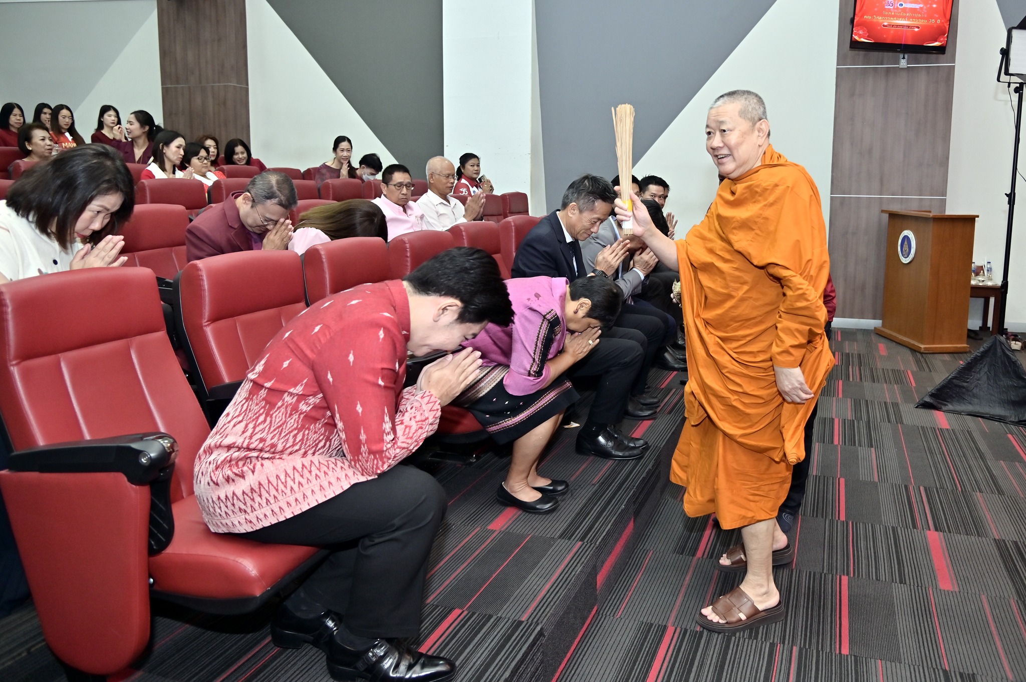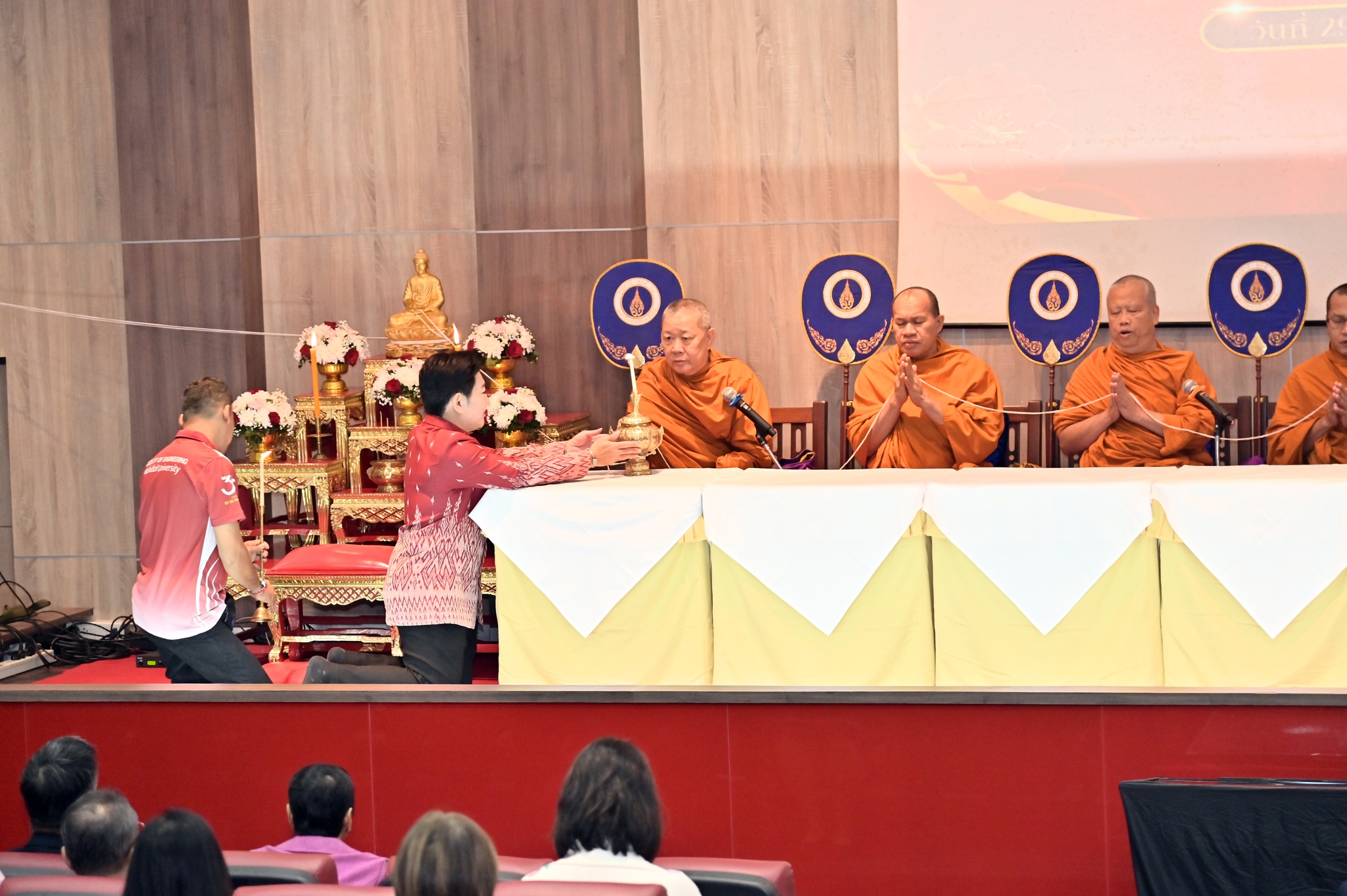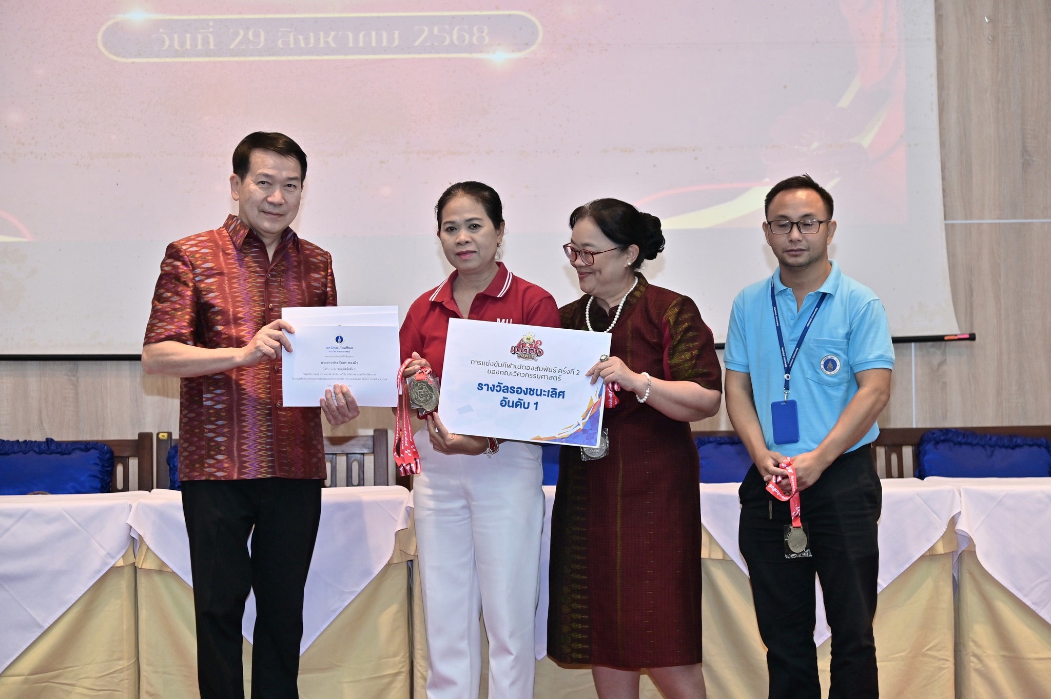 ภายในงานช่วงเช้ามีการสักการะสิ่งศักดิ์สิทธิ์ภายในมหาวิทยาลัย พิธีสงฆ์ โดยได้รับความเมตตาจาก สมเด็จพระมหารัชมงคลมุนี (เจ้าคุณธงชัย) เจ้าคณะใหญ่หนกลาง ผู้ช่วยเจ้าอาวาสวัดไตรมิตรวิทยารามวรวิหาร พร้อมพระสงฆ์ 9 รูป เจริญพระพุทธมนต์ และประกอบพิธีถวายภัตตาหารเพลและจตุปัจจัยไทยทาน เจริญชัยมงคลคาถา และประพรมน้ำพระพุทธมนต์ และได้รับเกียรติจาก ศาสตราจารย์ นพ.ปิยะมิตร ศรีธรา อธิการบดีมหาวิทยาลัยมหิดล บรรยายพิเศษในหัวข้อ “35 Years of Engineering Excellence and Synergy: Driving Innovation and Delivering Real-World Impact” โดยมี ศาสตราจารย์ นพ.ปิยะมิตร ศรีธรา อธิการบดีมหาวิทยาลัยมหิดล ให้เกียรติมอบรางวัล อาจารย์ตัวอย่างคณะวิศวกรรมศาสตร์ มหาวิทยาลัยมหิดล ระดับส่วนงาน และระดับหน่วยงาน เกียรติบัตรคณะกรรมการที่ปฏิบัติหน้าที่ คณะกรรมการตรวจประเมินการศึกษาระดับหลักสูตรภายในส่วนงาน เกียรติบัตรกีฬาบุคลากร มหาวิทยาลัยมหิดล ประจำปี 2568 การแข่งขันกีฬาบุคลากรมหาวิทยาลัยแห่งประเทศไทย (ตุมปังเกมส์) และเหรียญรางวัล การแข่งขัน EG เปตองสัมพันธ์ ครั้งที่ 2