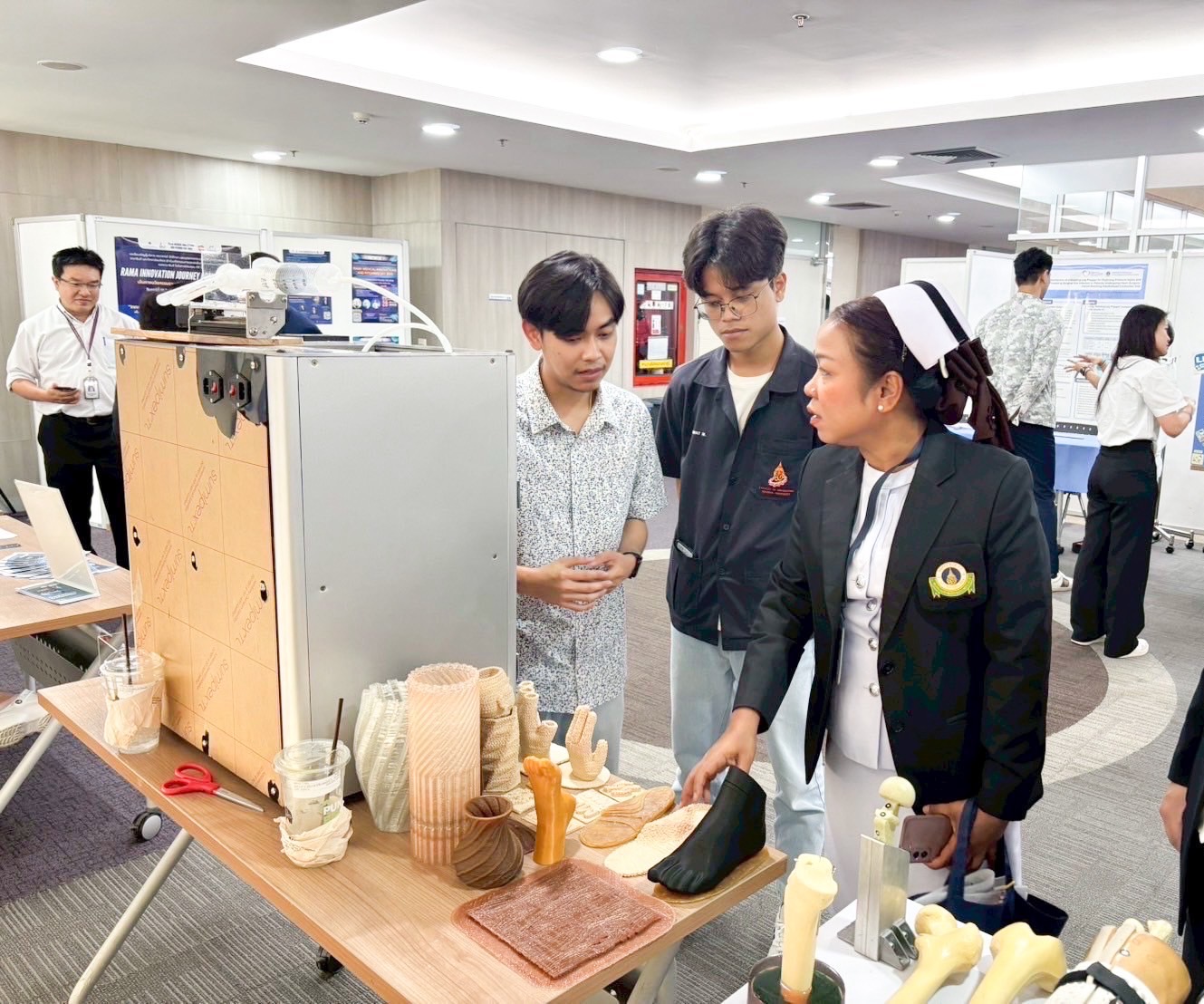 วันที่ 28 – 29 สิงหาคม 2568 คณะวิศวกรรมศาสตร์ มหาวิทยาลัยมหิดล นำโดย ผู้ช่วยศาสตราจารย์ ดร.พรทิพย์ แก่งอินทร์ รองคณบดีฝ่ายบ่มเพาะนวัตกรรมและศิษย์เก่าสัมพันธ์ ร่วมออกบูธแสดงนวัตกรรมทางการแพทย์ ในงาน มหกรรมคุณภาพและนวัตกรรม ครั้งที่ 32 ณ คณะแพทยศาสตร์โรงพยาบาลรามาธิบดี มหาวิทยาลัยมหิดล ภายใต้แนวคิด “Ramathibodi raises the level of Quality Development and Transformative by AI” ภายในงาน คณะวิศวกรรมศาสตร์ได้นำนวัตกรรมจากห้องปฏิบัติการภาควิชาต่าง ๆ มาร่วมจัดแสดง อาทิ