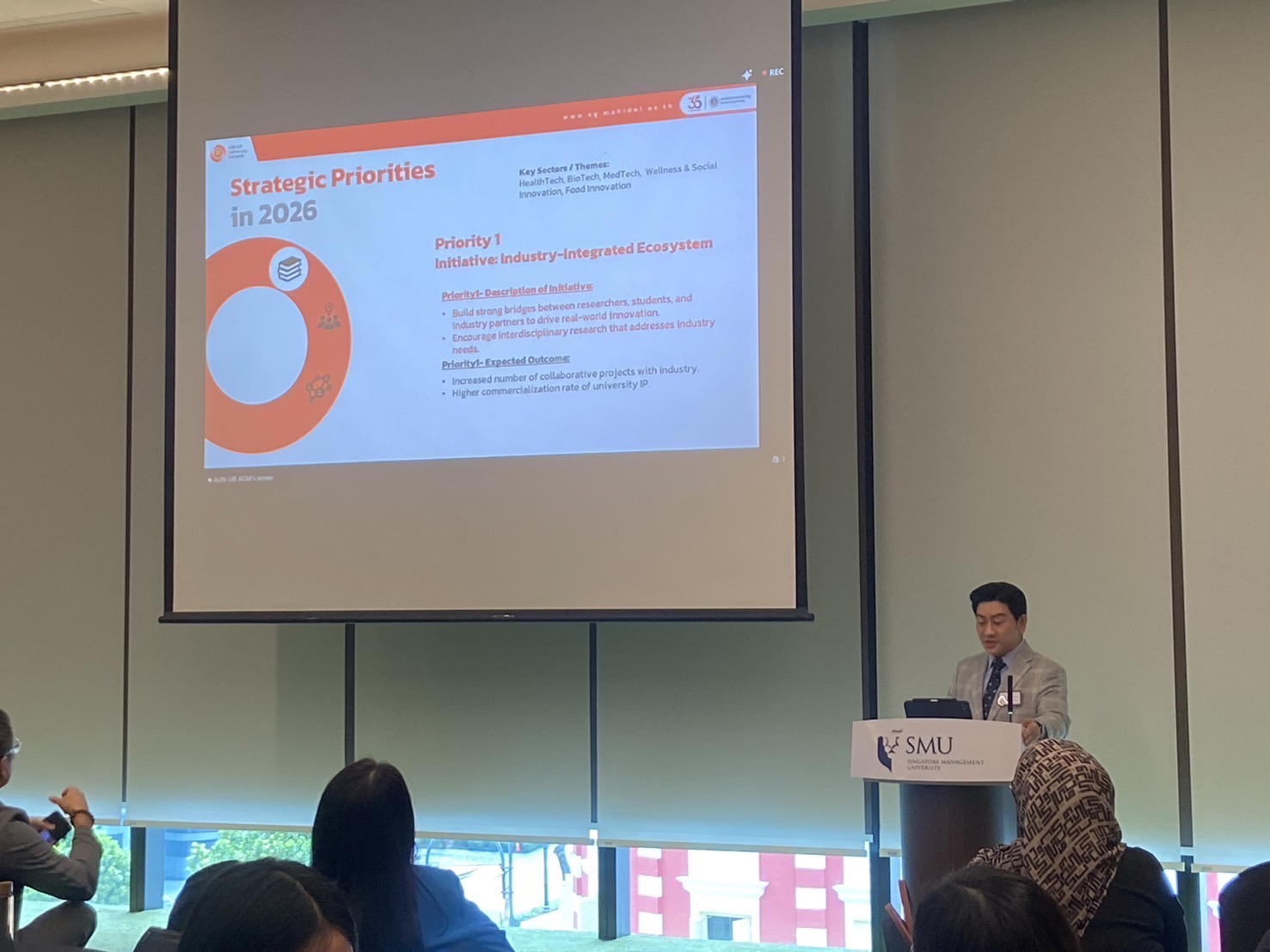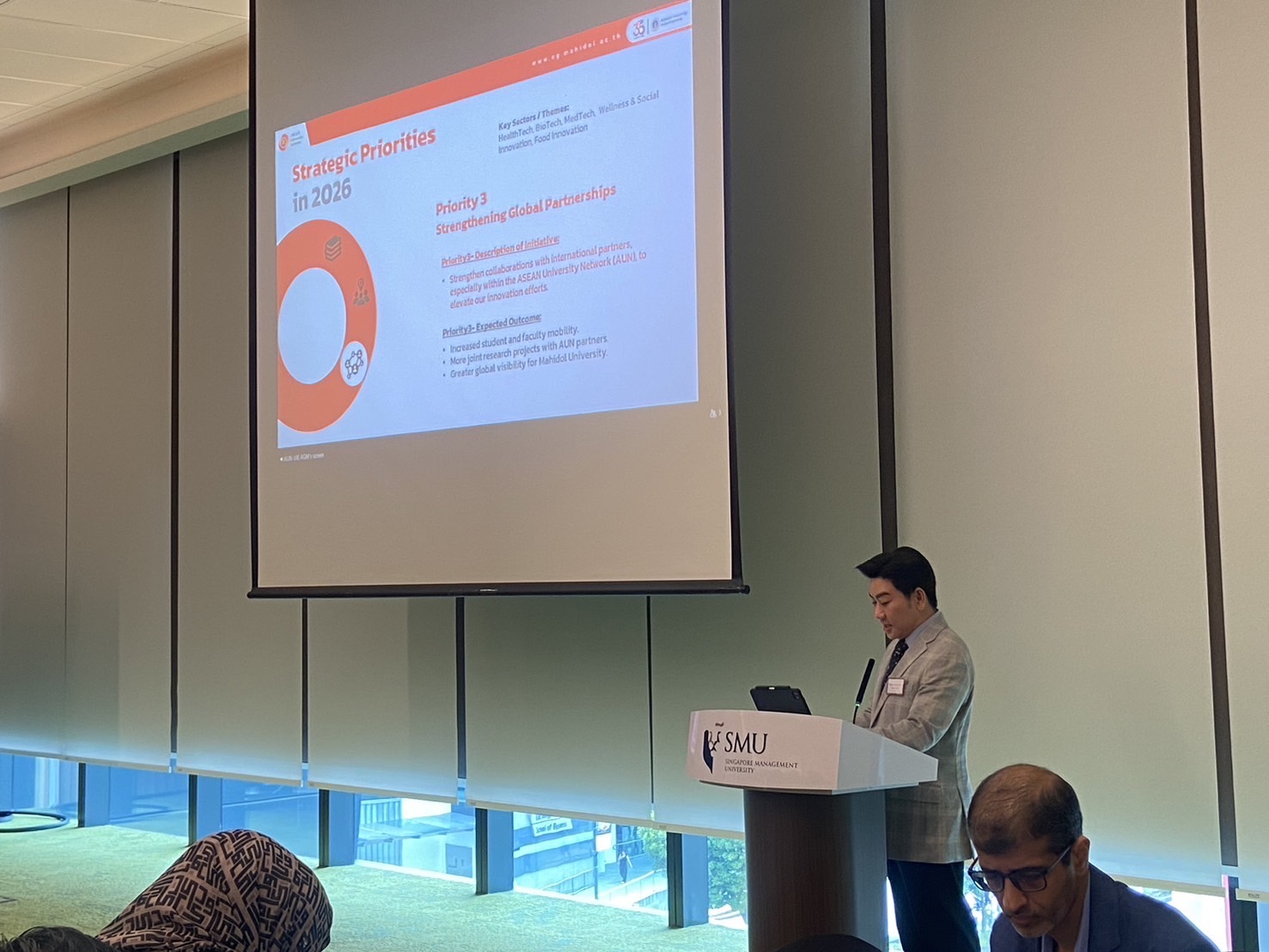 รองศาสตราจารย์ ดร.ธนภัทร์ วานิชานนท์ คณบดีคณะวิศวกรรมศาสตร์ ในฐานะตัวแทนอย่างเป็นทางการ (Official Representative) ของ AUN-UIE ได้ร่วมนำเสนอ Strategic Priorities in 2026 ของมหาวิทยาลัยมหิดล ถือเป็นการตอกย้ำถึงบทบาทที่สำคัญ และถือเป็นเวทีสำคัญที่เปิดโอกาสให้คณะวิศวกรรมศาสตร์ มหาวิทยาลัยมหิดล ได้แลกเปลี่ยนองค์ความรู้และนวัตกรรมกับสถาบันการศึกษาชั้นนำในภูมิภาคอาเซียน ซึ่งจะเป็นประโยชน์อย่างยิ่งในการพัฒนาศักยภาพด้านวิชาการและการสร้างสรรค์นวัตกรรมของมหาวิทยาลัยต่อไป