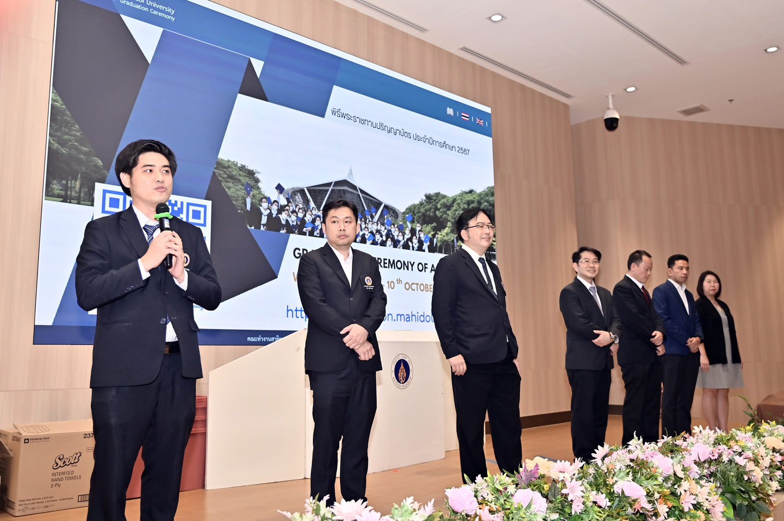 วันที่ 3 ตุลาคม 2568 คณะวิศวกรรมศาสตร์ มหาวิทยาลัยมหิดล จัดการฝึกซ้อมและพิธีแสดงความยินดีกับบัณฑิตระดับปริญญาตรี ประจำปีการศึกษา 2567 ณ ห้องประชุม ศ.นพ.ชัชวาล โอสถานนท์ ภายในงานมีคณาจารย์ ผู้บริหาร และบัณฑิตเข้าร่วมอย่างพร้อมเพรียง โดยบัณฑิตทุกคนแต่งกายด้วยชุดครุย หมวก และรองเท้าอย่างเป็นทางการให้เสมือนวันพิธีพระราชทานปริญญาบัตรจริง