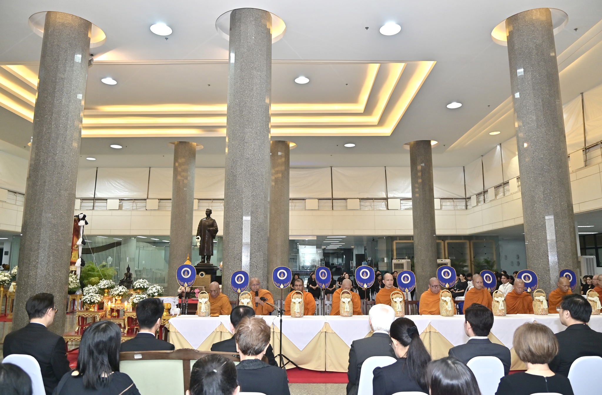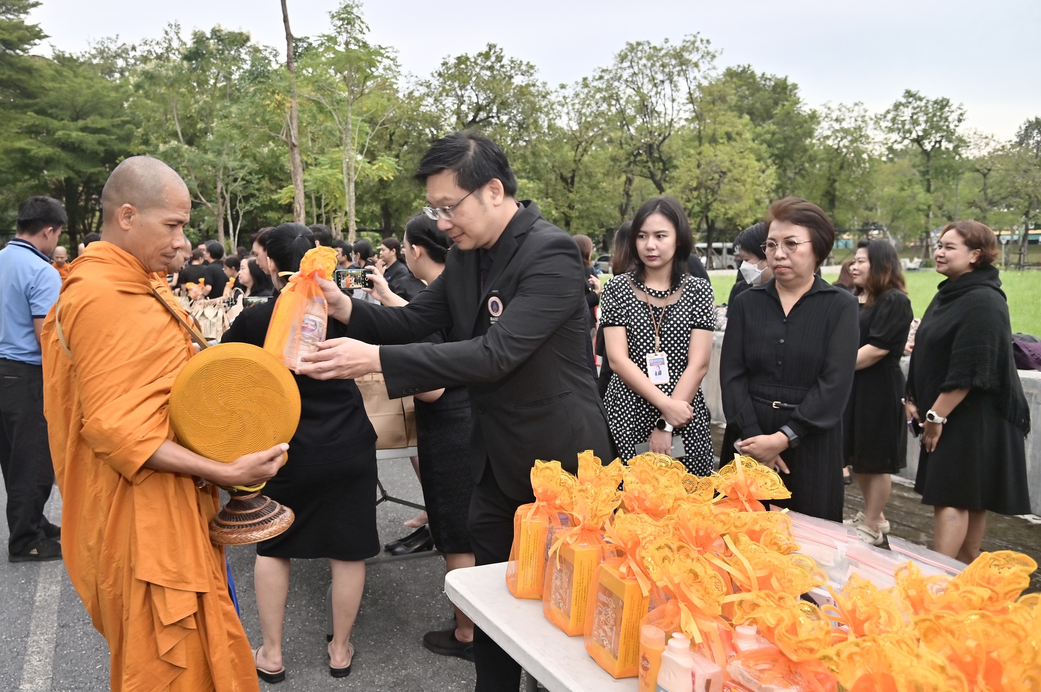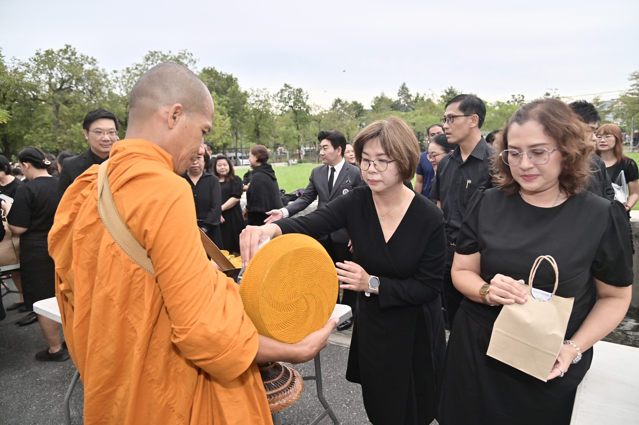 โดยพิธีจัดขึ้นตามกำหนดการของมหาวิทยาลัย โอกาสนี้ยังได้มีการจัดวางโต๊ะสิ่งของตักบาตรจากส่วนงานและหน่วยงานต่าง ๆ ภายในมหาวิทยาลัย ร่วมอนุโมทนาในกิจกรรมอันเป็นสาธุประเพณี พร้อมแต่งกายด้วยชุดสุภาพไว้ทุกข์ การเข้าร่วมพิธีครั้งนี้สะท้อนถึงความสำนึกในพระมหากรุณาธิคุณอันหาที่สุดมิได้และเป็นโอกาสให้บุคลากรมหาวิทยาลัยได้ร่วมกันถวายความอาลัยด้วยความพร้อมเพรียงและสมพระเกียรติ