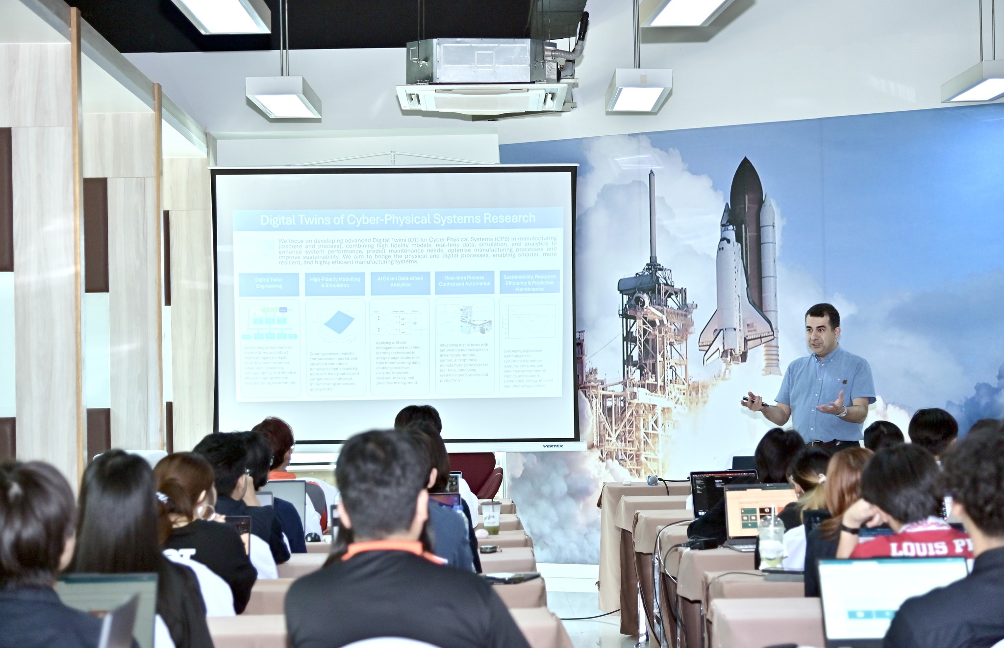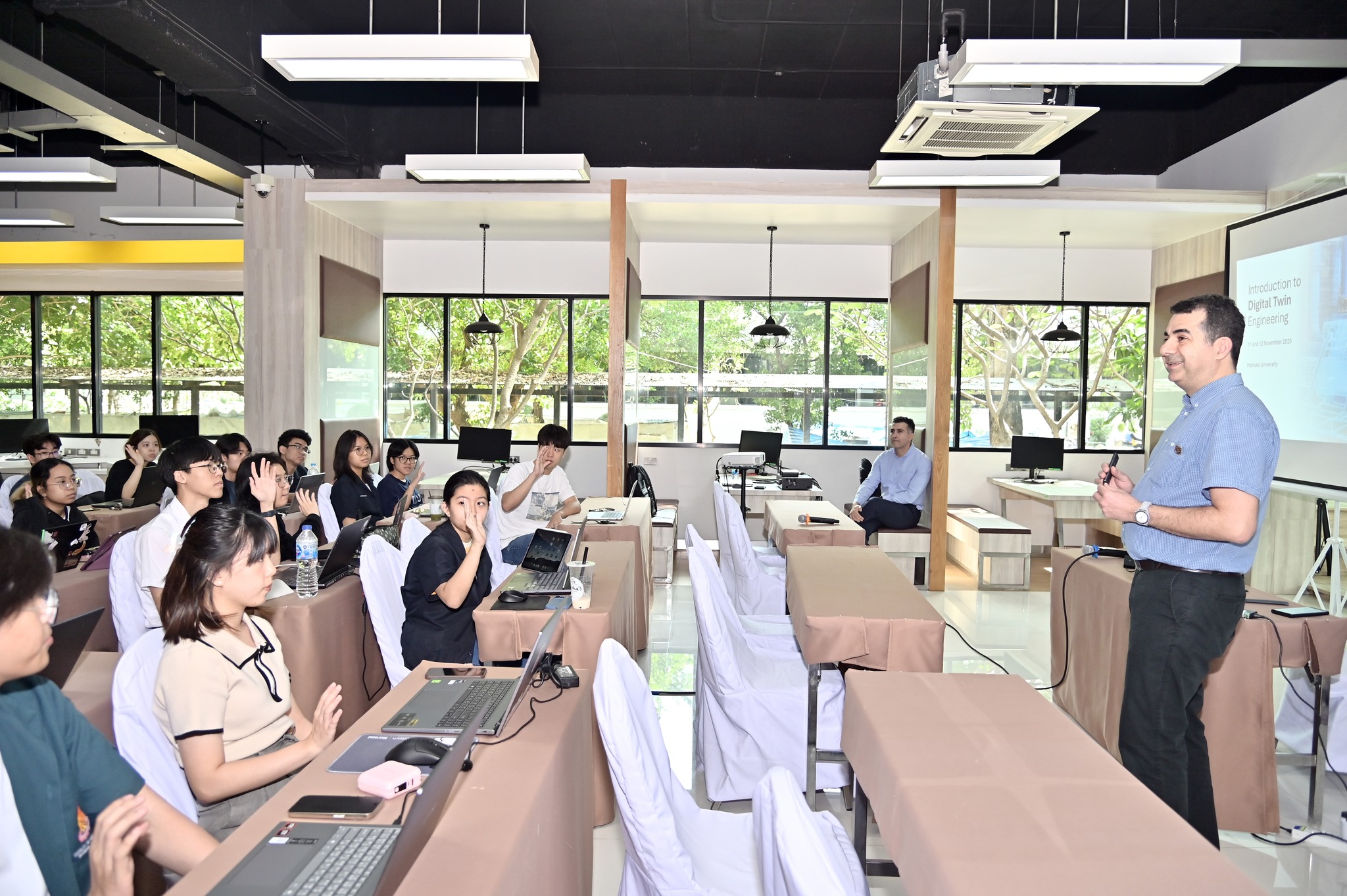 คณะผู้แทนจาก University of Sheffield ได้เข้าเยี่ยมชมห้องปฏิบัติการวิศวกรรมอุตสาหการ โดยมี อาจารย์ ดร.เอกชัย วารินศิริรักษ์ หัวหน้าห้องปฏิบัติการ Flex Lab (Flexible manufacturing system laboratory) ให้การต้อนรับและแนะนำห้องปฏิบัติการ จากนั้นคณะผู้แทนได้เข้าร่วมกิจกรรม Workshop ณ Innogineer Studio ในหัวข้อ “Digital Twin Concepts” เพื่อให้ความรู้เกี่ยวกับแนวคิด Digital Twin การติดตั้งและใช้งานซอฟต์แวร์จาก Siemens และหัวข้อ “Cyber-Physical Systems (CPSs) and Building Digital Twins” พร้อมการบรรยายพิเศษผ่านระบบออนไลน์โดย Dr. Steve Jones จากสหราชอาณาจักร ภายใต้โครงการ Siemens Connected Curriculum และกิจกรรม Hands-on Workshop