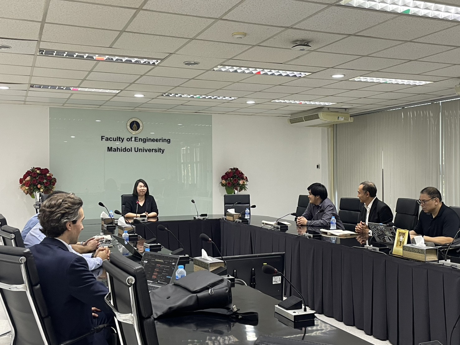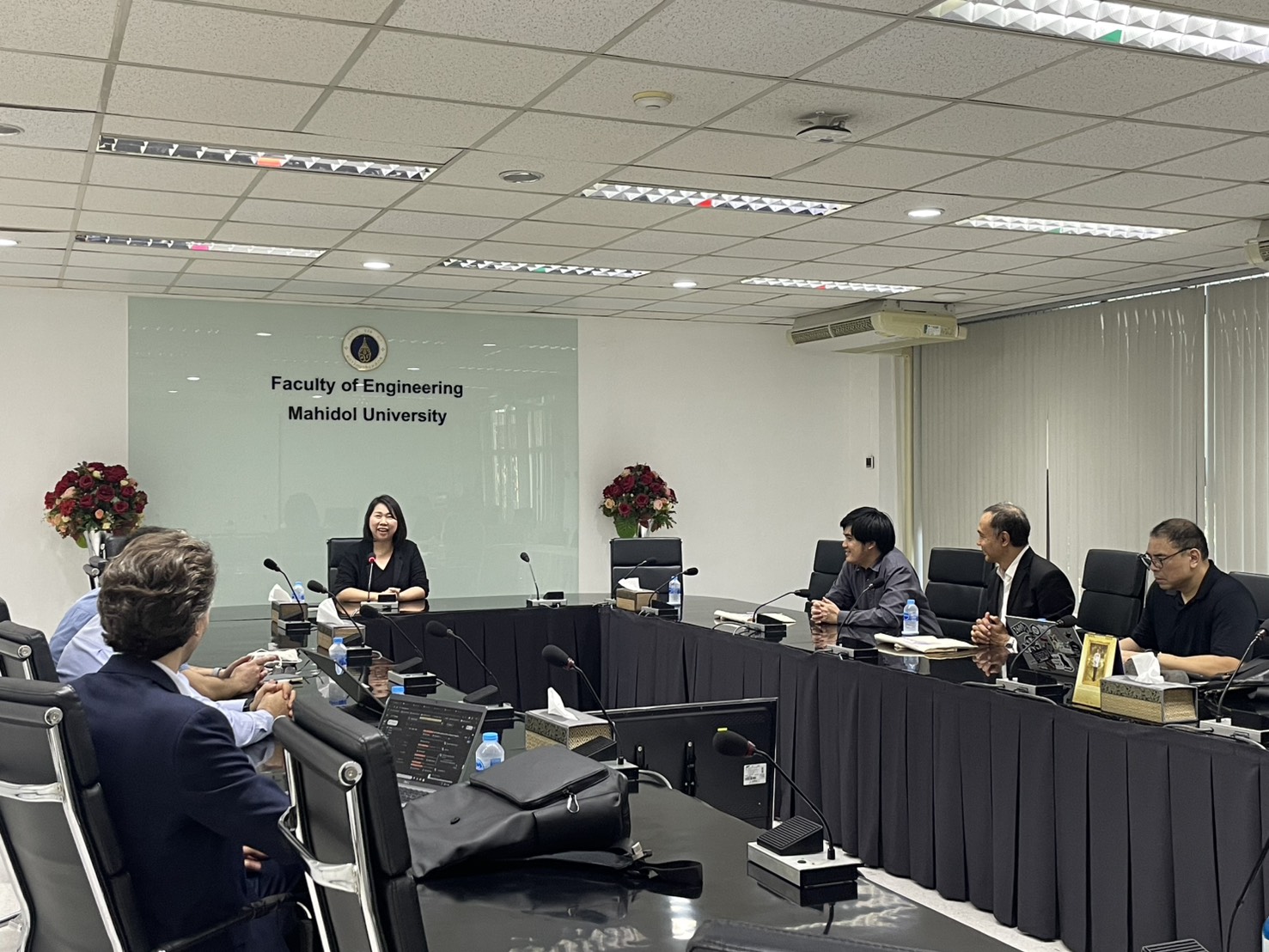 ระหว่างวันที่ 11 – 12 พฤศจิกายน 2568 คณะวิศวกรรมศาสตร์ มหาวิทยาลัยมหิดล นำโดย รองศาสตราจารย์ ดร.เบญจพร เลิศอนันตวงศ์ รองคณบดีฝ่ายวิจัยและบริการวิชาการ พร้อมด้วยคณาจารย์จากภาควิชาวิศวกรรมคอมพิวเตอร์ ได้แก่ ผู้ช่วยศาสตราจารย์ ดร.กลกรณ์ วงศ์ภาติกะเสรี หัวหน้าภาควิชาวิศวกรรมคอมพิวเตอร์ ศาสตราจารย์ ดร. ไพศาล มุณีสว่าง และ ดร. กรินทร์ สุมังคะโยธิน ให้การต้อนรับคณะผู้แทนจาก University of Sheffield สหราชอาณาจักร ประกอบด้วย Prof. Mo Zandi, Dr. Payam Soulatiantork, Mr. Vaughan McKee และ Miss Jessie Teo เพื่อแลกเปลี่ยนองค์ความรู้และพัฒนาความร่วมมือทางวิชาการ ณ ห้องประชุม R210 ชั้น 2 อาคาร 1 คณะวิศวกรรมศาสตร์ มหาวิทยาลัยมหิดล
