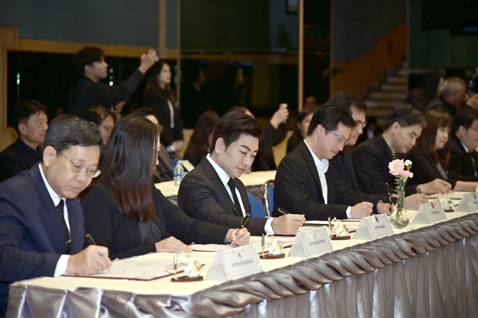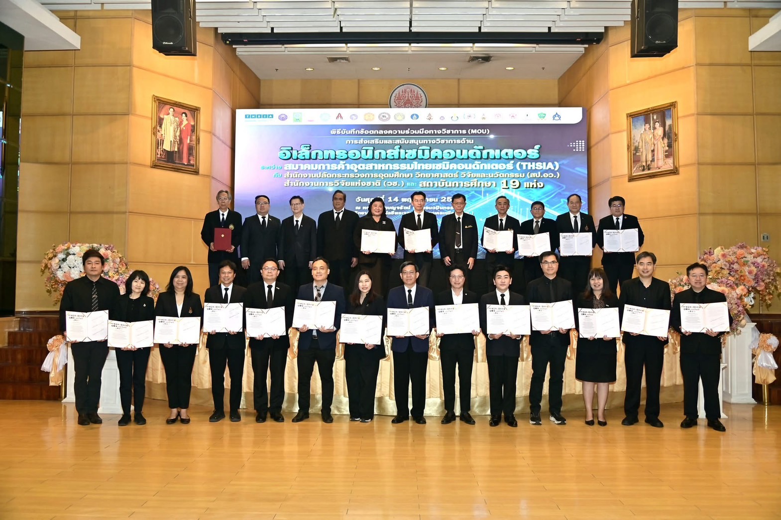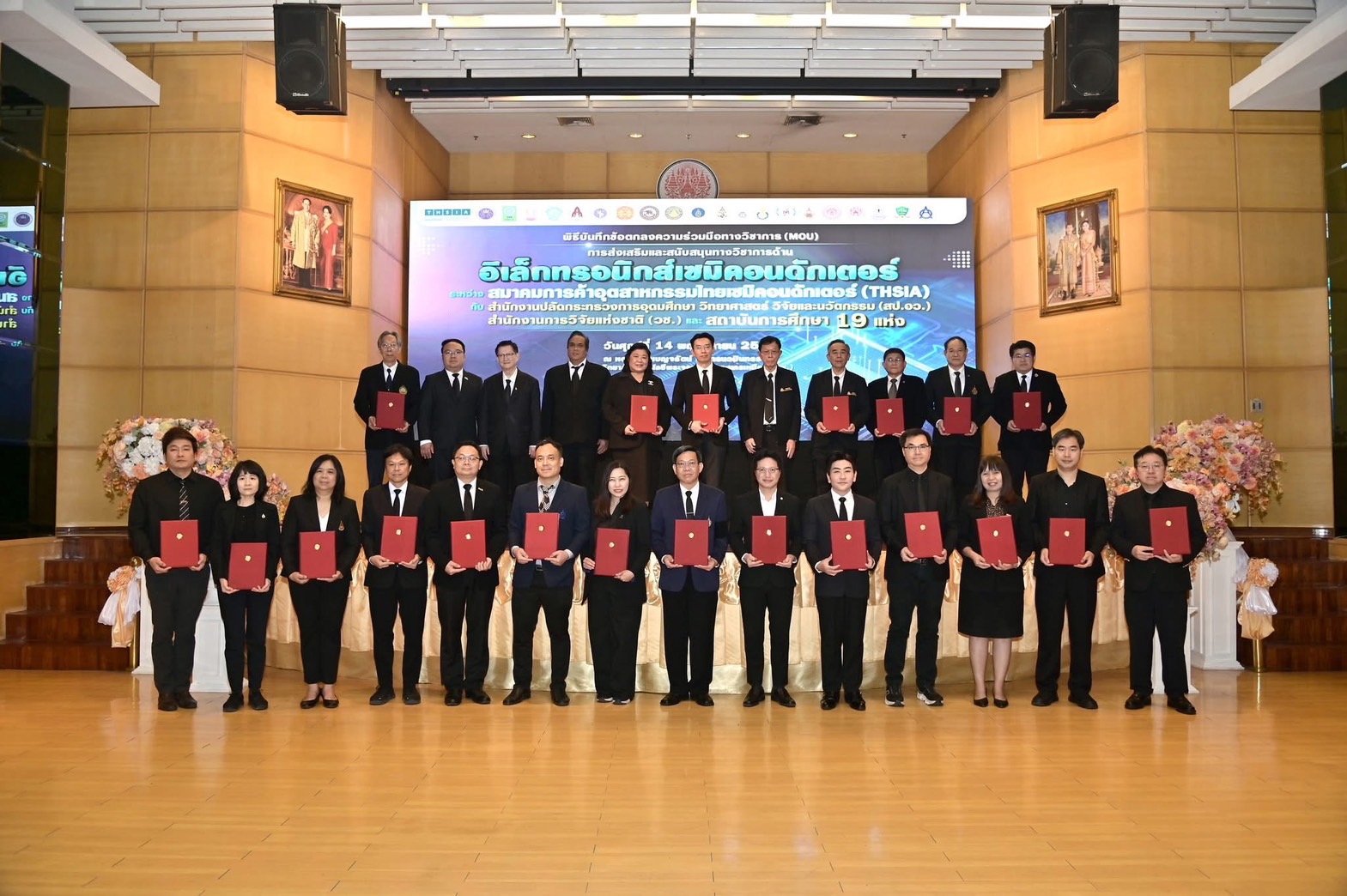 ในพิธีลงนามได้รับเกียรติจาก ศาสตราจารย์ ดร.ธีรวุฒิ บุณยโสภณ นายกสภา มหาวิทยาลัยเทคโนโลยีพระจอมเกล้าพระนครเหนือ (มจพ.) กล่าวต้อนรับผู้ร่วมงาน พร้อมด้วย คุณวิรัตน์ ศรีอมรกิจกุล นายกสมาคมการค้าอุตสาหกรรมไทยเซมิคอนดักเตอร์ กล่าวขอบคุณ และก่อนเริ่มพิธีลงนาม ศาสตราจารย์ ดร.ศุภชัย ปทุมนากุล ปลัดกระทรวงการอุดมศึกษา วิทยาศาสตร์ วิจัยและนวัตกรรม ได้ขึ้นกล่าวถึงความสำคัญของความร่วมมือในอุตสาหกรรมไมโครอิเล็กทรอนิกส์ ตลอดจนเป็นประธานในพิธีงนามในบันทึกข้อตกลงความร่วมมือฯ ภายในพิธีลงนามฯ ยังได้รับเกียรติจาก ดร.วิภารัตน์ ดีอ่อง ผู้อำนวยการสำนักงานการวิจัยแห่งชาติ ลงนามร่วมกับ ผู้บริหาร 19 สถาบันการศึกษา