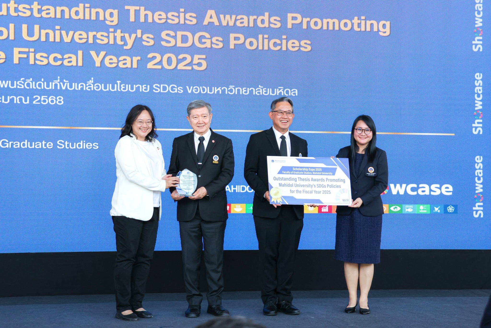 ในโอกาสนี้ รองศาสตราจารย์ ดร.ตระการ ประภัสพงษา ประธานหลักสูตรปรัชญาดุษฎีบัณฑิต สาขาวิชาวิศวกรรมสิ่งแวดล้อมและทรัพยากรน้ำ (หลักสูตรนานาชาติ) คณะวิศวกรรมศาสตร์ มหาวิทยาลัยมหิดล ได้เข้าร่วมนำเสนอผลงานวิจัย และเข้ารับมอบทุนและรางวัลด้าน SDGs ประจำปีงบประมาณ 2568 เพื่อยกย่องผลงานที่สอดคล้องกับนโยบายการพัฒนาอย่างยั่งยืนของมหาวิทยาลัย