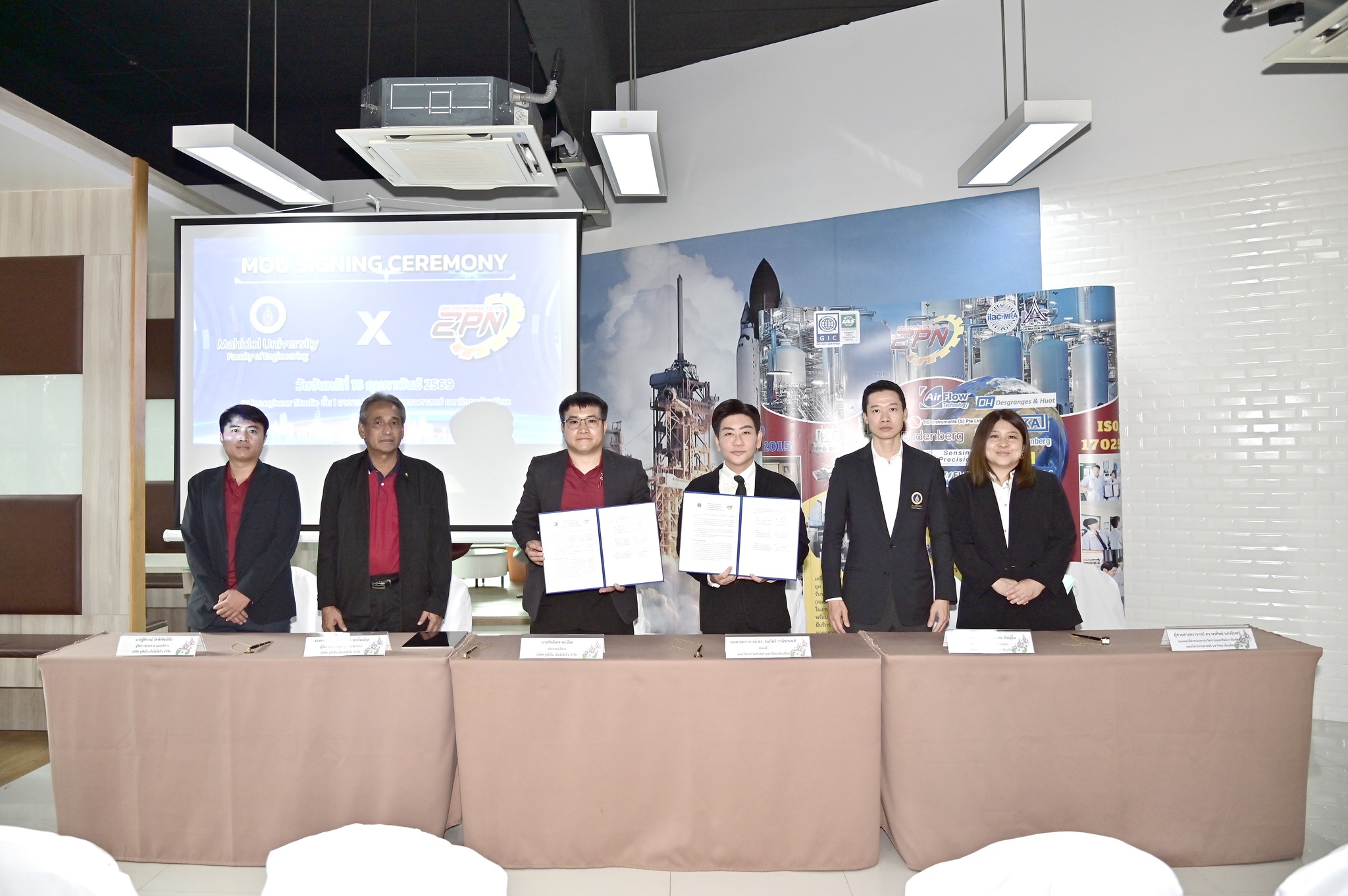 วันที่ 16 กุมภาพันธ์ 2569 คณะวิศวกรรมศาสตร์ มหาวิทยาลัยมหิดล จัดพิธีลงนามบันทึกข้อตกลงความร่วมมือทางวิชาการ ร่วมกับ บริษัท ทูพีเอ็น เอ็นจิเนียริ่ง จำกัด เพื่อส่งเสริมความร่วมมือด้านวิชาการ และพัฒนาหลักสูตรการเรียนการสอนทางด้านวิศวกรรมศาสตร์ให้สอดคล้องกับภาคอุตสาหกรรม โดย รองศาสตราจารย์ ดร.ธนภัทร์ วานิชานนท์ คณบดีคณะวิศวกรรมศาสตร์ ร่วมลงนามในบันทึกข้อตกลงความร่วมมือทางวิชาการ กับคุณกิตติเดช พาน้อย โดยมี ผู้ช่วยศาสตราจารย์ ดร.ก่อพร พันธุ์ยิ้ม รองคณบดีฝ่ายบริหารและการคลัง และผู้ช่วยศาสตราจารย์ ดร.พรทิพย์ แก่งอินทร์ รองคณบดีฝ่ายบ่มเพาะนวัตกรรมและศิษย์เก่าสัมพันธ์ ร่วมเป็นสักขีพยานฝ่ายคณะวิศวกรรมศาสตร์ ขณะที่ฝ่าย บริษัท ทูพีเอ็น เอ็นจิเนียริ่ง จำกัด มี รองศาสตราจารย์ชัชวาล พรพัฒน์กุล ผู้จัดการระบบคุณภาพและวิชาการ และคุณฐิติกรณ์ โตพิพัฒน์ชัย ผู้จัดการฝ่ายขายและบริการ ร่วมเป็นสักขีพยาน ณ ห้อง Innogineer Studio อาคาร 3 คณะวิศวกรรมศาสตร์ มหาวิทยาลัยมหิดล ซึ่งนับเป็นอีกก้าวสำคัญในการเชื่อมโยงความร่วมมือระหว่างสถาบันการศึกษาและภาคเอกชน เพื่อพัฒนาศักยภาพกำลังคนด้านวิศวกรรมศาสตร์ของประเทศอย่างยั่งยืนต่อไป
