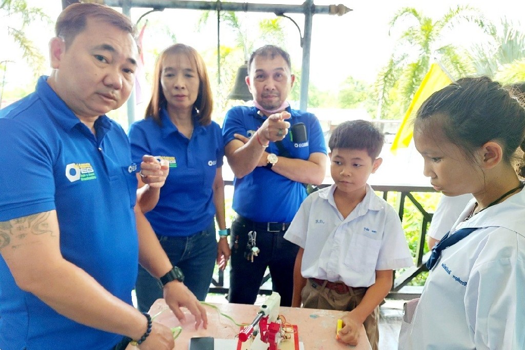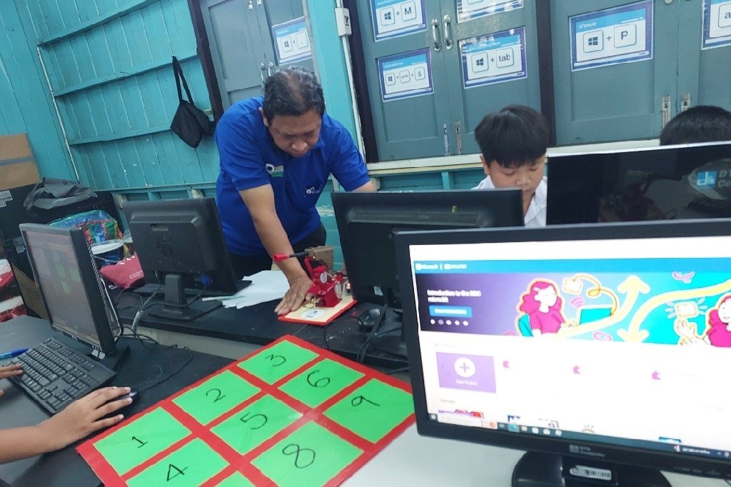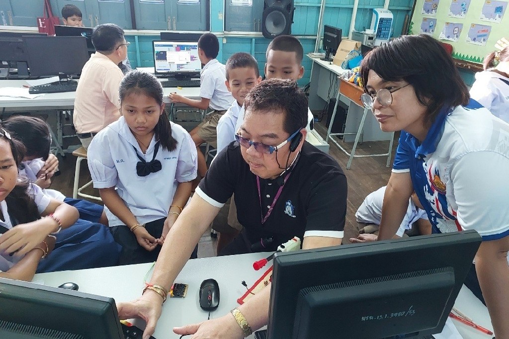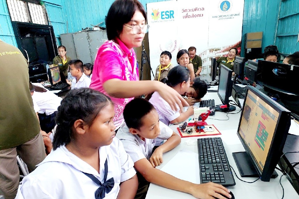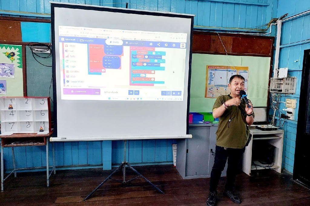 On June 5-6, 2024, the Faculty of Engineering, Mahidol University, led by the Engineering Department for Social Responsibility, organized activities to develop technology processes, coding skills, and microbit control at Ban Hom Kret School. This initiative was headed by Asst. Prof. Dr. Krissada Asavaskulkeit, Deputy Dean for Academic Services and Policy Advocacy, under the project, "Improving the Quality of School Education in Microbit-Controlled Coding Skills in the Lower Central Region." The event featured Lecturer Worawit Isarangkul Na Ayutthaya, Dr. Supree Buranakanit, and Lecturer. Chaichanat Chansillapakul, with a team of experts from departments including Electrical Engineering, Biomedical Engineering, Mechanical Engineering, Facility and Safety Management, Innovation Development and Incubation, and Public Relations. These professionals served as assistant lecturers. The primary goal of this project is to enhance the knowledge, abilities and skills of the students, to develop their academic potential, professional skills, life skills, along with morals and ethics. This initiative aims to equip Thai youth with the coding skills necessary to control basic computing devices.