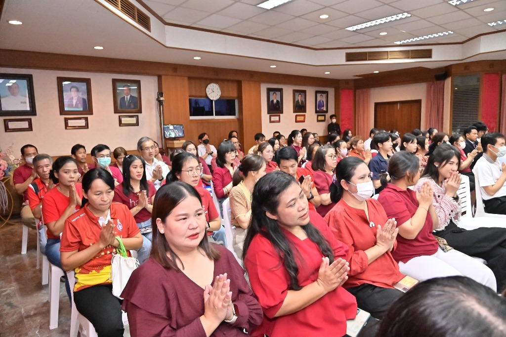 The morning events included a worship ceremony of sacred objects within the university, a Buddhist ritual, the offering of food to monks, and an award ceremony honoring lecturers who were recognized as exemplary in three fields: Science and Technology, Social Sciences, and Social Service. Additionally, certificates were awarded to athletes who won medals at the 40th National University Personnel Sports Competition "Angkaew Games 2024." In the afternoon, the Dean led an activity titled "MUEG Join Hands to Make a Beautiful Home," which involved a building walk to collect garbage, aimed at keeping the environment clean and tidy.