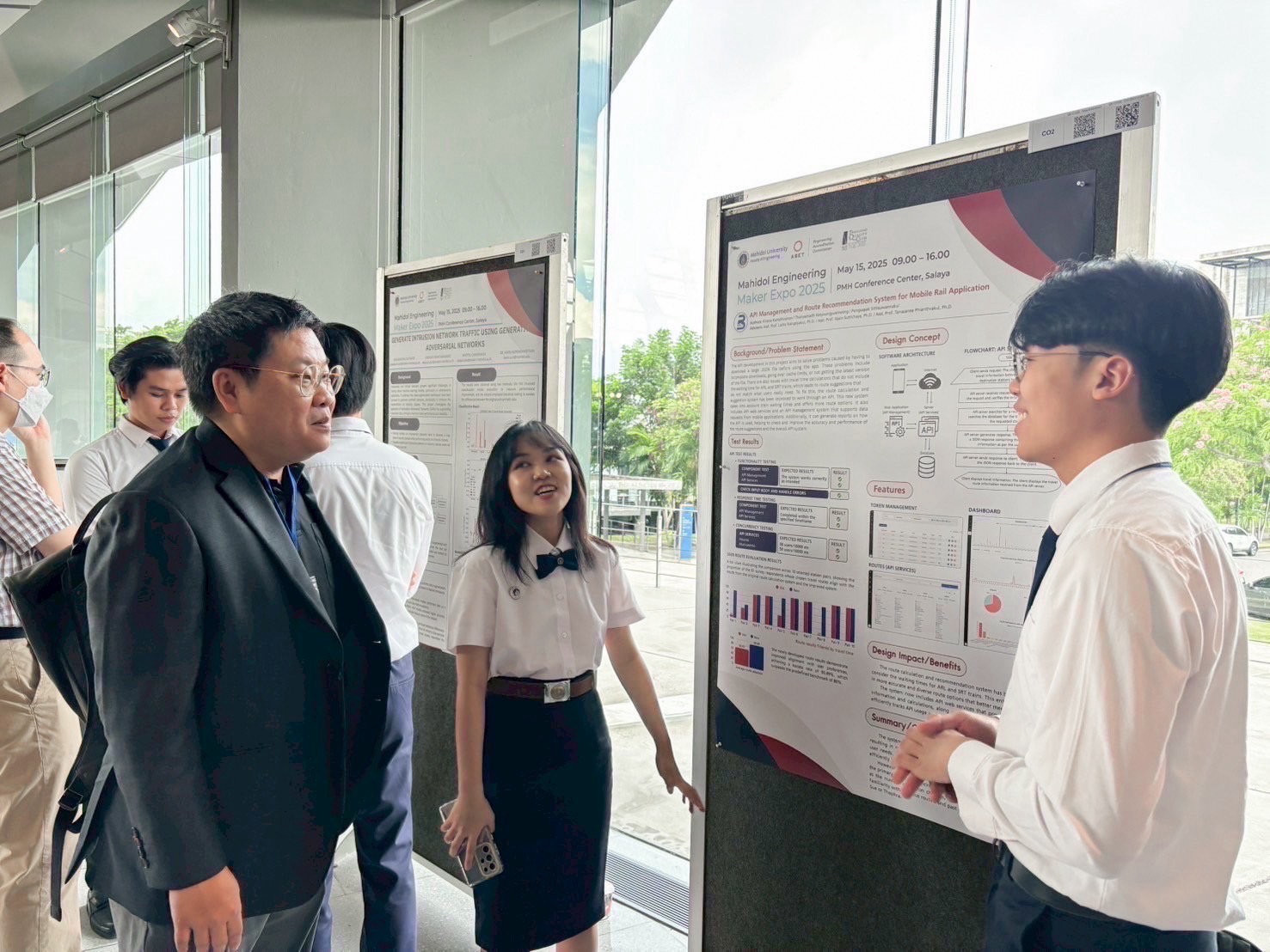 The Faculty of Engineering, Mahidol University, would like to thank the alumni of the Faculty of Engineering who joined the “Mahidol Engineering Maker Expo 2025 Capstone Project Presentation” and the “Engineering Perspectives and Industry” project in 2025 and who shared their experiences of working in the industrial sector, provided advice on student projects, and viewed the work of 4th-year students at the Prince Mahidol Hall, Mahidol University on May 15, 2025.
