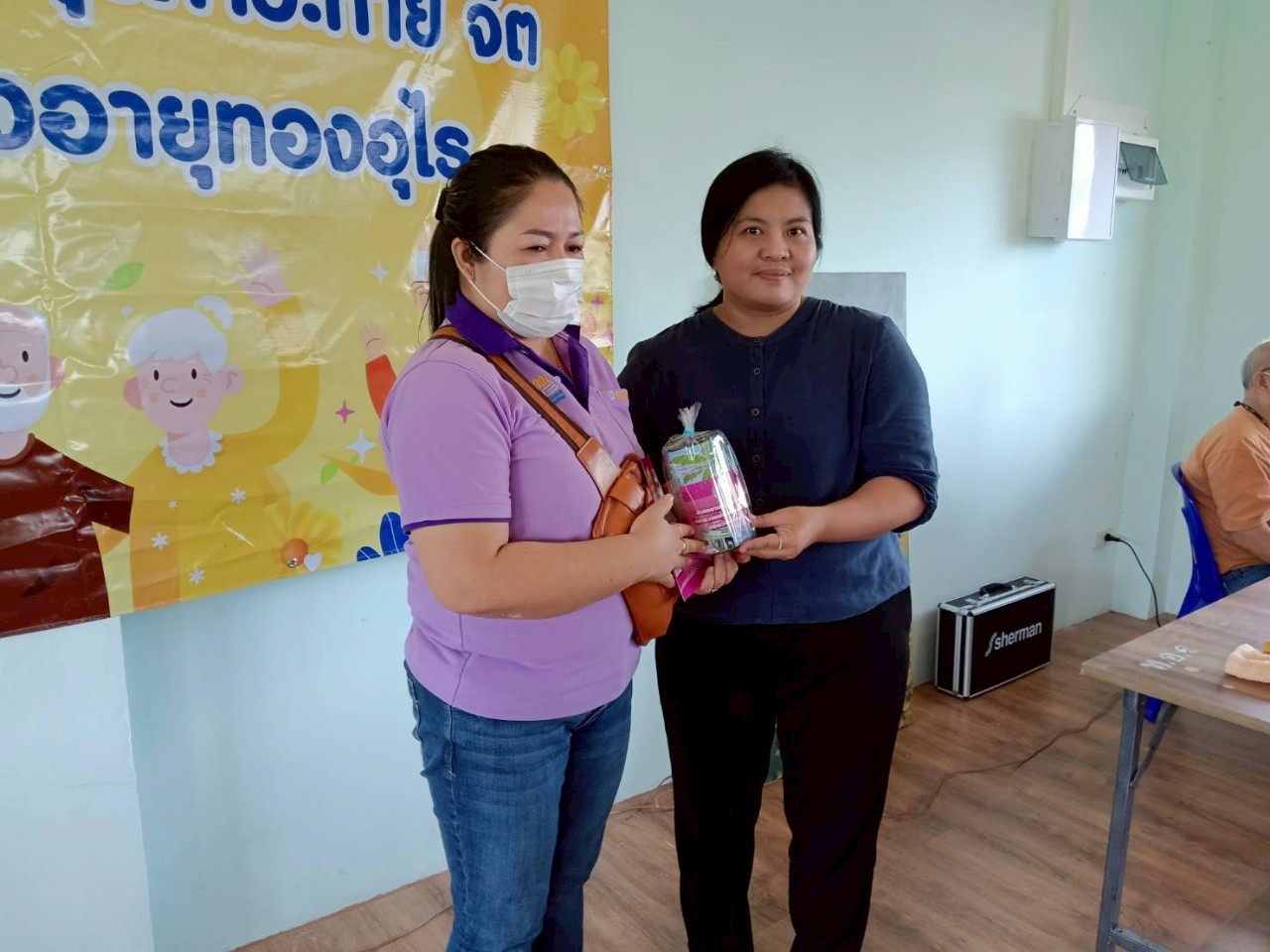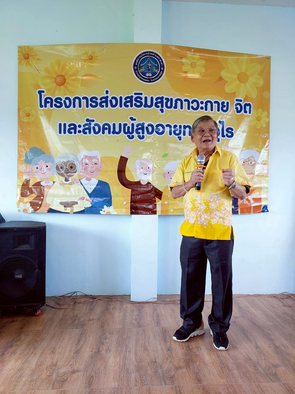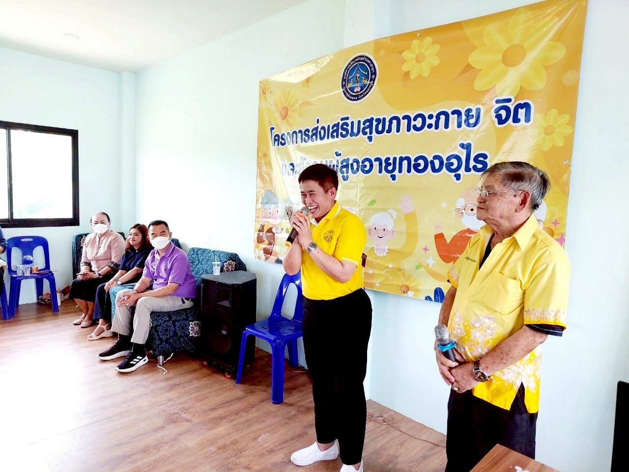 Members of the Department of Biomedical Engineering and the Department of Electrical Engineering attended the meeting. Also at the event were Mr. Praseart Im-eabrat, President of the Thongurai Elderly Club, Salaya, Mrs. Kittiya Saisaaad, Director of the Office of Social Development and Human Security, Nakhon Pathom Province, Ms. Thipawan Kham-ard, Mayor of Salaya Subdistrict Administrative Organization, and Dr. Wiranyupa Na Songkhla, President of the Luang Ta Noi Foundation, at the Thongurai Elderly Club, Salaya.