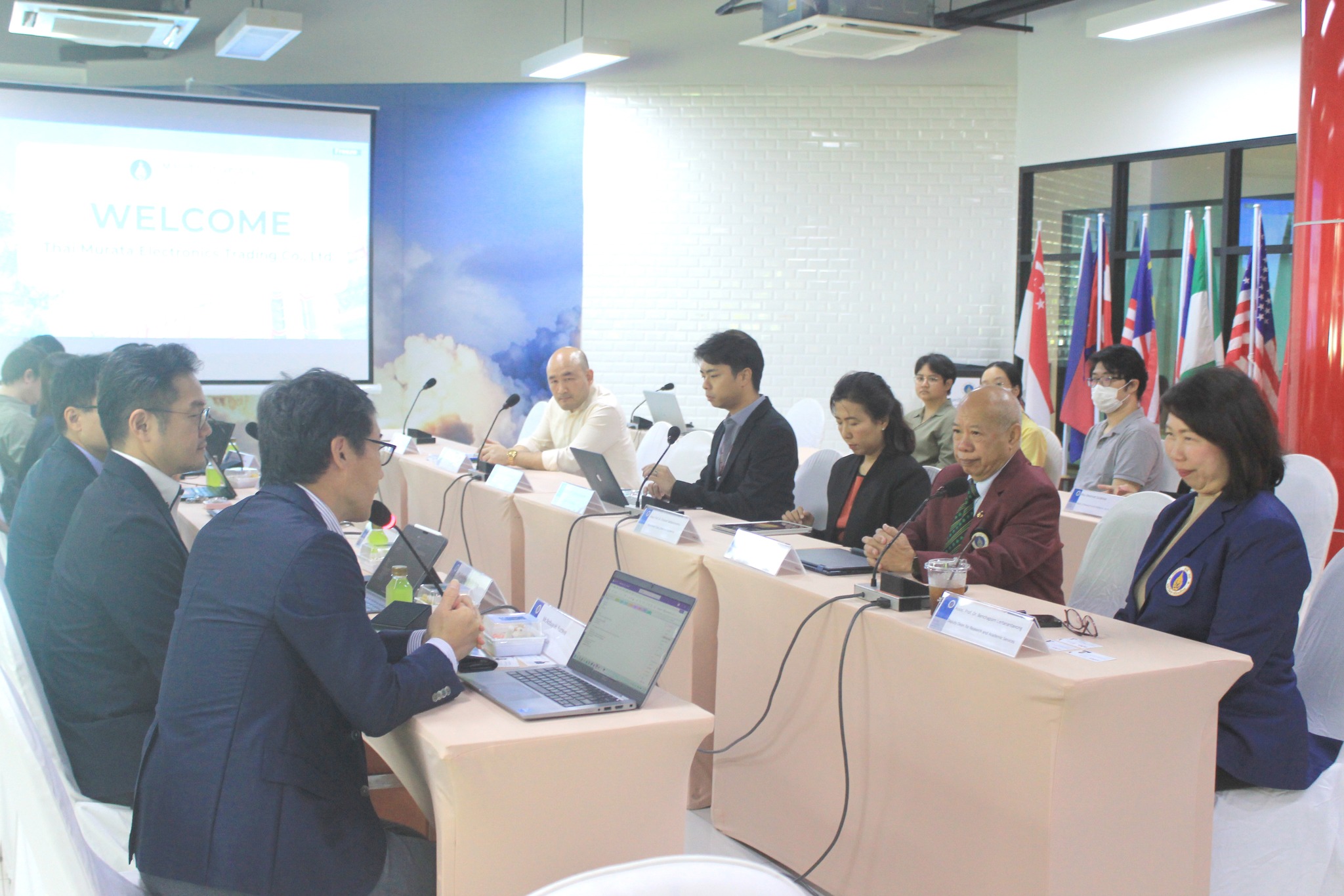 On June 17, 2025, the Faculty of Engineering, Mahidol University, led by Associate Professor Dr. Benchaporn Lertanantawong, Deputy Dean for Research and Academic Services and Assistant Professor Dr. Chamras Promptmas, Advisor to the Dean for Organizational Mission Support, along with department heads and faculty members, welcomed executives from Thai Murata Electronics Trading, Ltd —a global leader in electronics—for a co-research collaboration meeting. The session took place at the Innogineer Studio, 1st floor, Building 3, Faculty of Engineering, Mahidol University, Salaya Campus.
