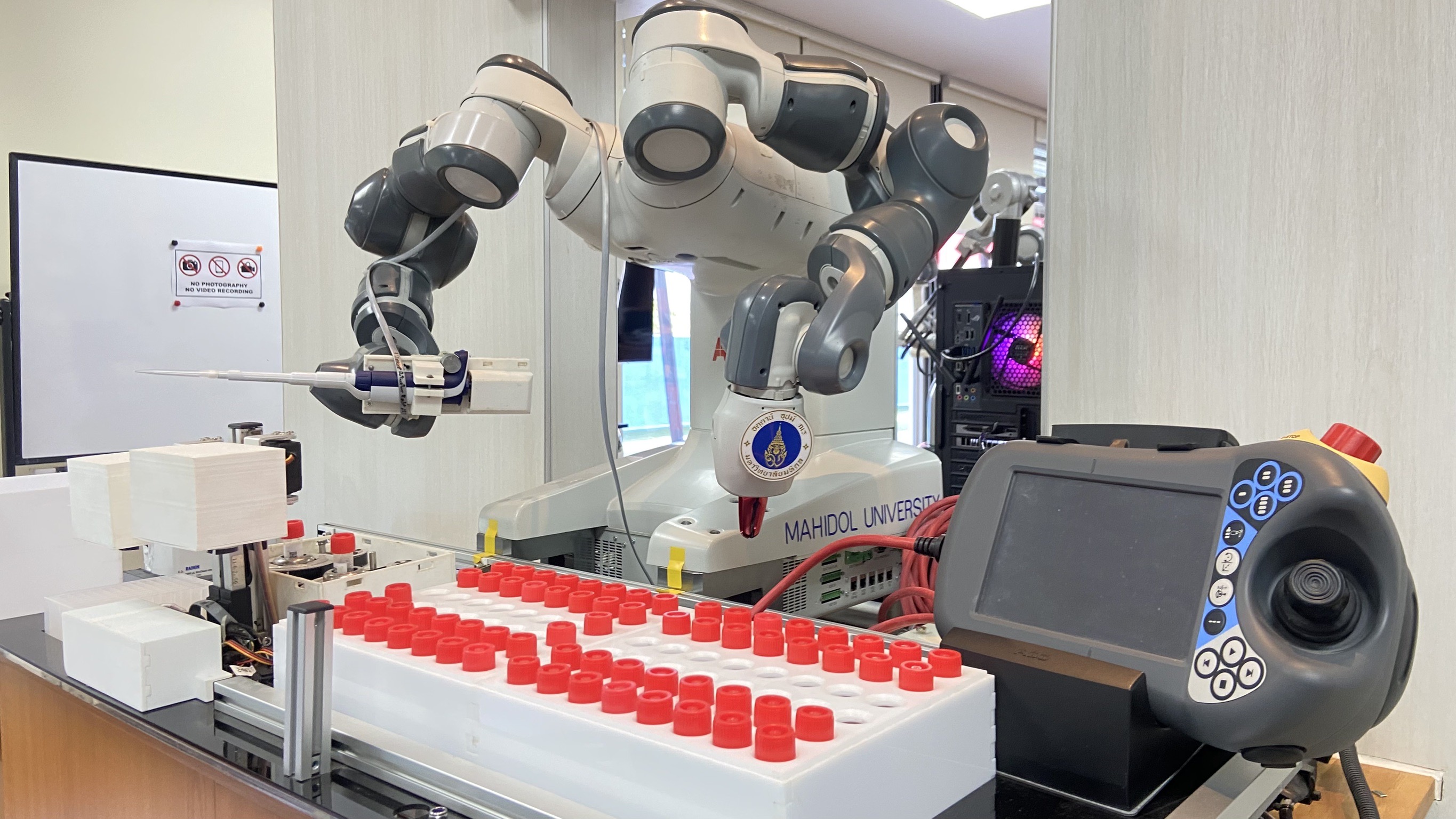 The event began with welcome remarks by Assistant Professor Dr. Korporn Panyim, Deputy Dean for Administration and Finance, in Room R231, 2nd Floor, Building 1. Following this, Mahidol Engineering staff guided the guests on a tour of the facilities at the Faculty. These included the Center for Biomedical and Robotics Technology (BART LAB), recognized for its pioneering work in medical robotics, and the Brain-Computer Interface Laboratory (BCI LAB), which focuses on developing technology that connects the human brain to computer systems for future applications.