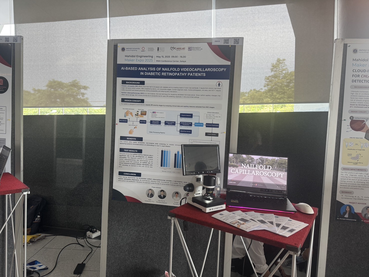 As with a number of projects at the Faculty of Engineering, the original stimulus comes from outside: either a suggestion, an idea for a project or, increasingly common, a request from an academic for engineering help. In this case, a physician at Siriraj Hospital, contacted Dr. Phornphop Naiyanetr of the CardioArt lab of the Biomedical Department at the Faculty, for help with a diagnosis problem: using Artificial Intelligence (AI) when checking capillaries of patient's toes to see if there has been any deterioration of blood flow. He liaised with Dr. Titipat Achakulvisit who supervises the BioDat Lab (Biomedical and data). This lab, that collaborates with hospitals and the business sector, focuses on building tools using machine learning and data science to solve real world applications.