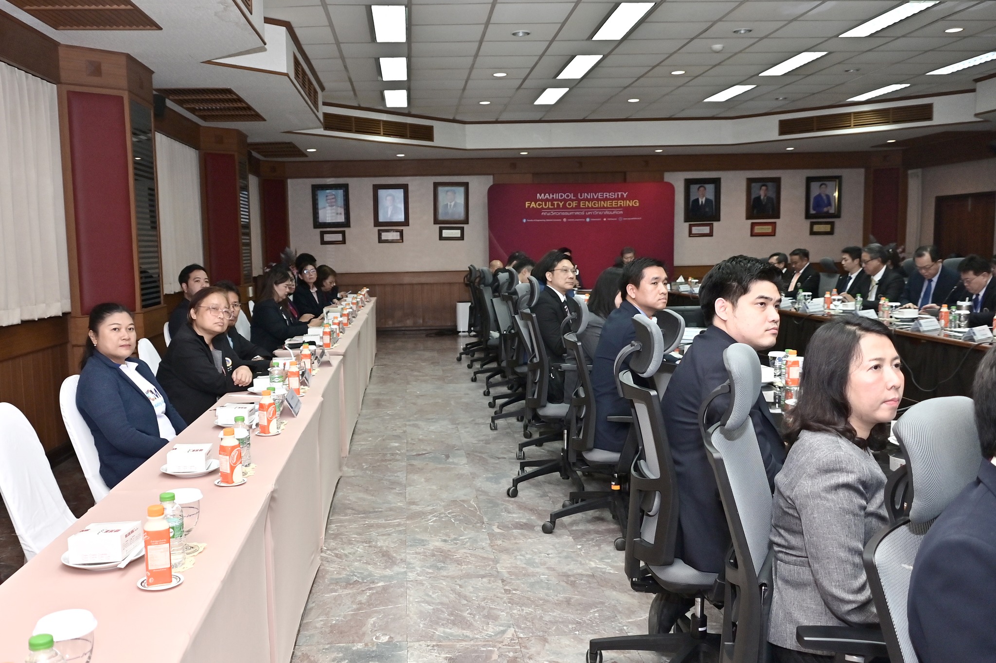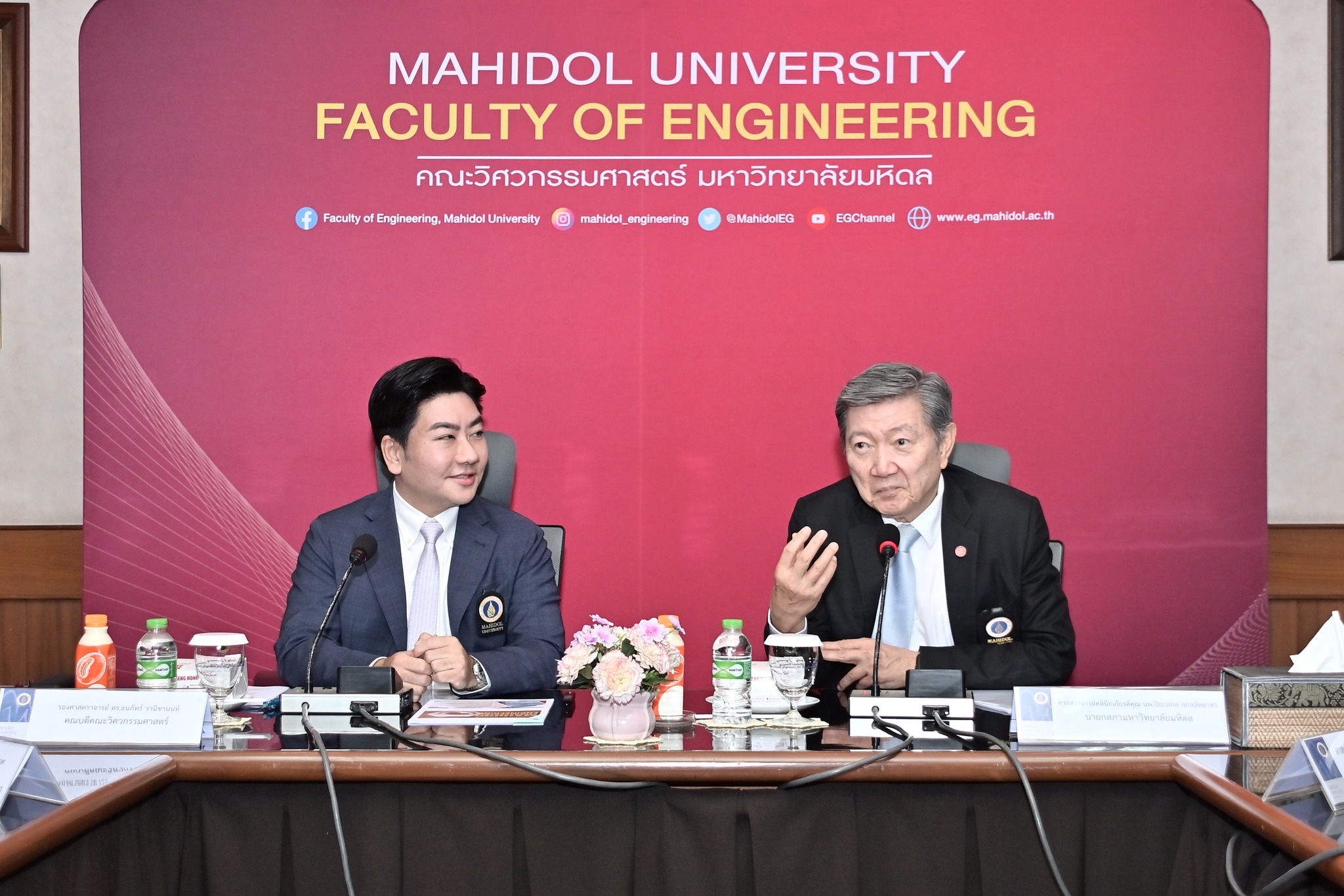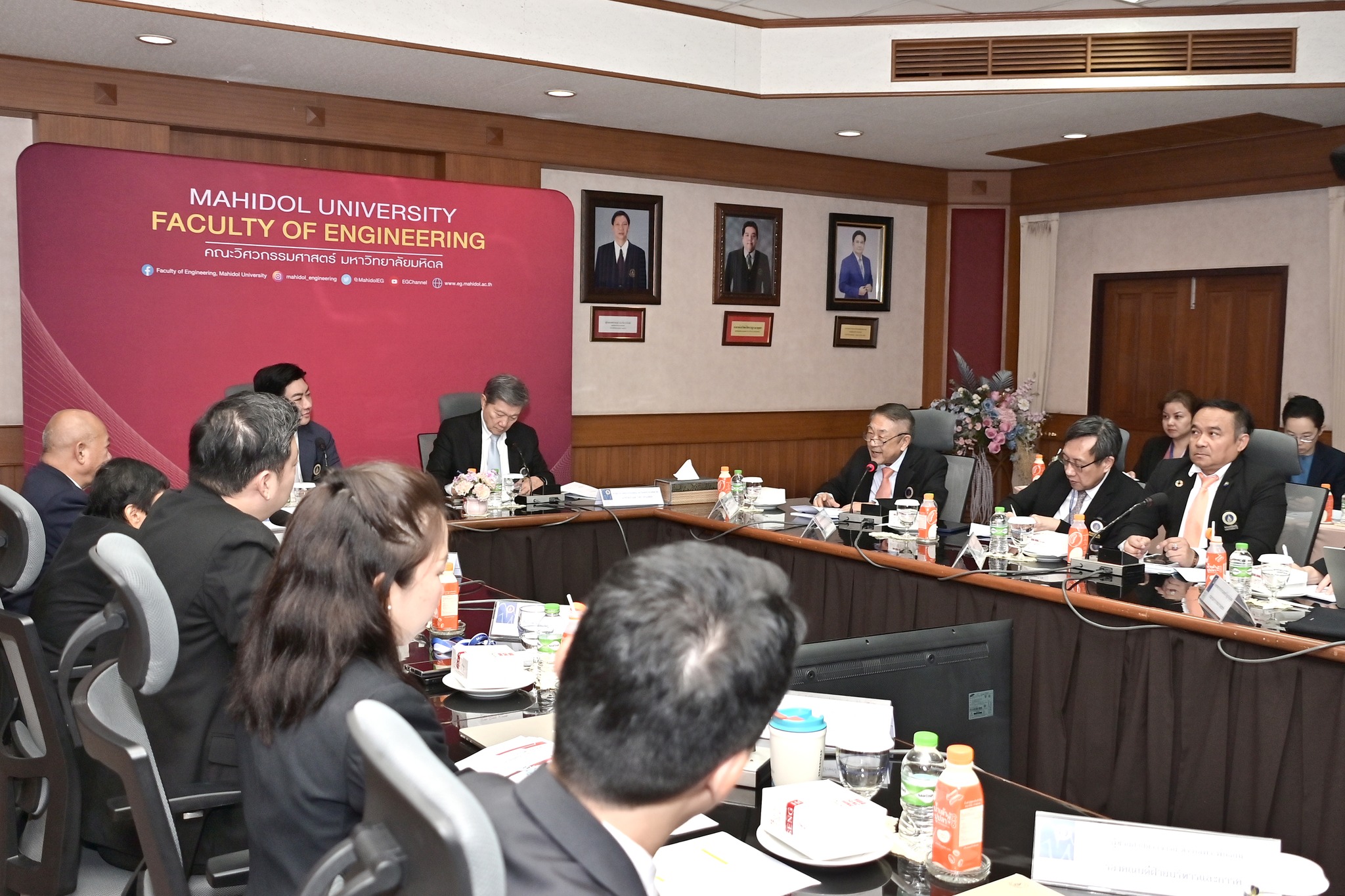 On July 18, 2025, Associate Professor Dr. Thanapat Wanichanon, Dean of the Faculty of Engineering, Mahidol University, welcomed Clinical Professor Emeritus Piyasakol Sakolsatayadorn, President of the Mahidol University Council, along with fellow council members as part of the 4th University Council Visit of 2025. The executive team of the Faculty and academic staff also attended the meeting.