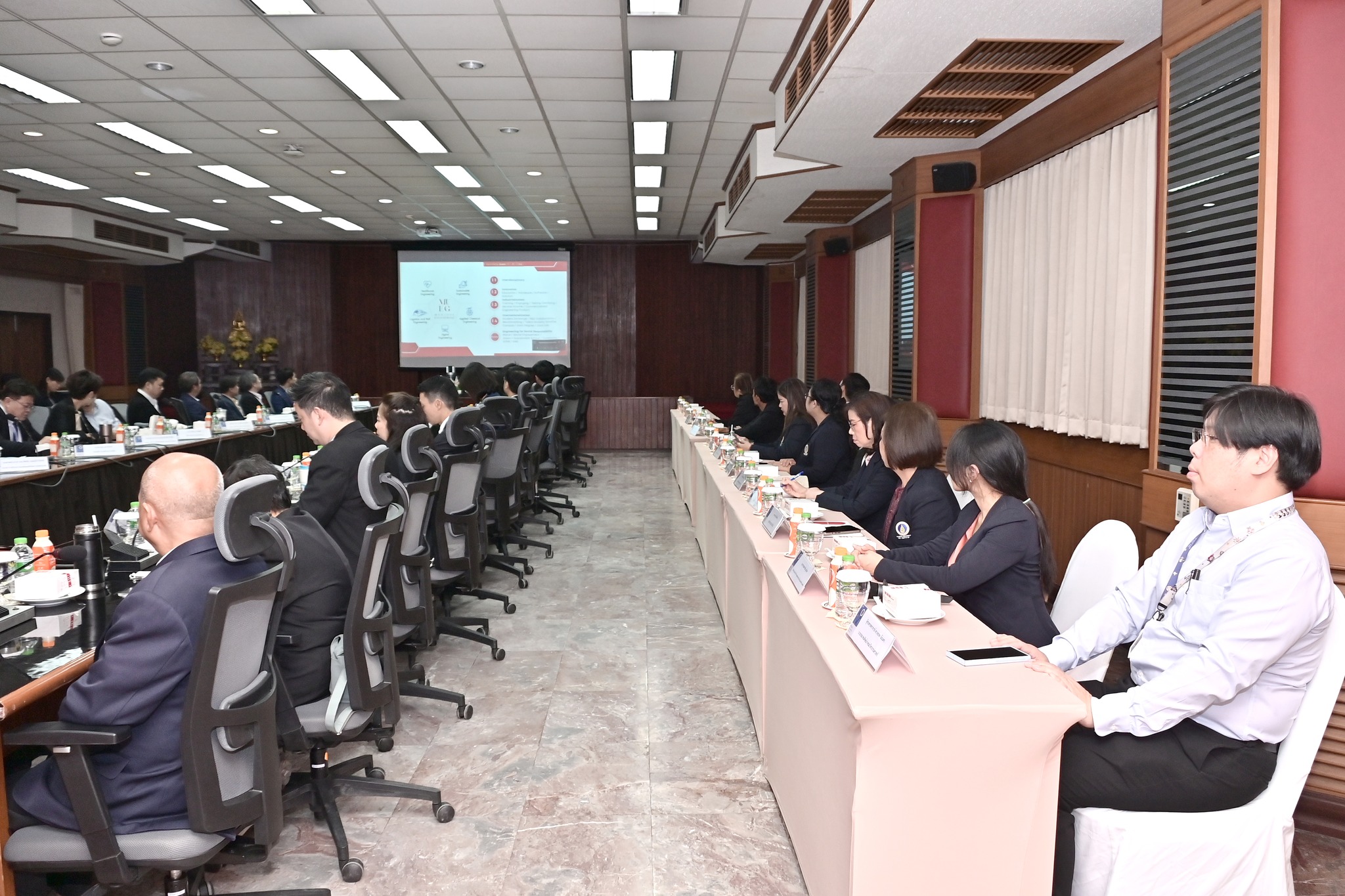 The event was held in Meeting Room R114 on the 1st floor of Building 1. It featured a comprehensive presentation concerning the progress of the Faculty in academic development, research, and public service. Discussions also covered key updates in infrastructure improvements, human resource development, The meeting also included information on national and international collaborations: reflecting the commitment of the Faculty to becoming a leading school of engineering in Thailand and beyond.
