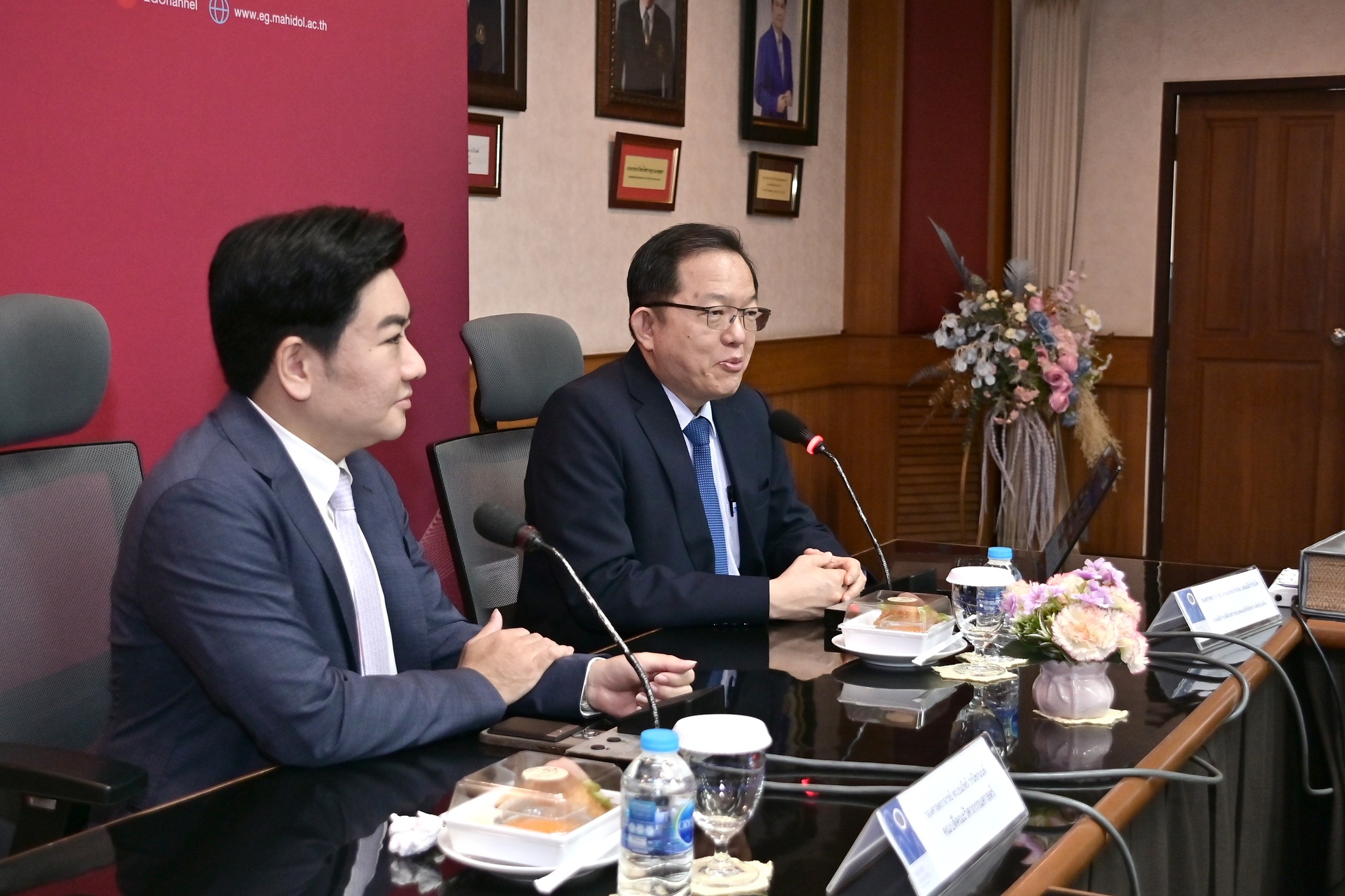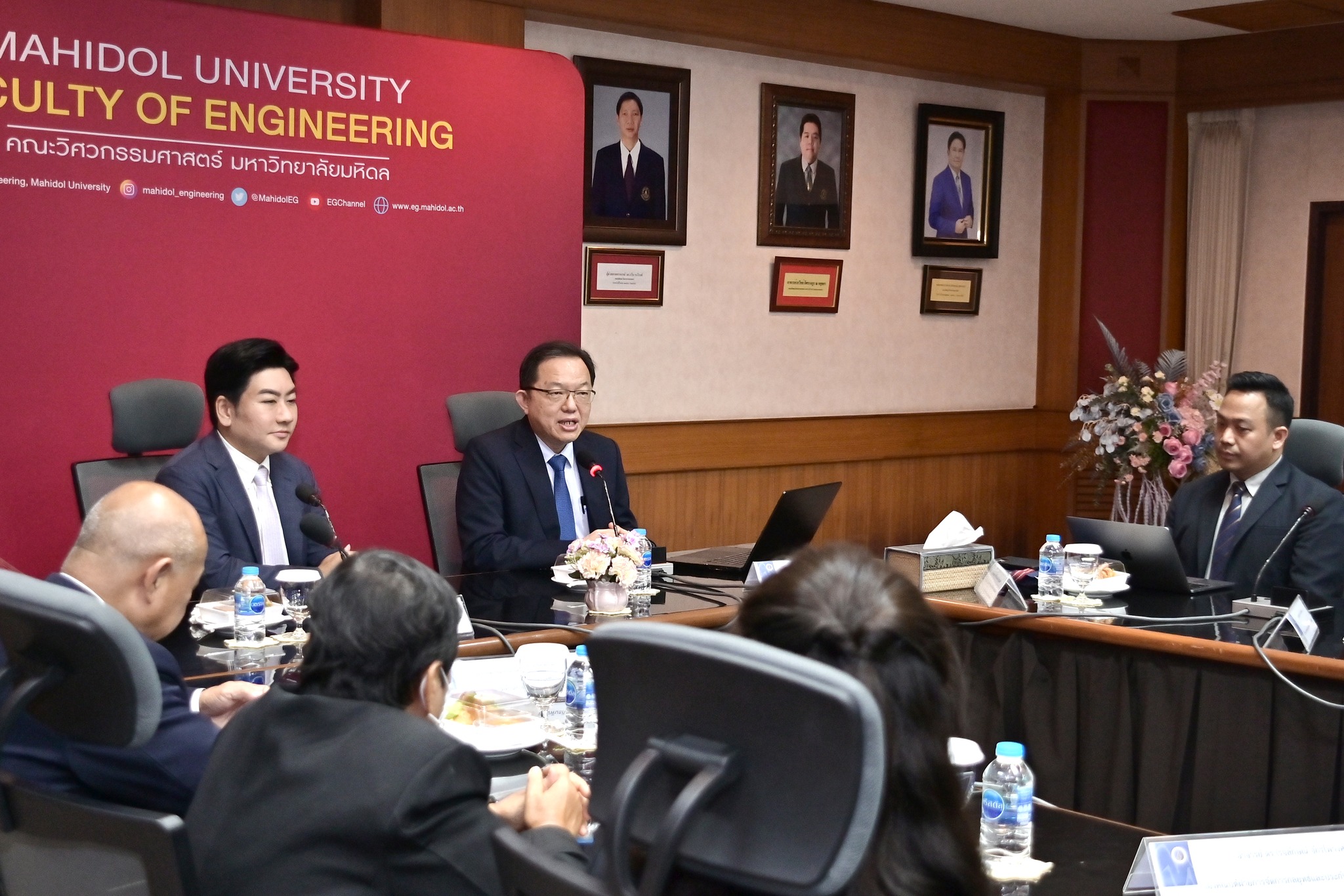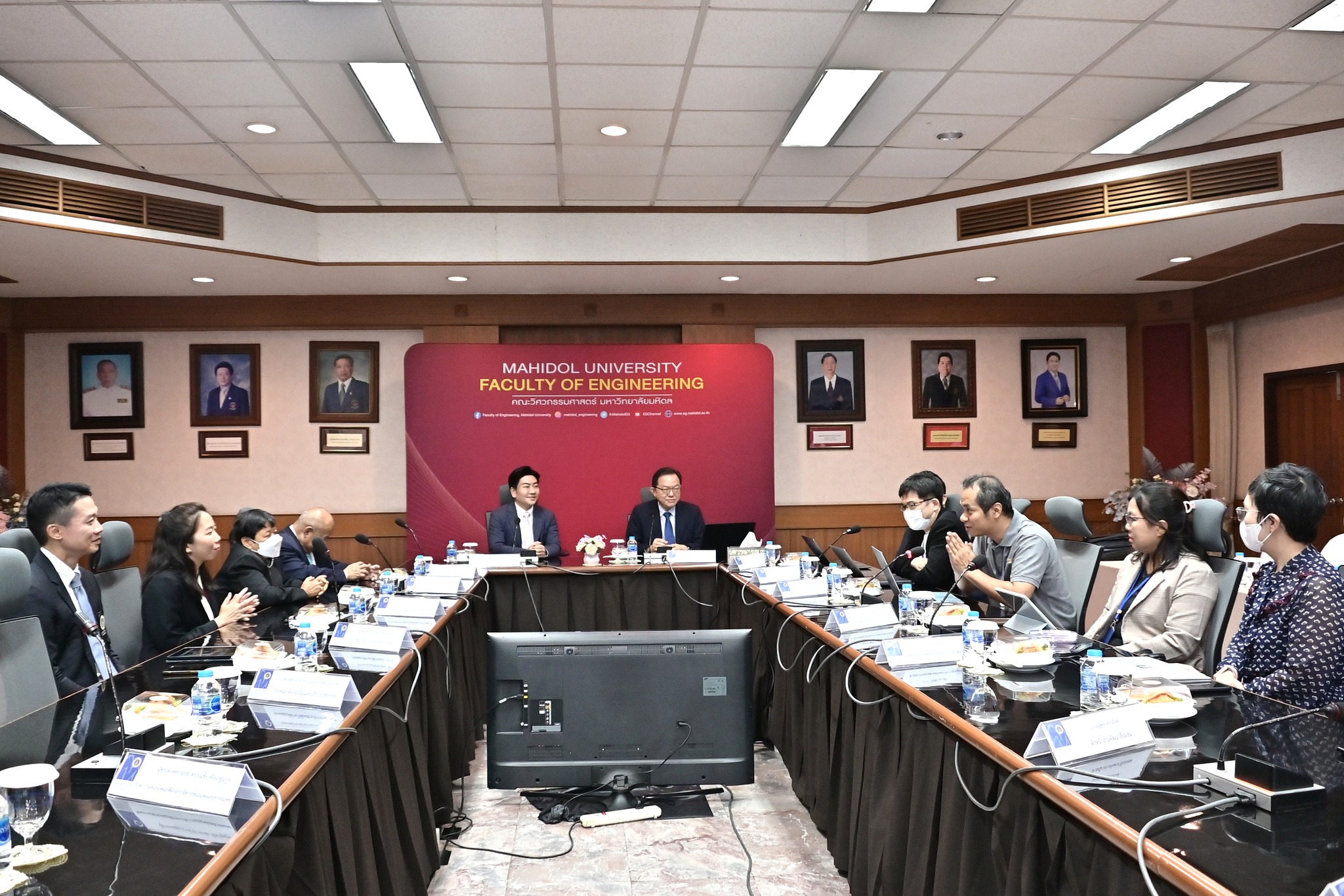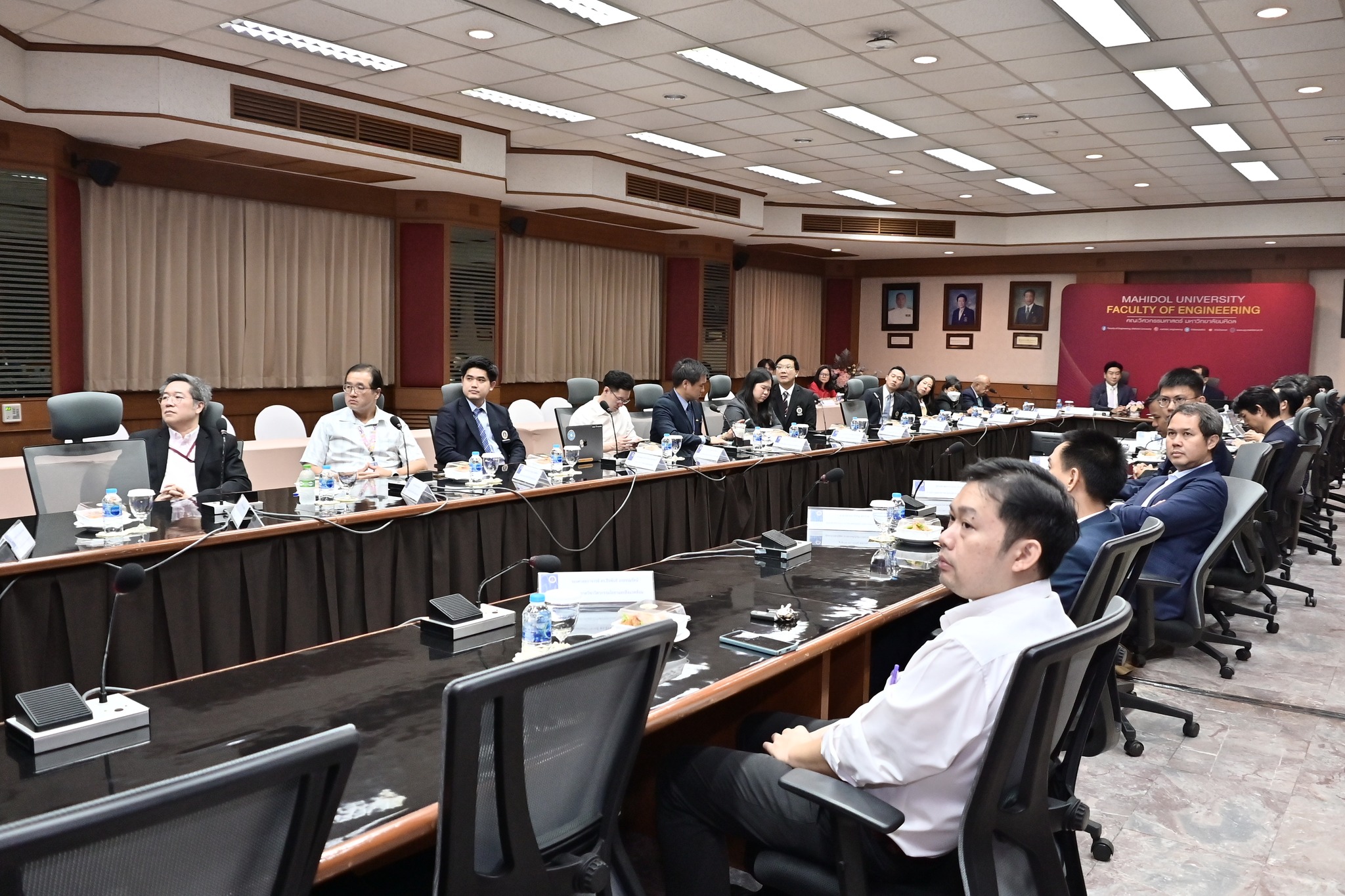 Associate Professor Dr. Thanapat Wanichanon, Dean of the Faculty of Engineering, Mahidol University, with executives and faculty members, welcomed Associate Professor Dr. Cherdchai Nopmaneejumruslers, Vice President for Information Technology and Digital Transformation as well as Assistant Professor Dr. Narit Hnoohom, Assistant to the President for Information Technology and Digital Transformation, with a team from the Information Technology and Digital Transformation Division, Mahidol University.